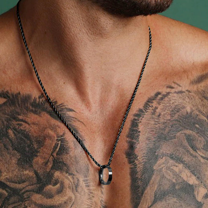Black, three to one rope chain, stainless steel melon seed buckle cross double-layer chain, style B rope and Figaro buckle