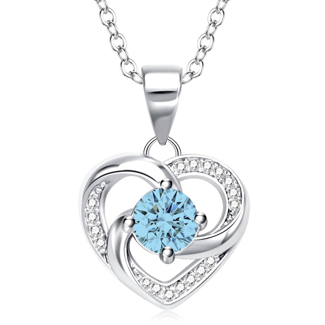Silvery, women's heart-shaped birthstone necklace, S925 silver plated birthstone necklace, suitable for teenagers and girls, birthday jewelry gift;