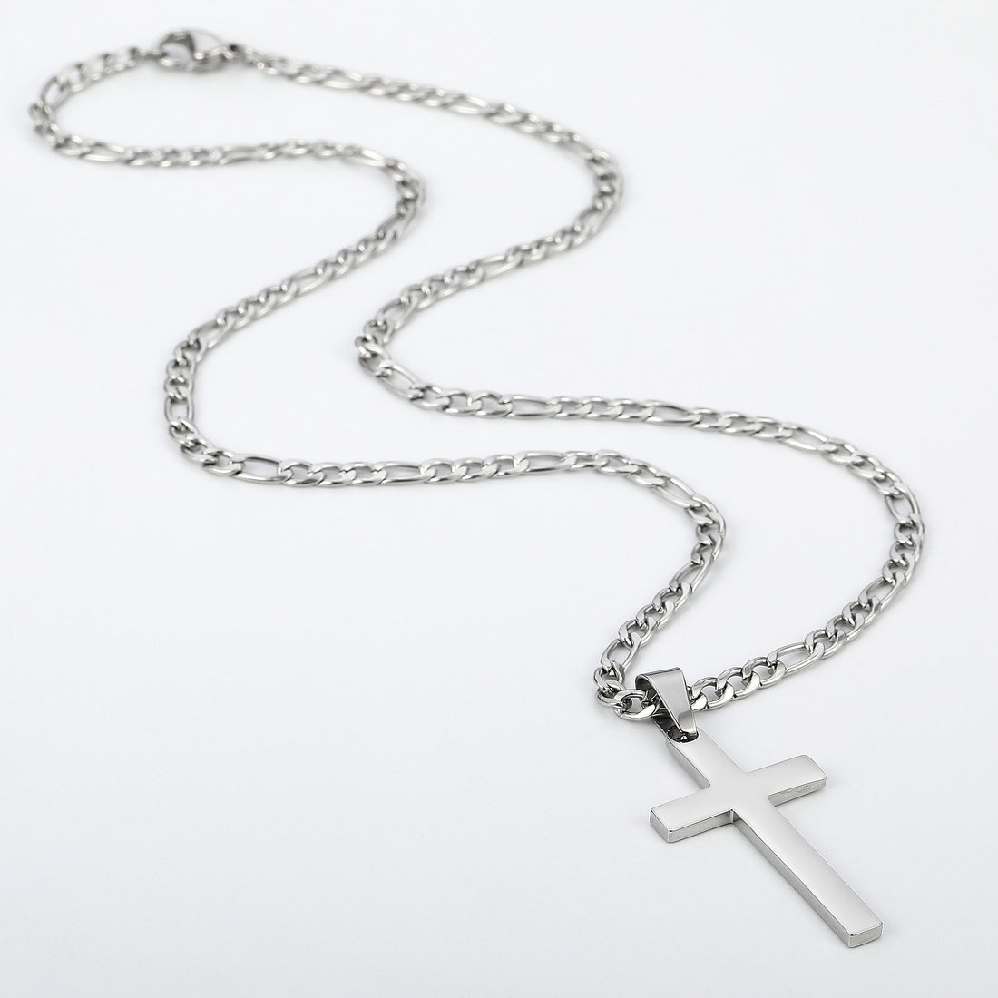 Silvery, stainless steel men's Figaro cross necklace, 2.5mm three to one cross pendant necklace, 16-24 inches