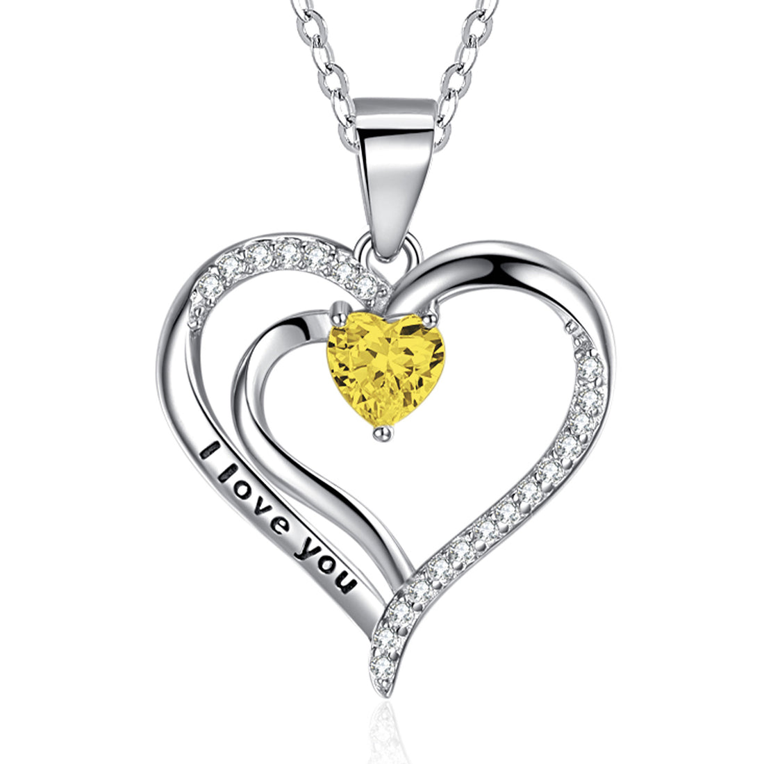 Silver necklace, heart-shaped birthstone necklace, 925 silver plated zircon pendant necklace, women's jewelry gift, Valentine's Day gift for women's wives and girls