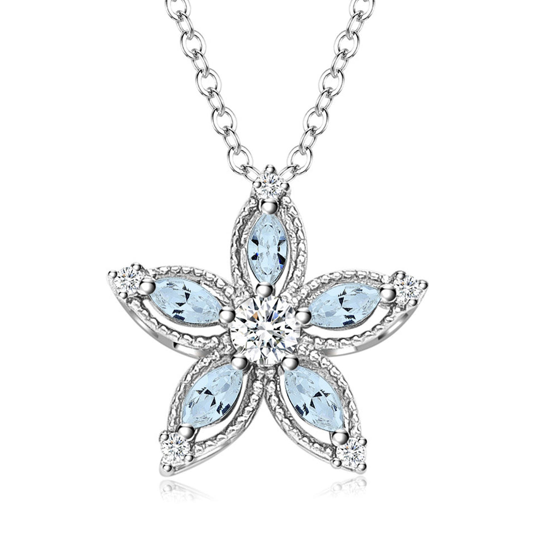 Silvery, flower birthstone necklace, S925 silver plated birthstone necklace, suitable for teenage girls, birthday jewelry gift;