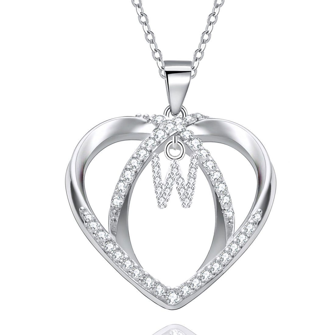 Silvery, double-sided heart-shaped first letter necklace, S925 silver plated necklace, zircon pendant necklace, suitable jewelry gift for girls;