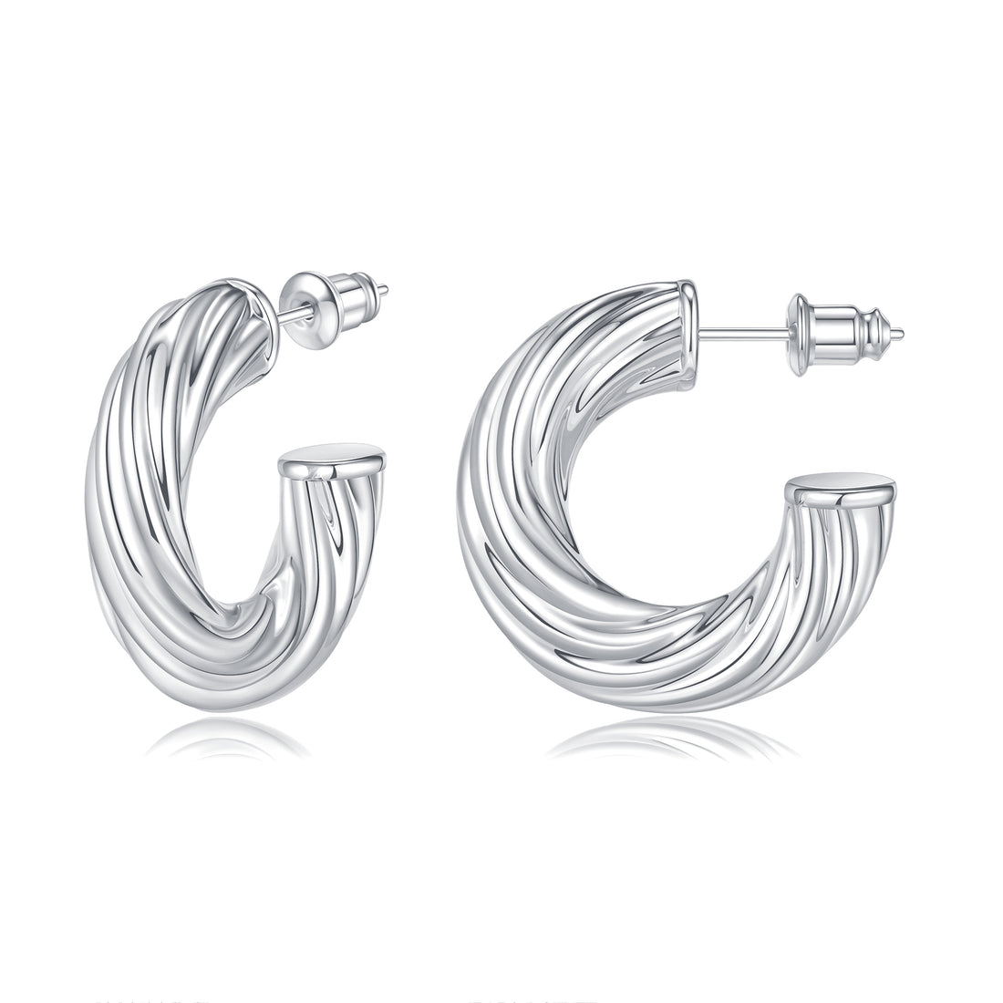 Silvery/Golden, Smooth Short C-shaped Earrings