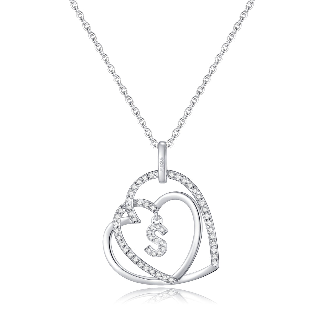 Romavan brand, double-heart necklace, capital letter pendant necklace, letters A-Z