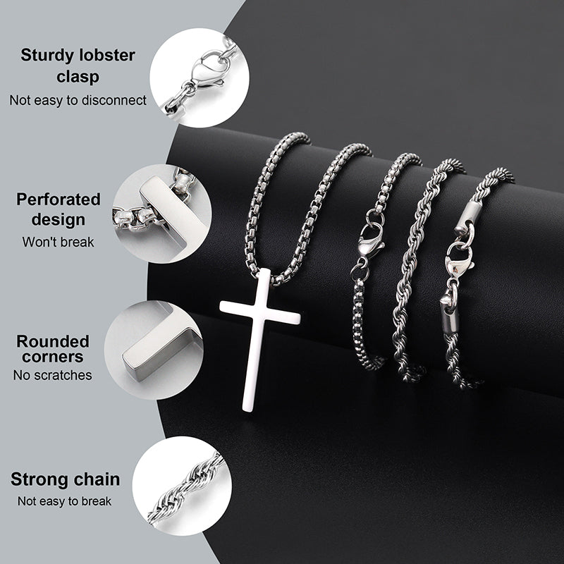 WOMEN MENS JEWELRY GIFTS: Stainless steel is a high-end materials that can be used for a variety of purposes, giving anyone who wears it a sparkle in a crowd and an eye-catching lustre. You can't go wrong with this cross chain jewelry. This classic cross chain necklace is the perfect gifts for men, husband, dad, brother, wife.... Give them a new fashion style different from other jewelry.