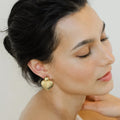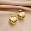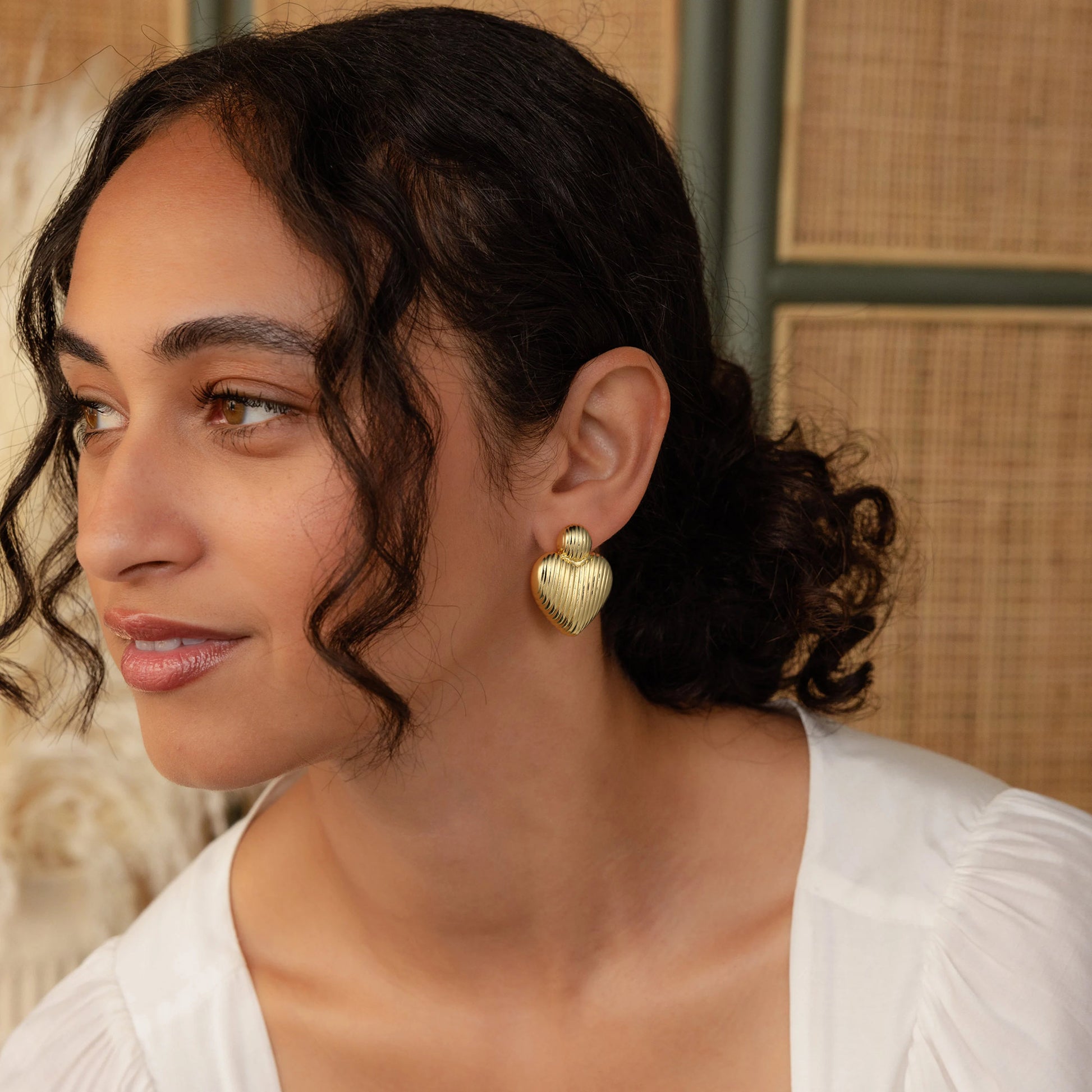 Gold-colored, a pair of heart-shaped earrings, one large and one small
