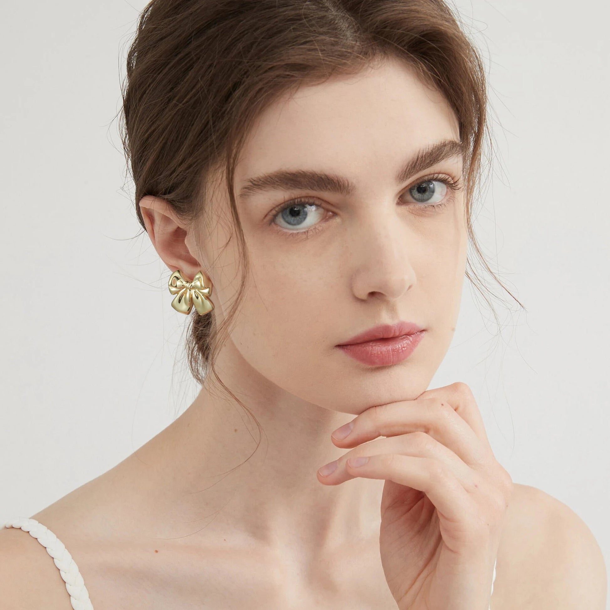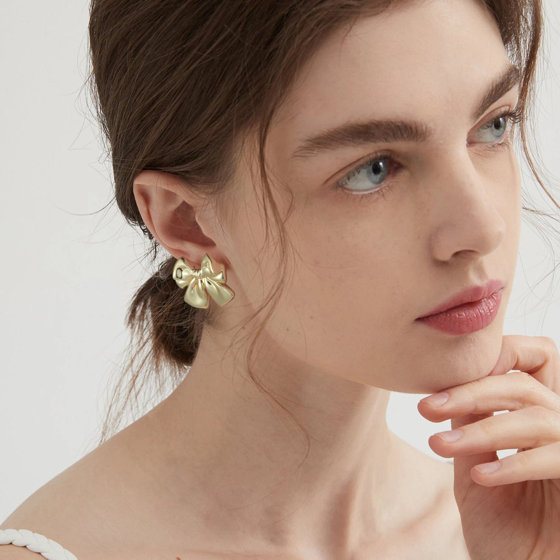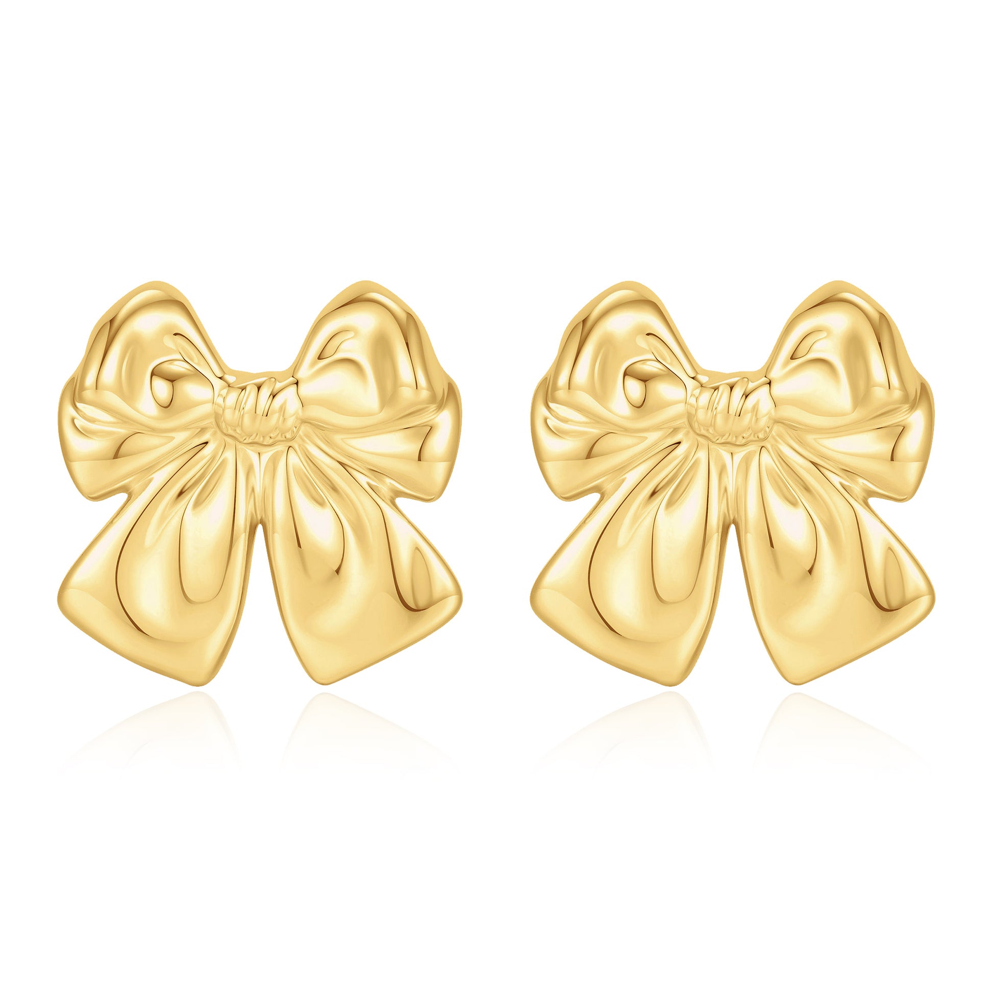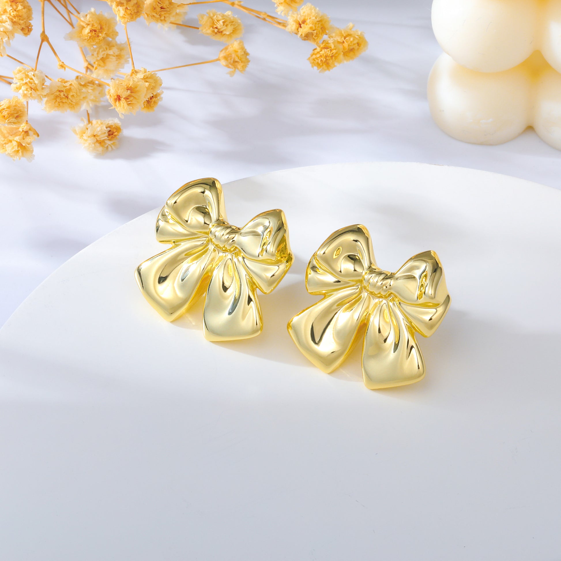 golden Bow Earrings: This women's golden bow earring is not only fashionable and modern, but also classic and elegant in style. Thick golden earrings jewelry is suitable for daily wear and matching, and captures light beautifully.