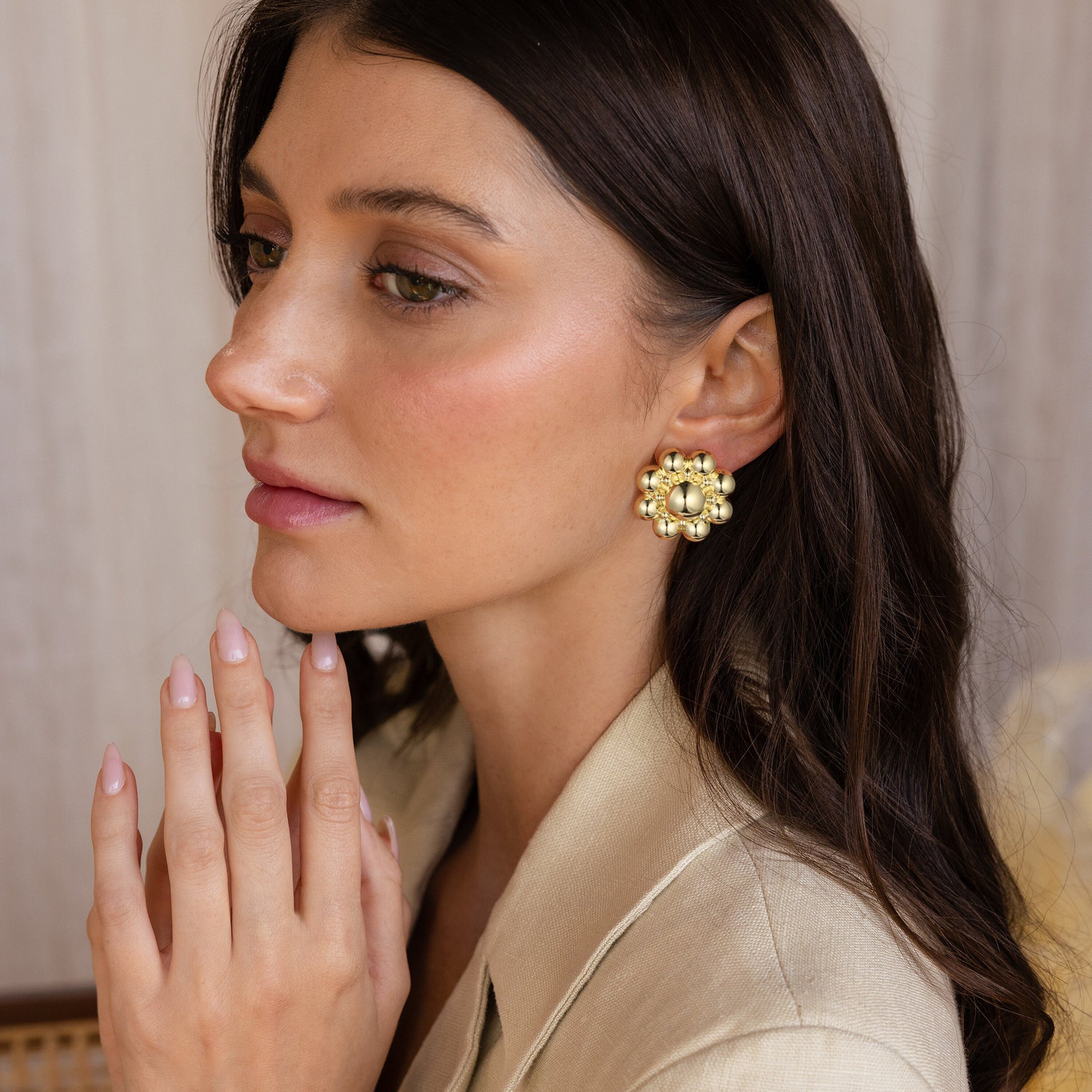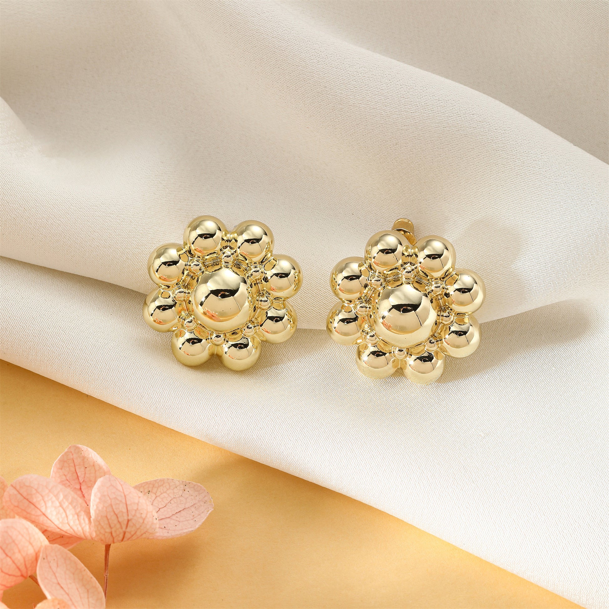 Golden, circular petal earrings