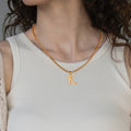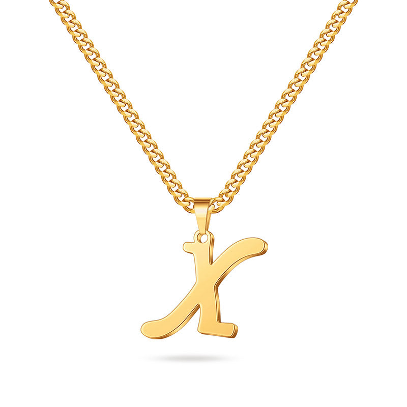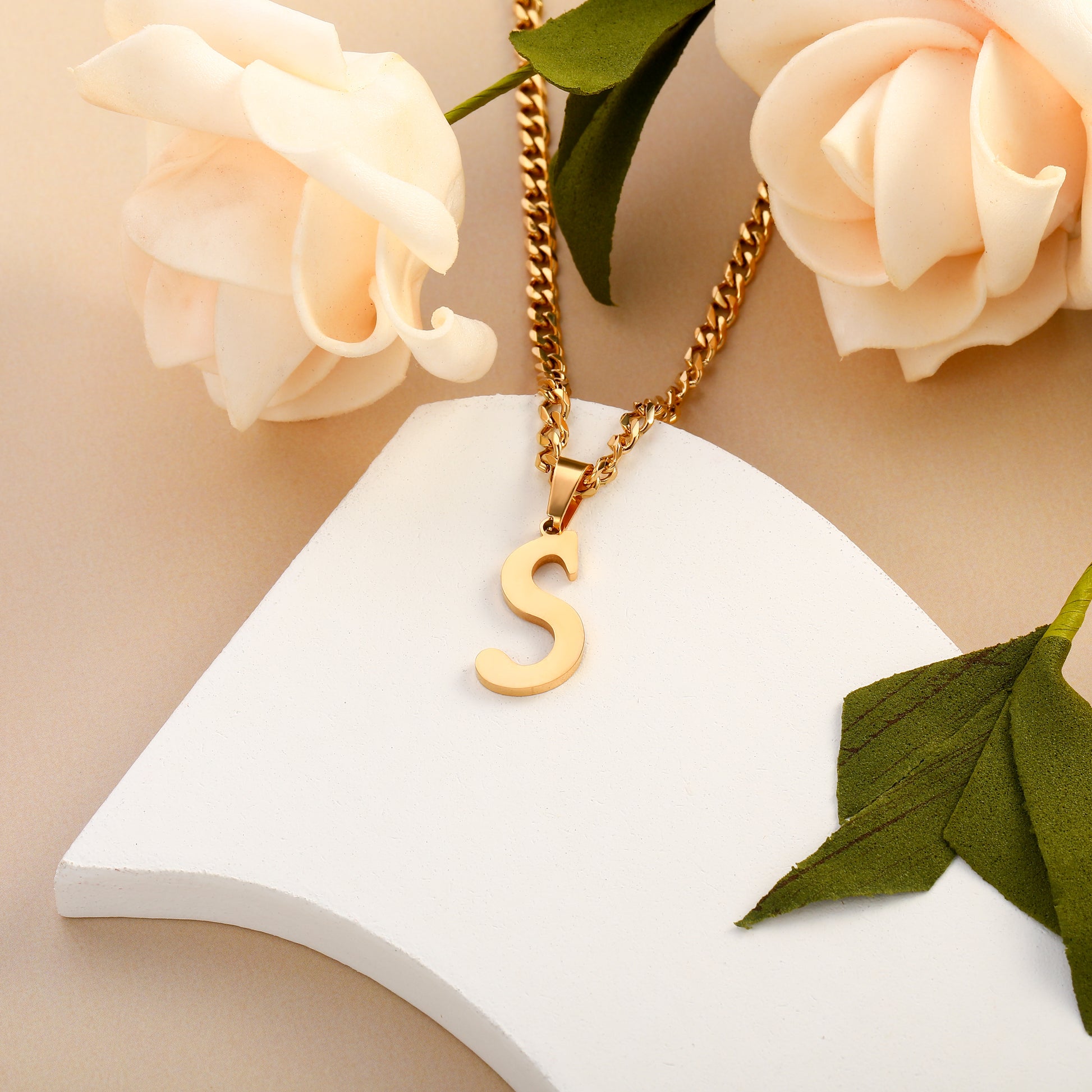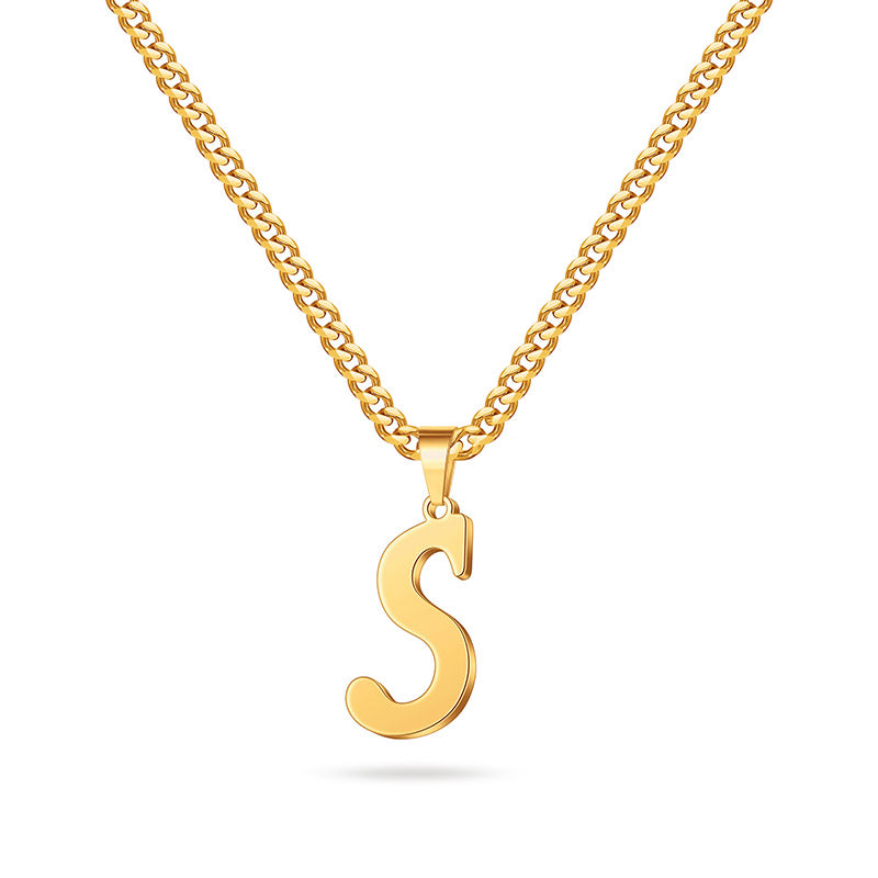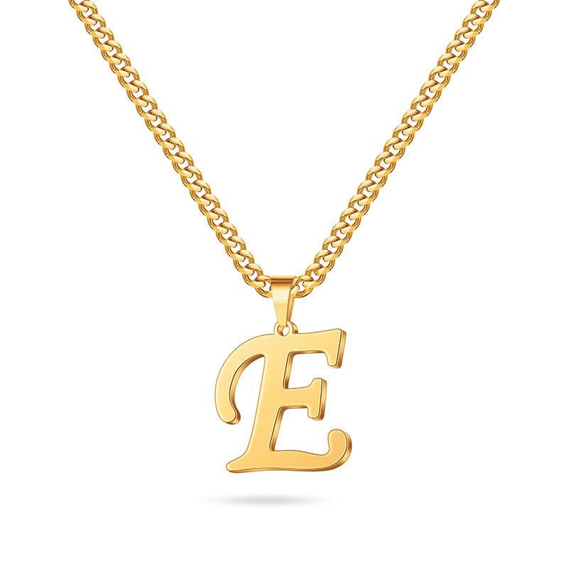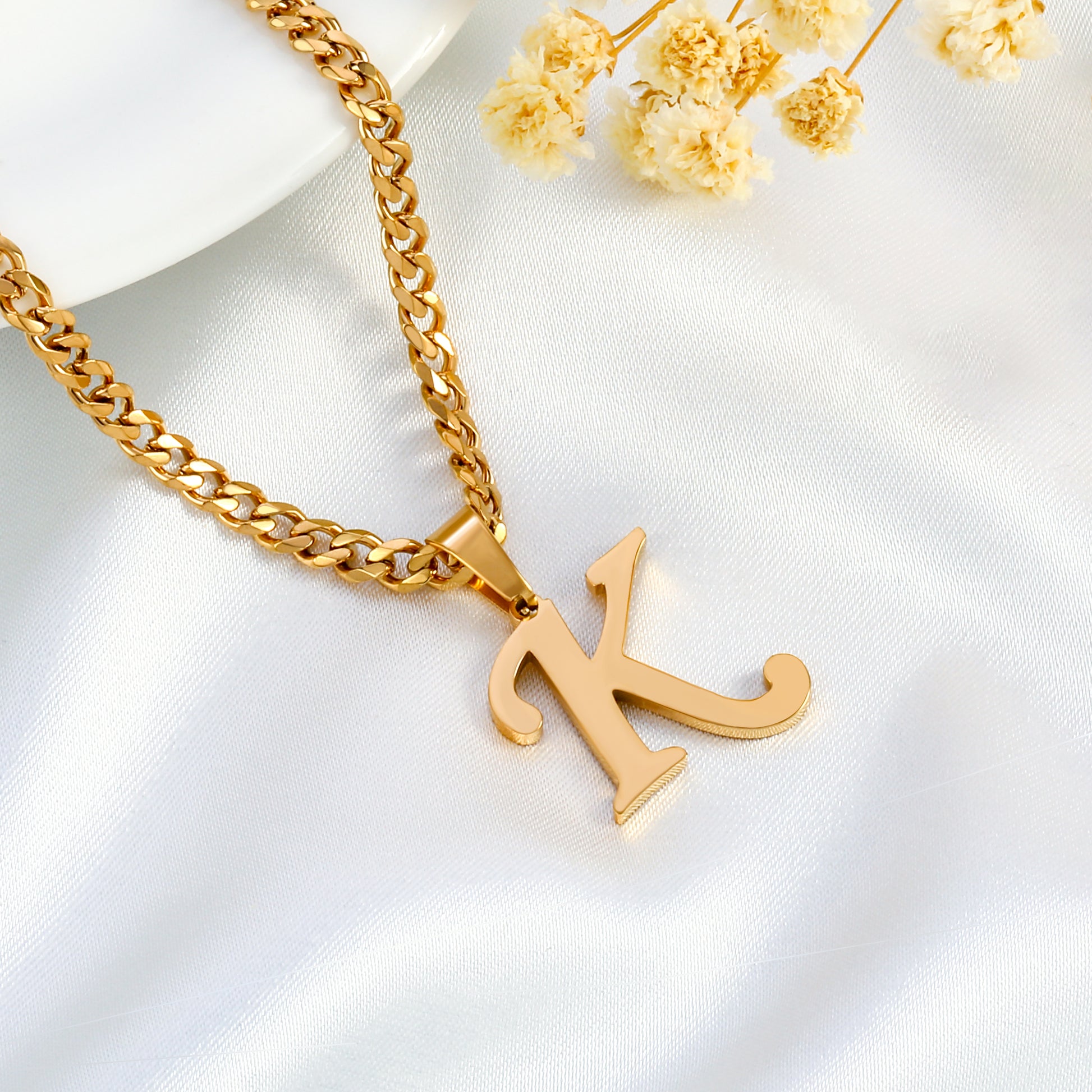 Golden, Cuban chain single-layer chain necklace, irregular capital letter tag, letter necklace