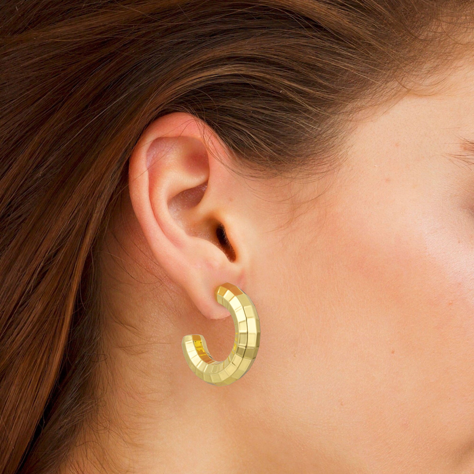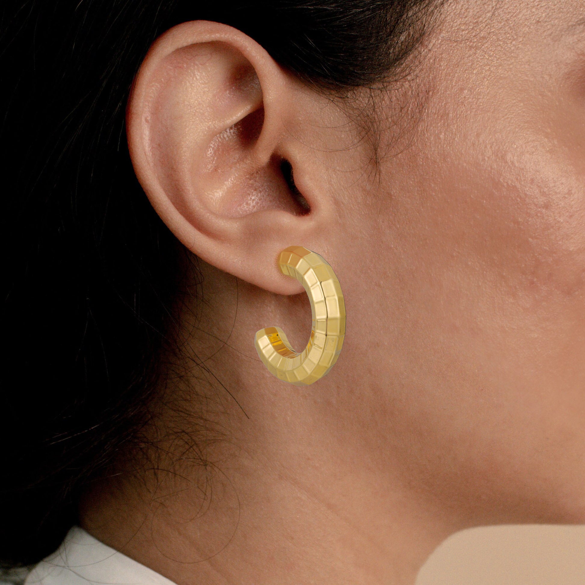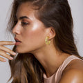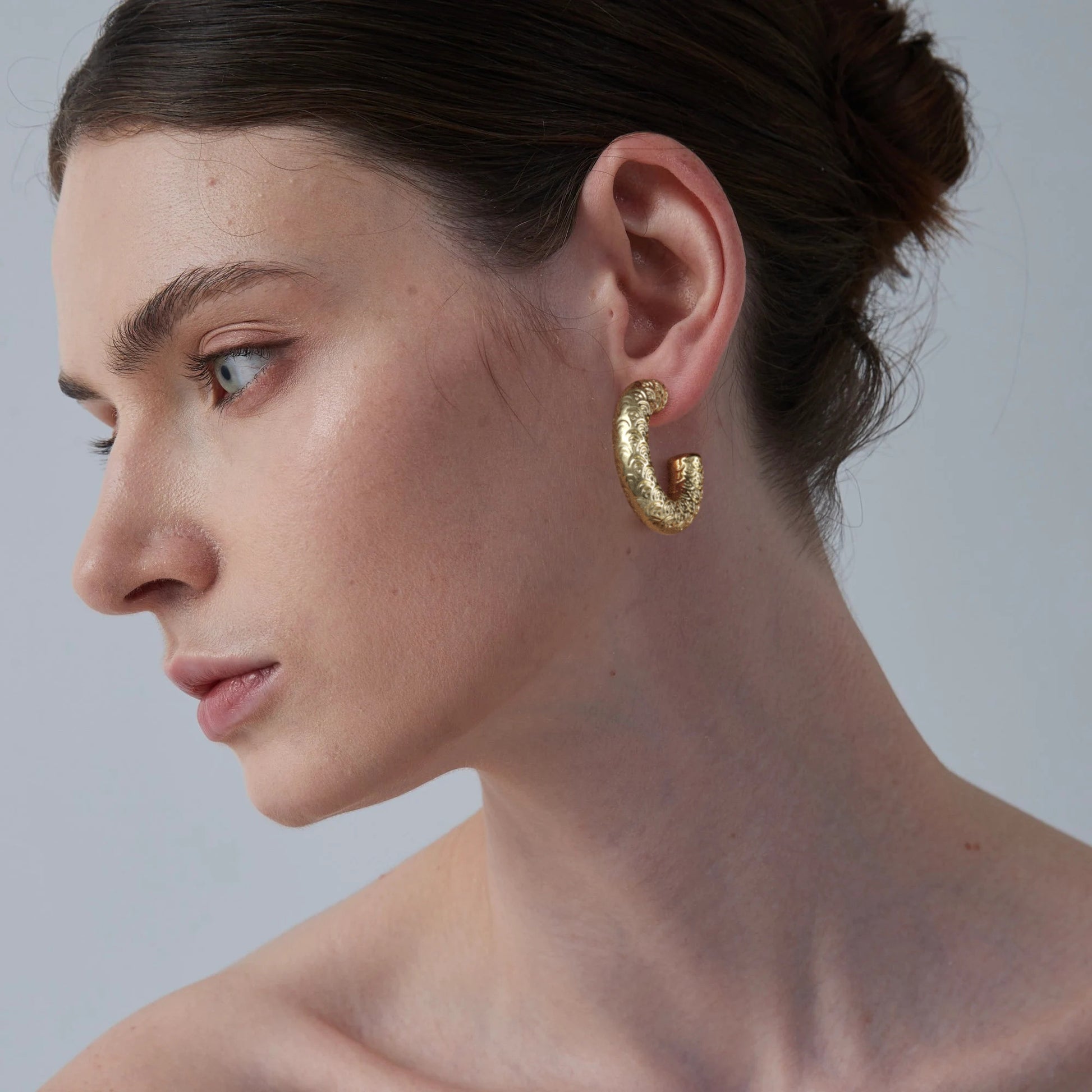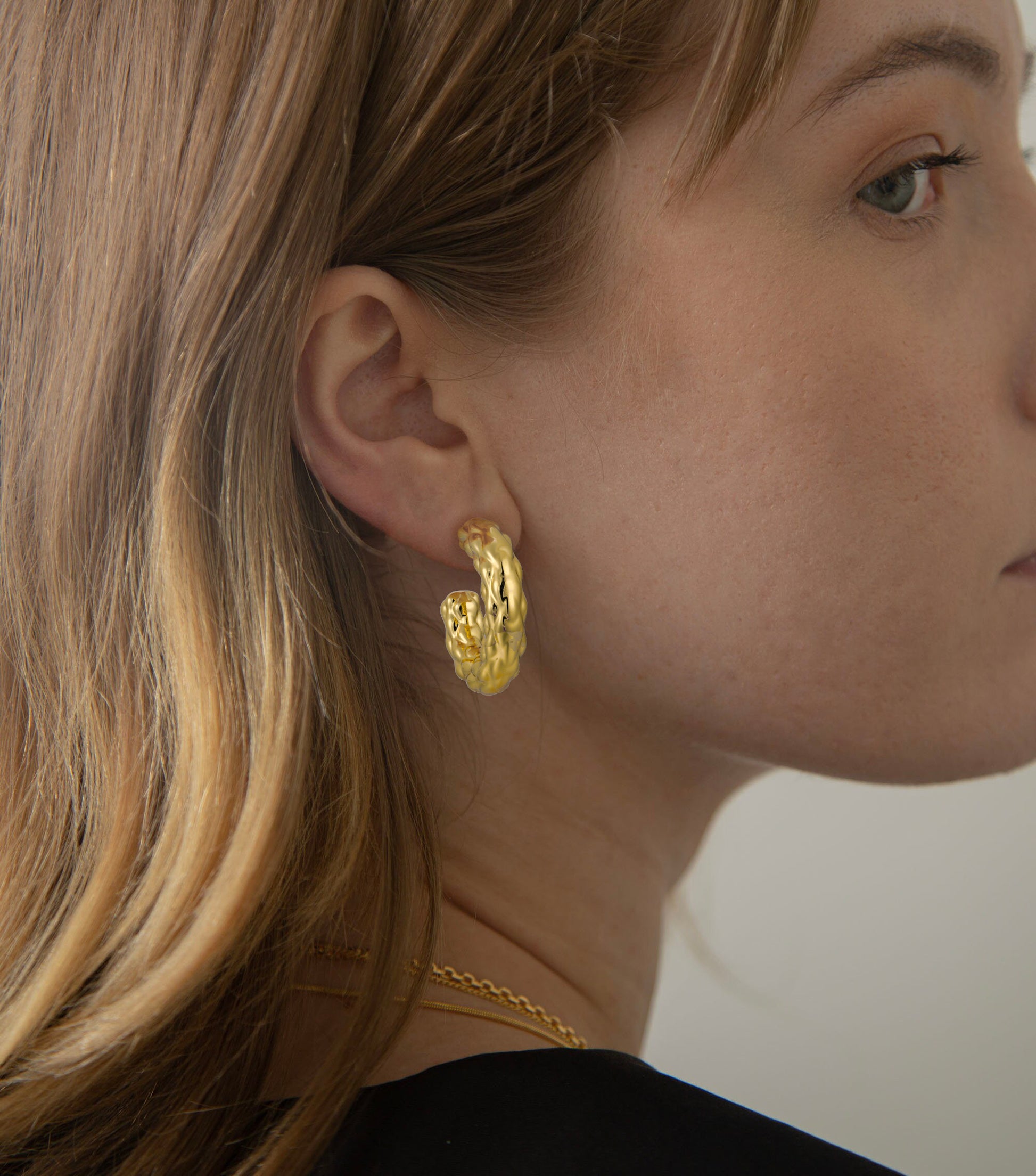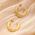 Golden earrings with auspicious cloud and half-moon pattern in curved shape