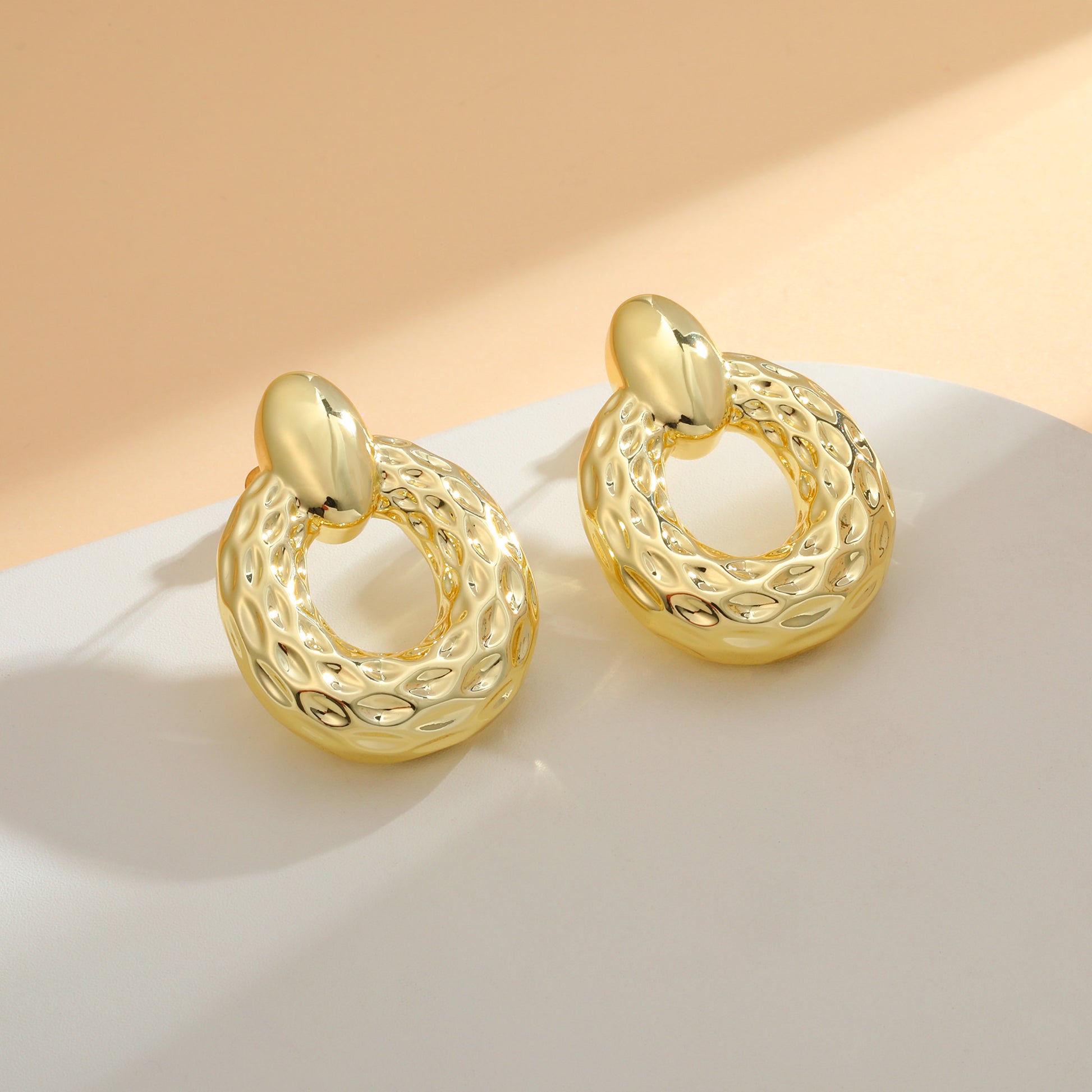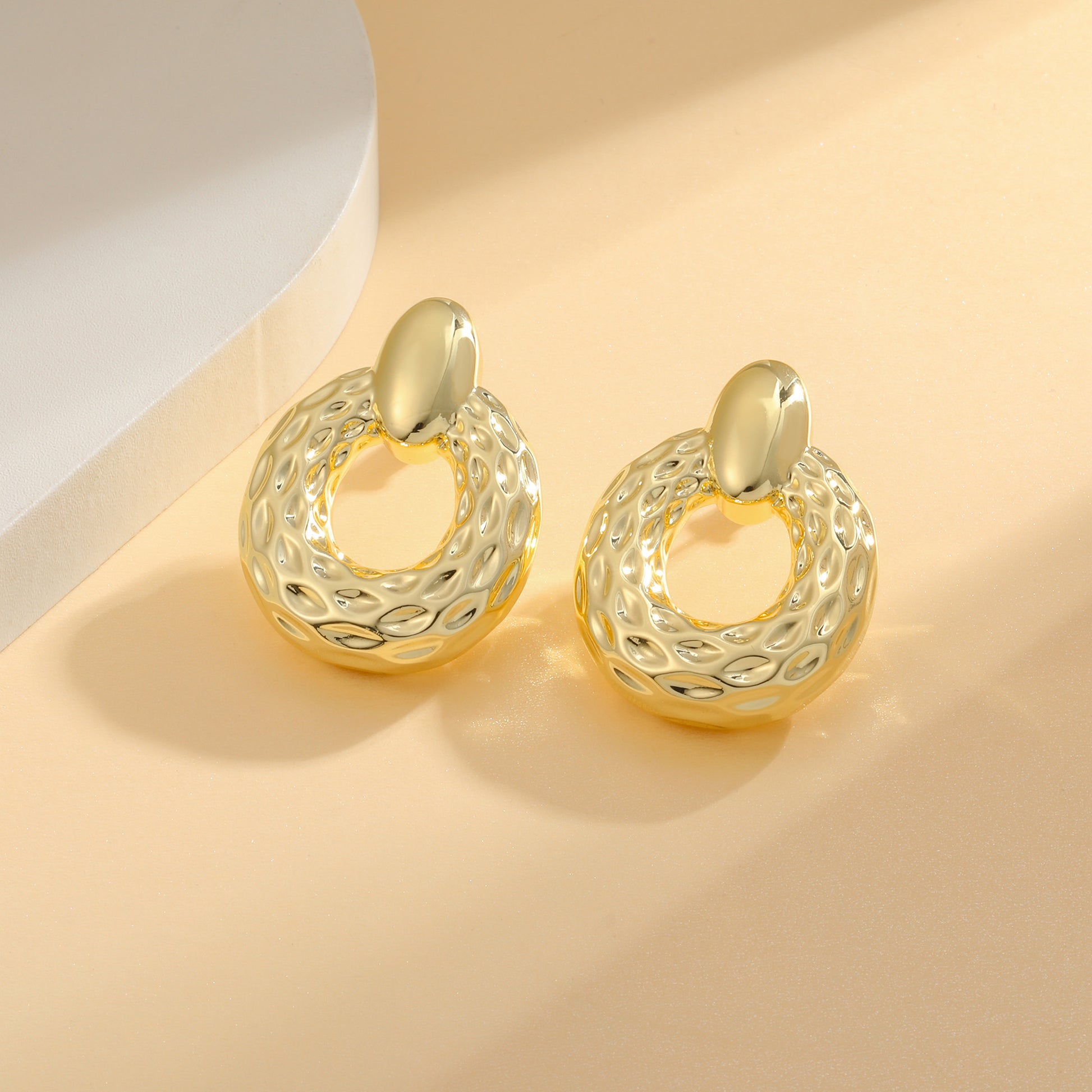 Heavy hanging earrings: this thick golden earring combines the flashing luster with the thick appearance, giving people a unique aesthetic feeling. The three-dimensional hollow pendant design not only maintains a heavy feeling, but also gives people a light wearing experience.