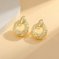 Golden, millet-grain solid set hollow square ring, round ring earrings