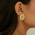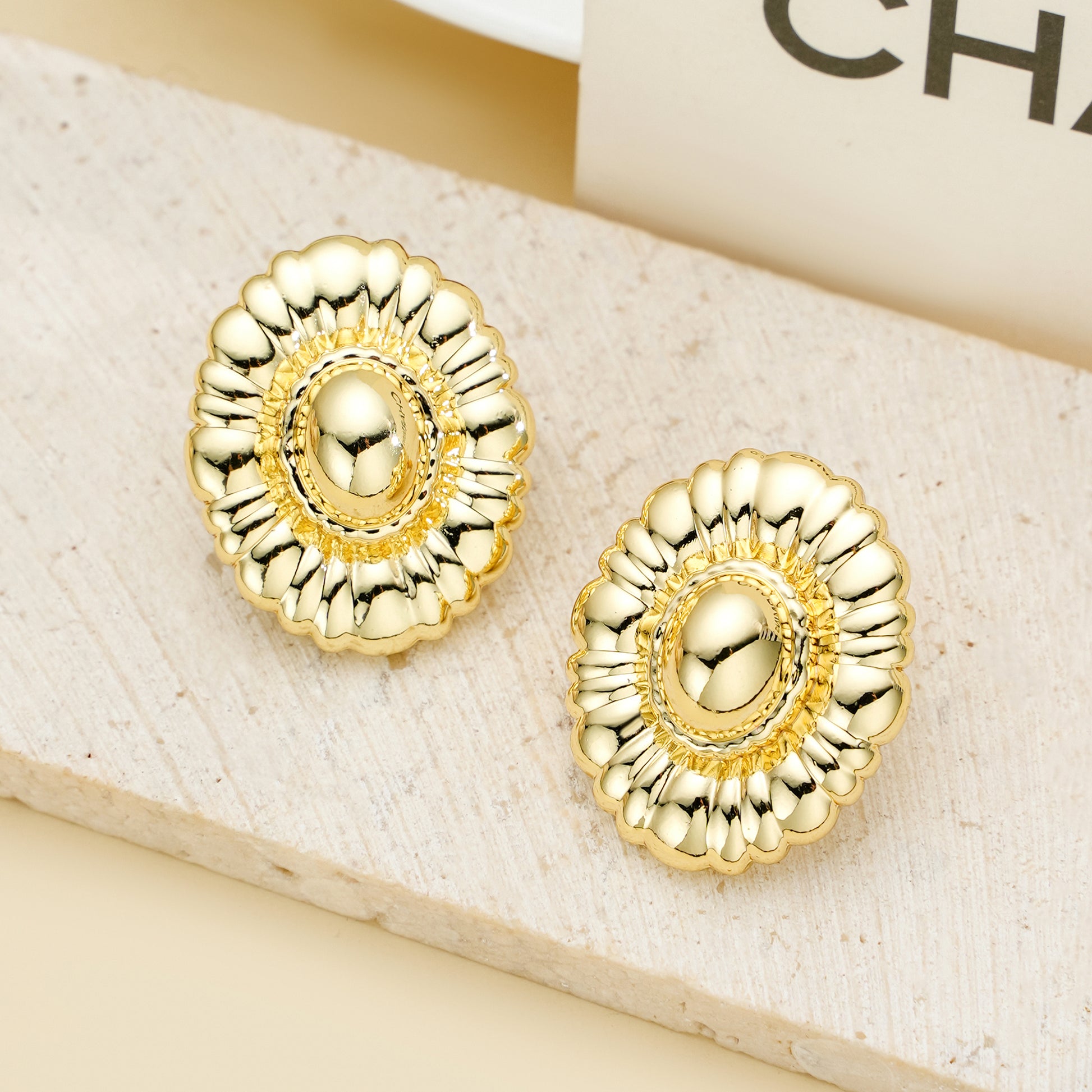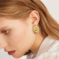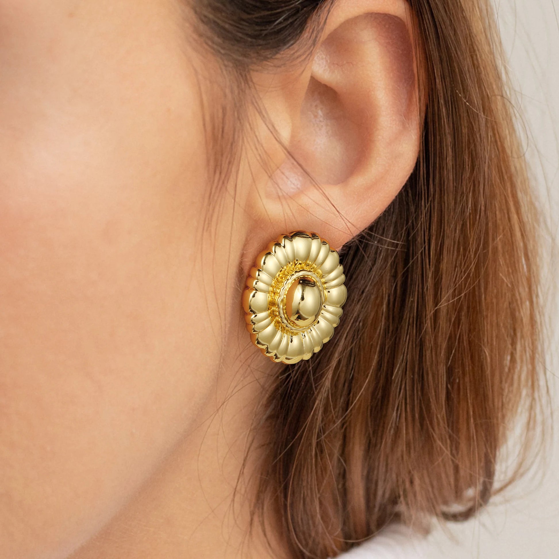 Golden, round earrings with delicate, fragmented edges