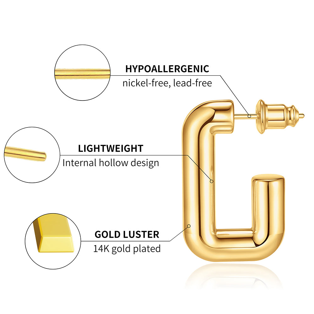 Comfortable material: this lady's heavy golden hoop earrings are made of copper and plated with golden, which will not damage your ears. Ring earrings suit is suitable for sensitive ears, and will not fall off and lose color. High-quality stunning polishing, no scratches, no nickel, no lead and low allergenicity.
