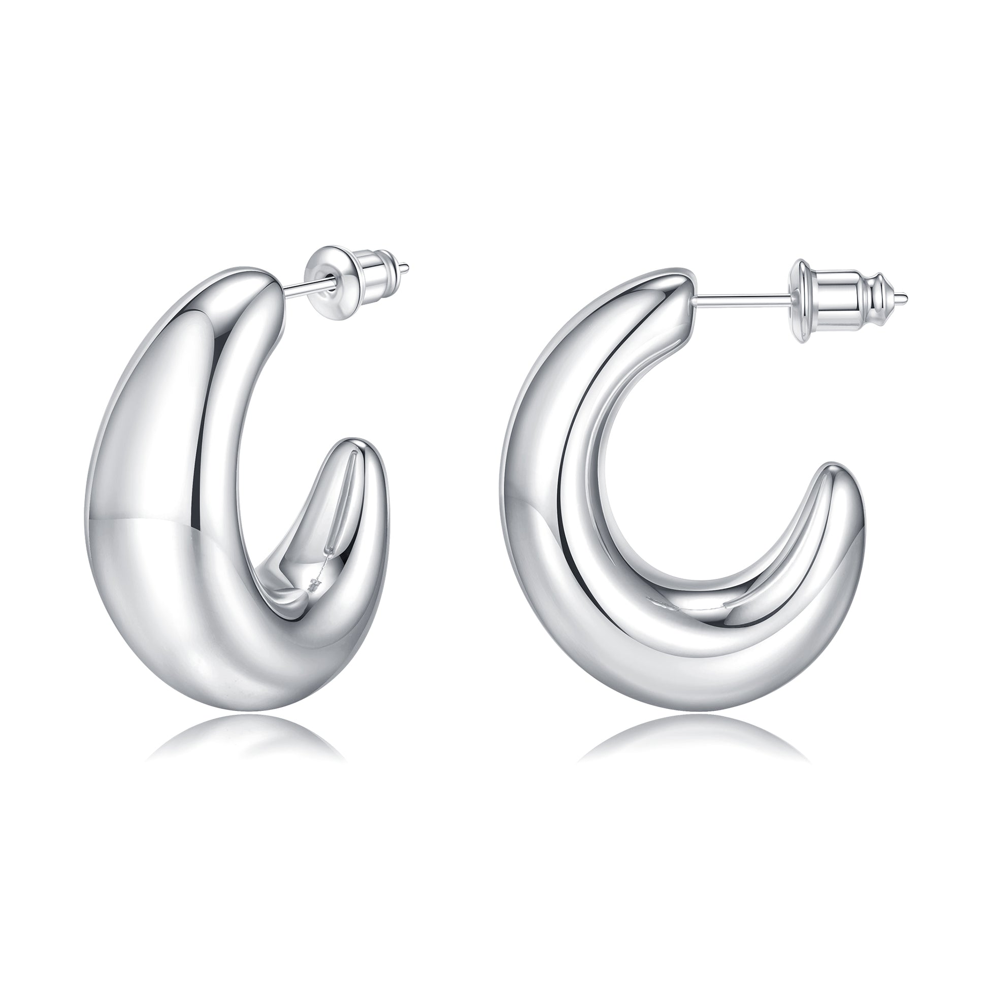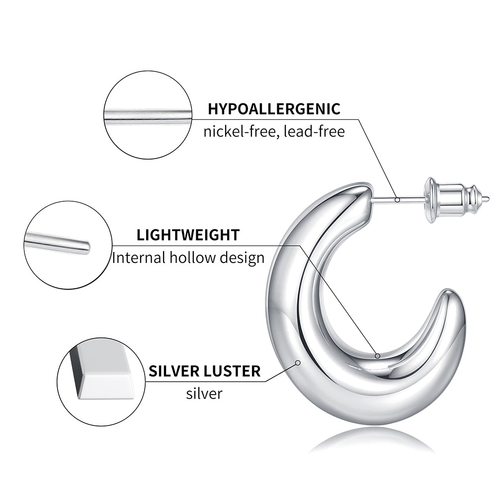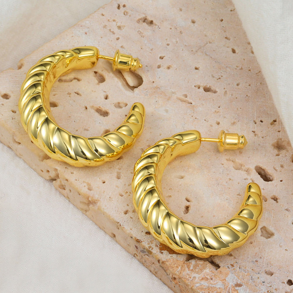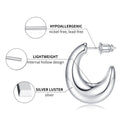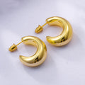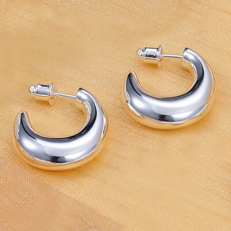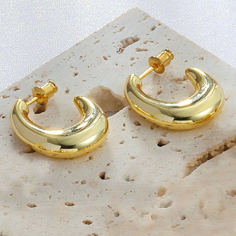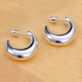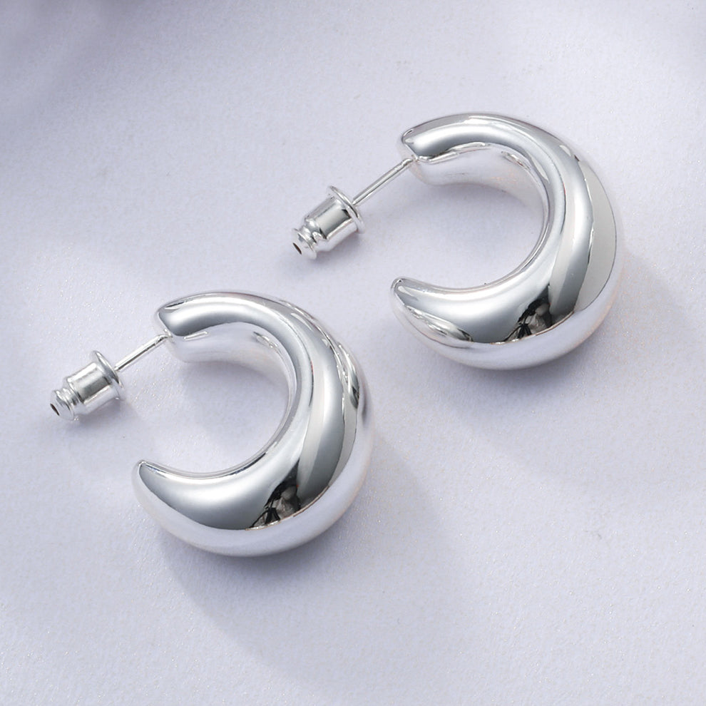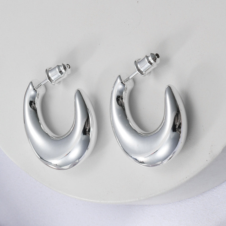 Golden/Silvery-colored, C-shaped earrings with two pointed tips and a wide middle