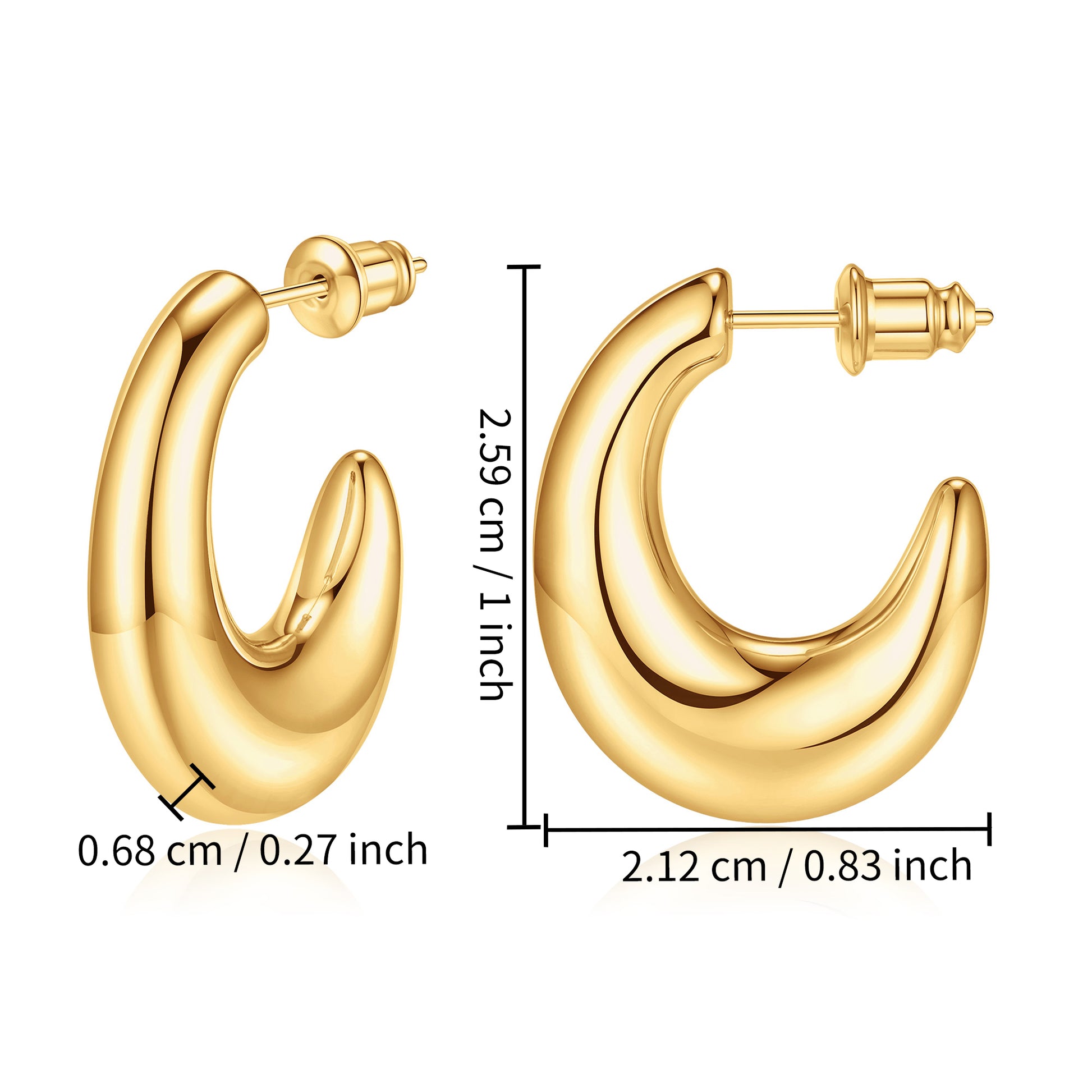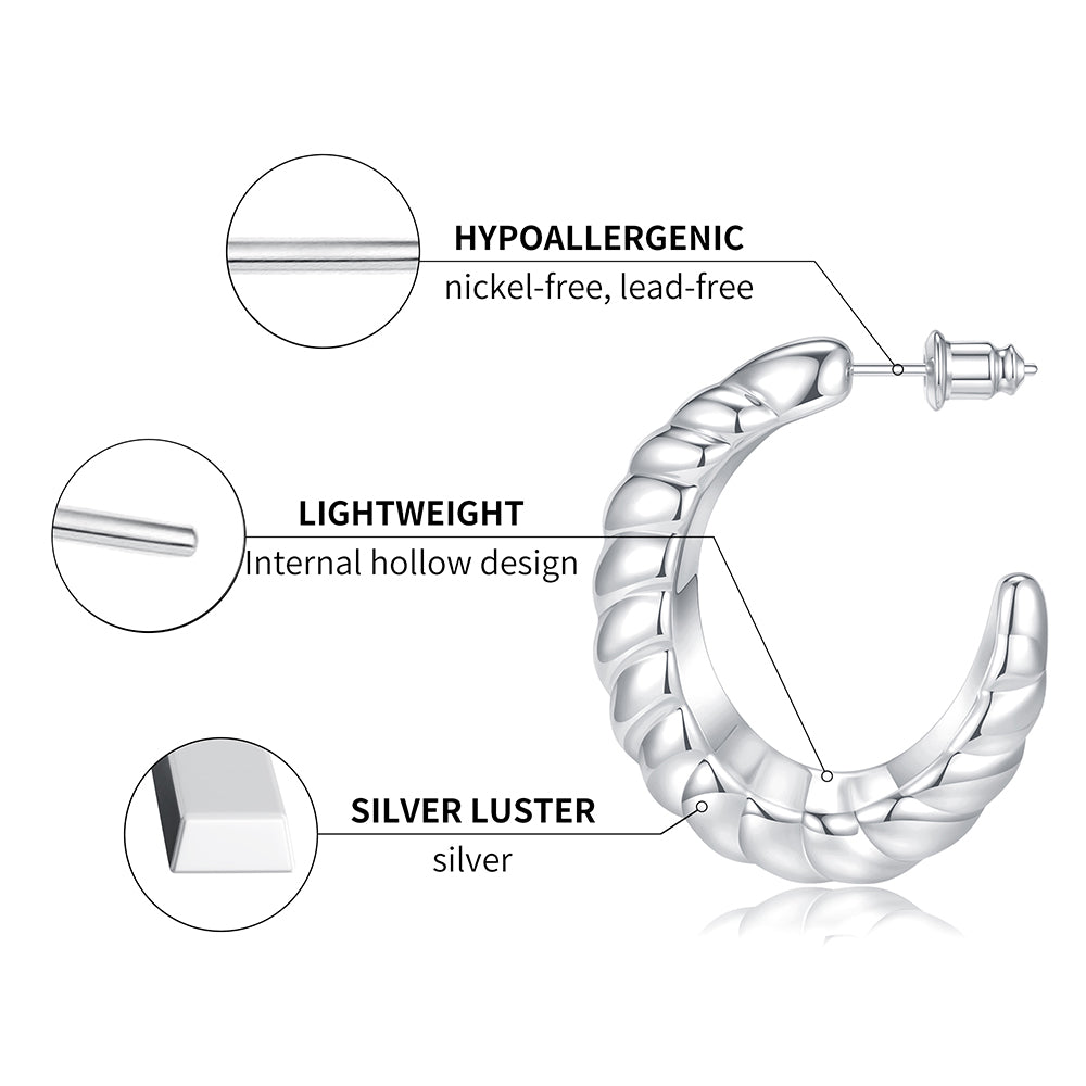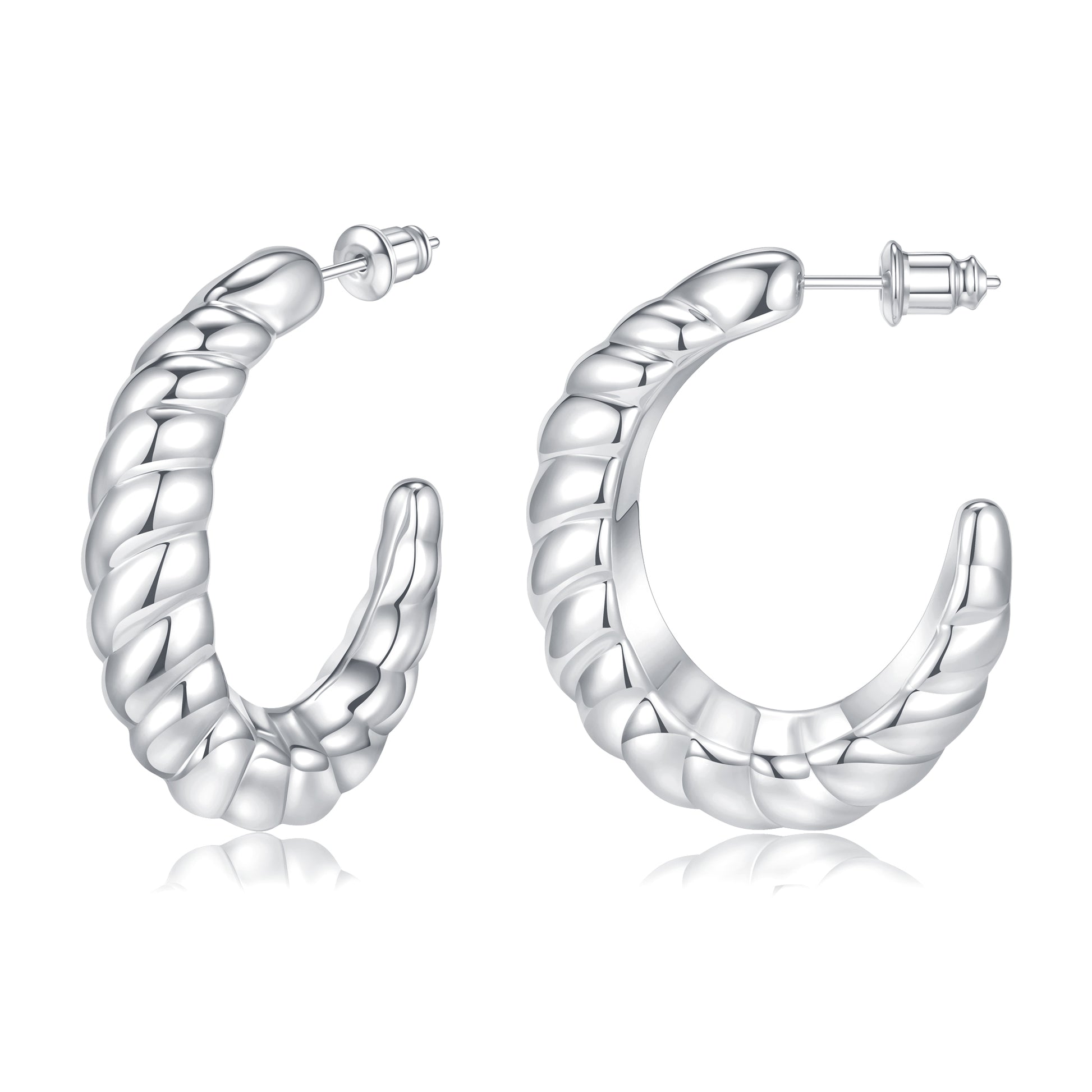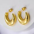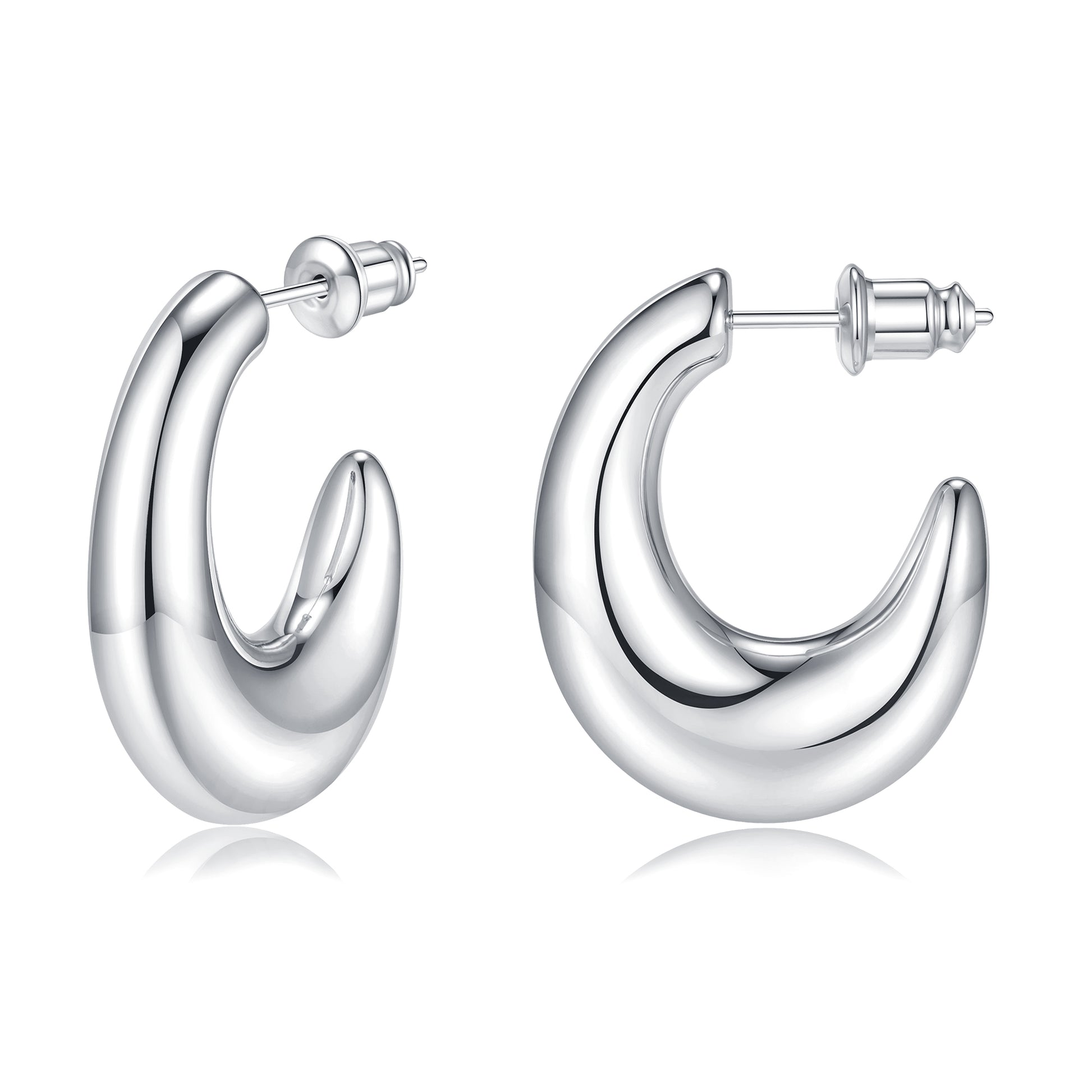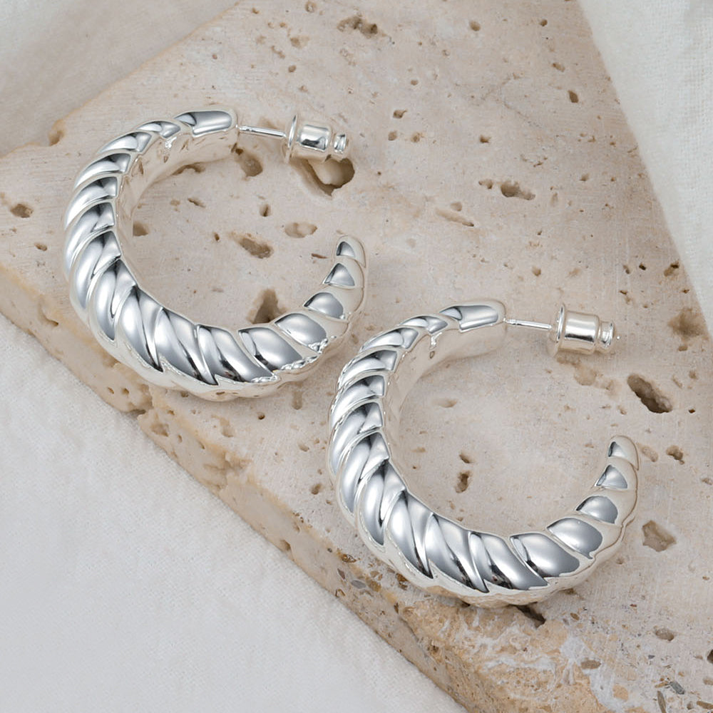 Golden/Silvery-colored, C-shaped earrings with two pointed tips and a wide middle
