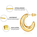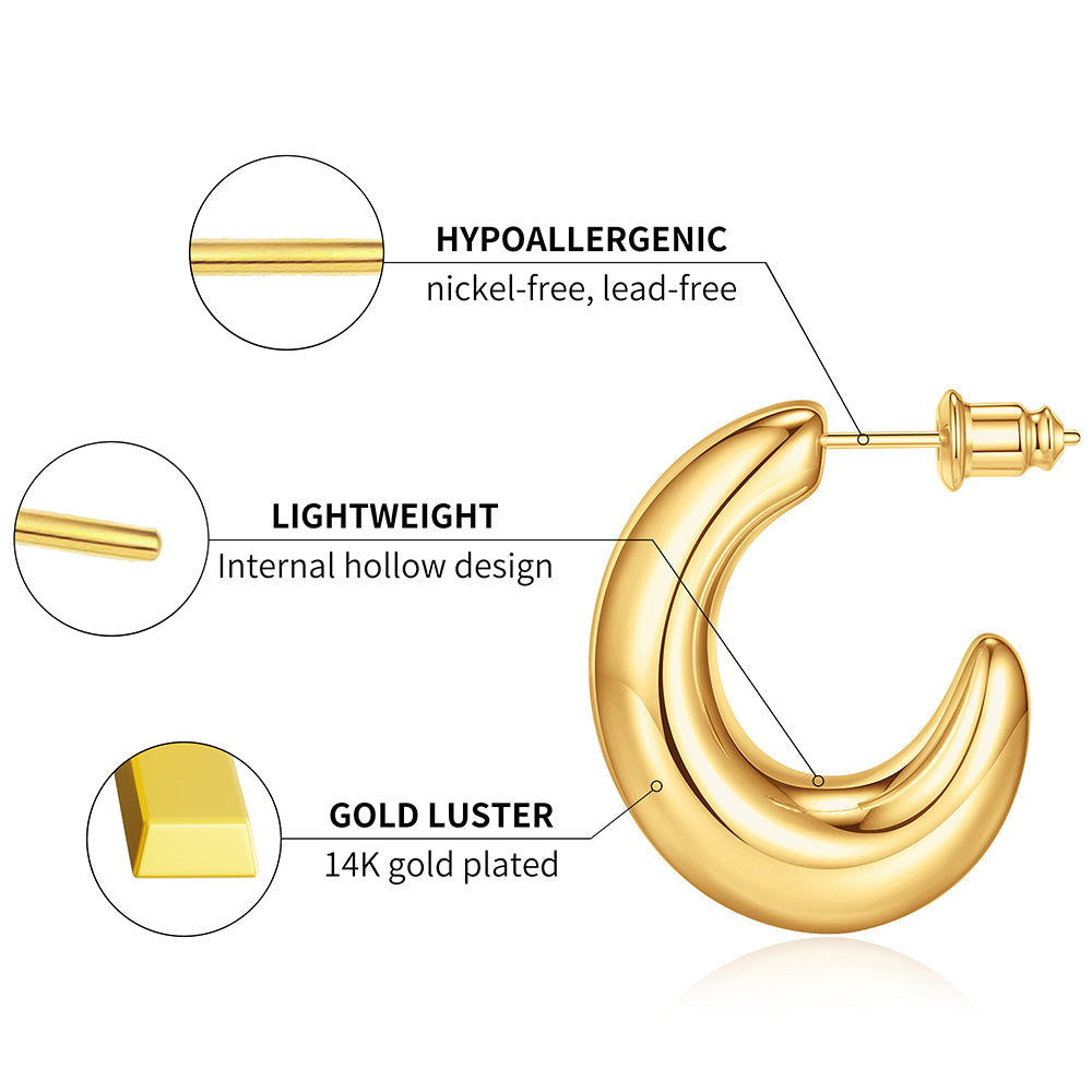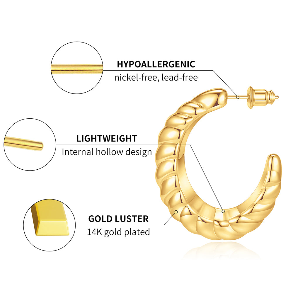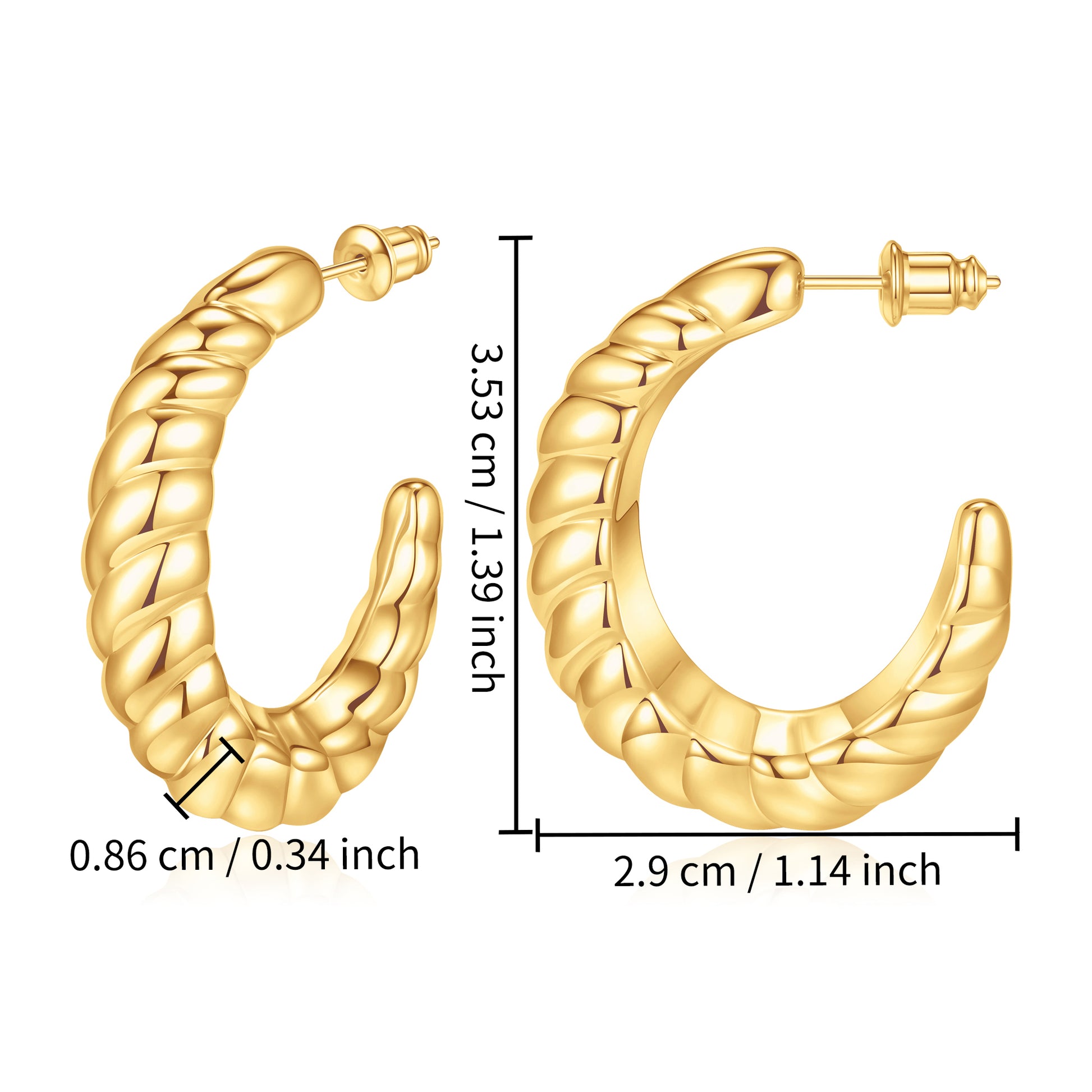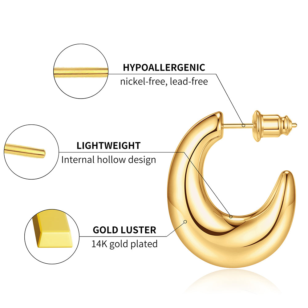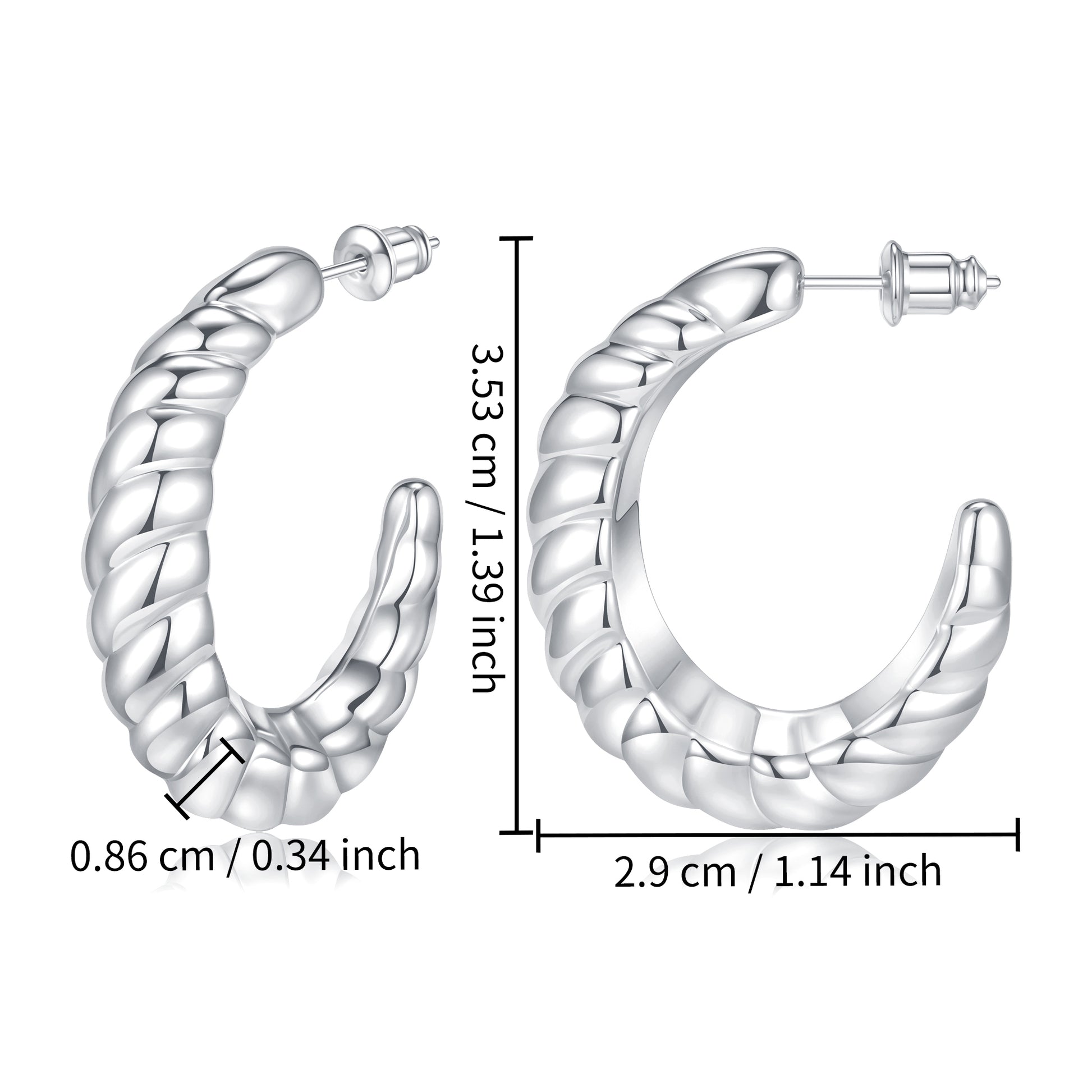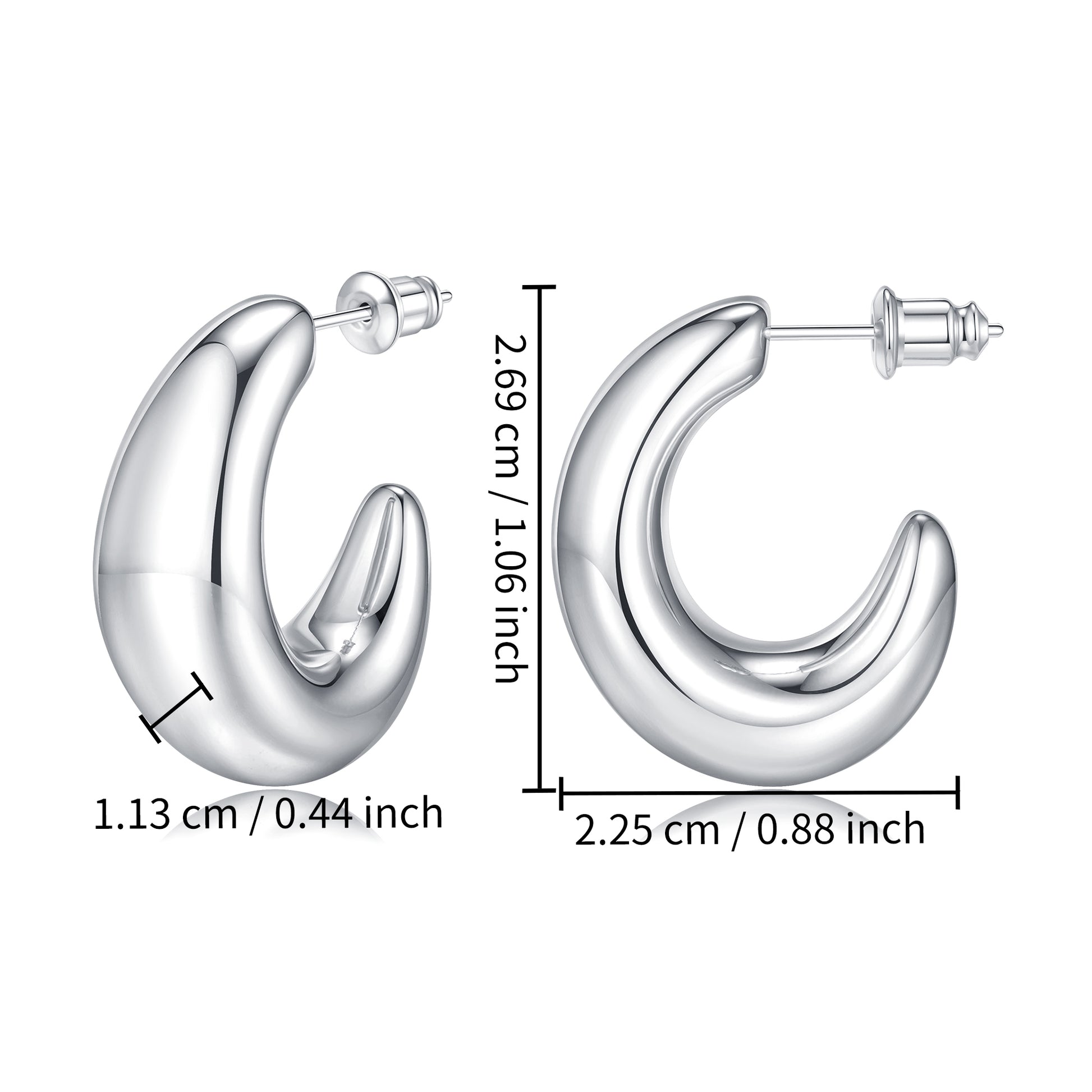 Golden/Silvery-colored, C-shaped earrings with two pointed tips and a wide middle