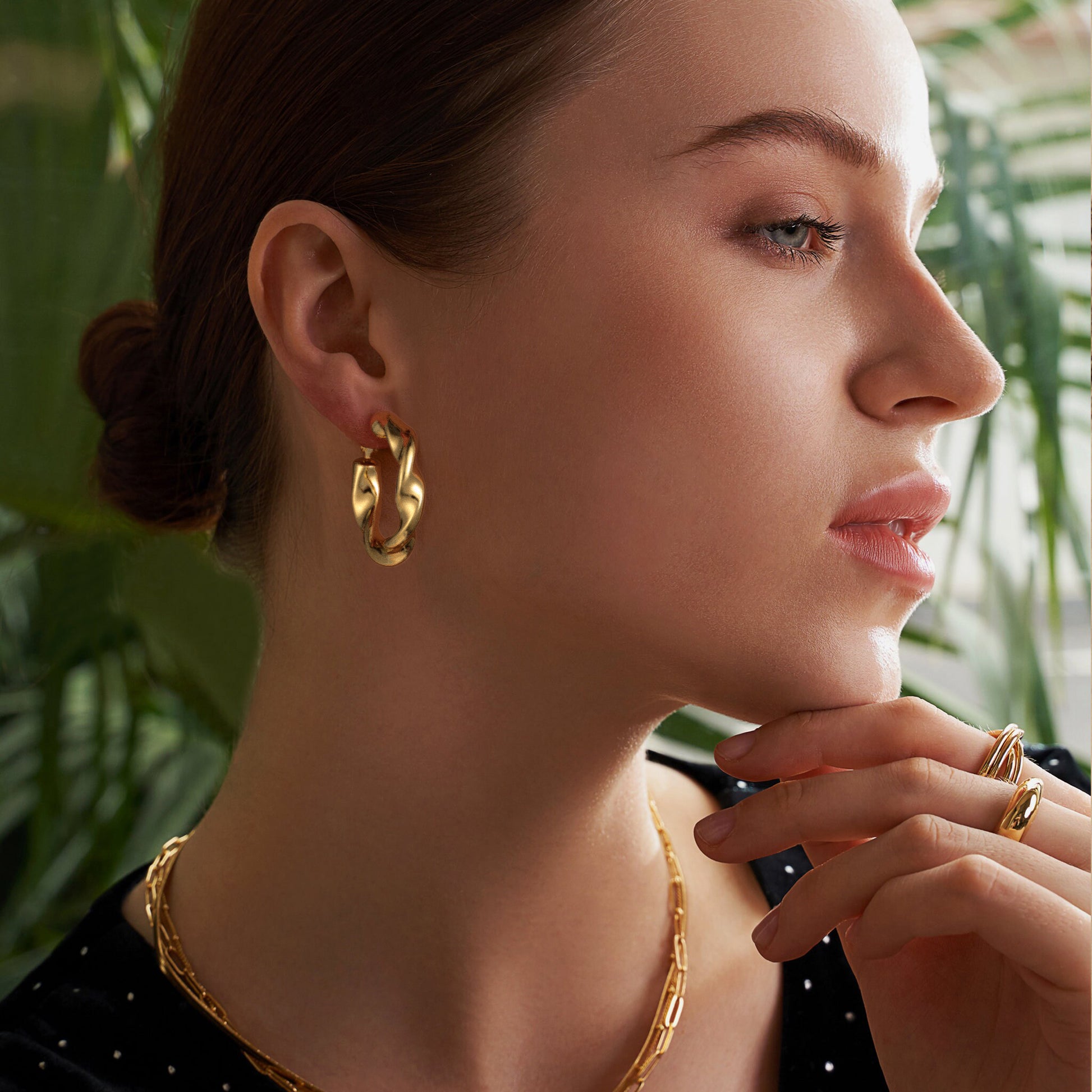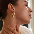 Golden, simple, luxurious, fashionable, sleek, round earrings