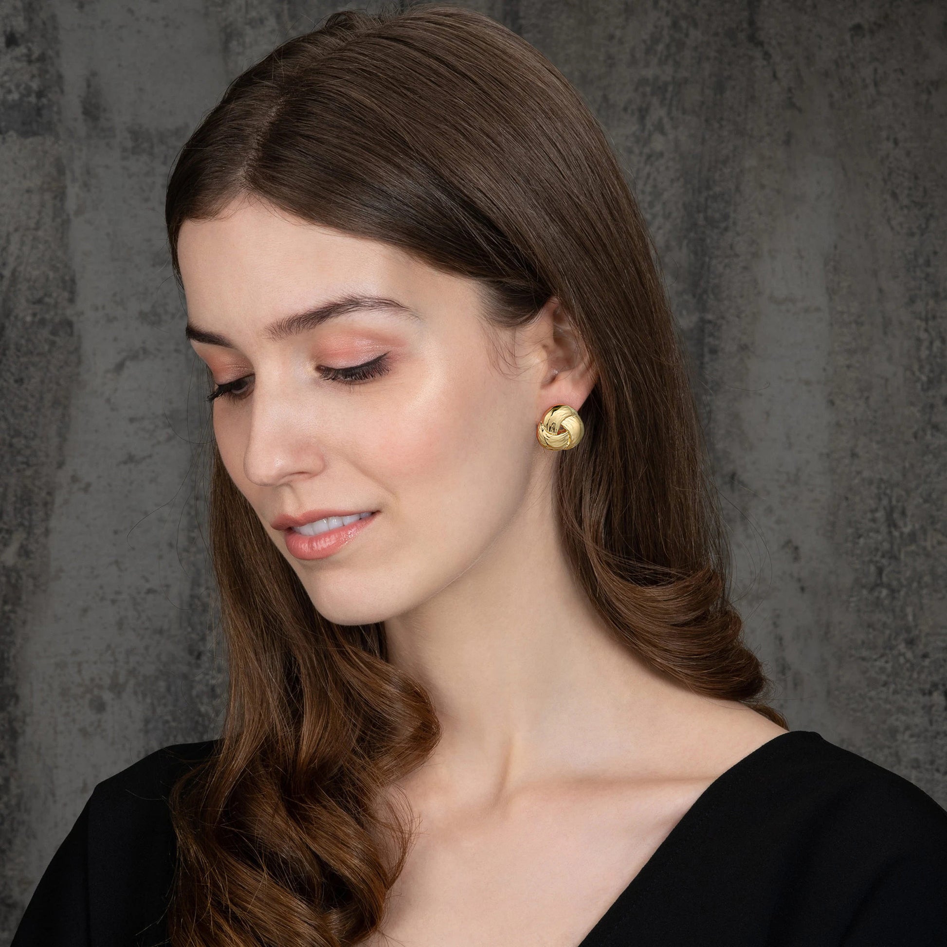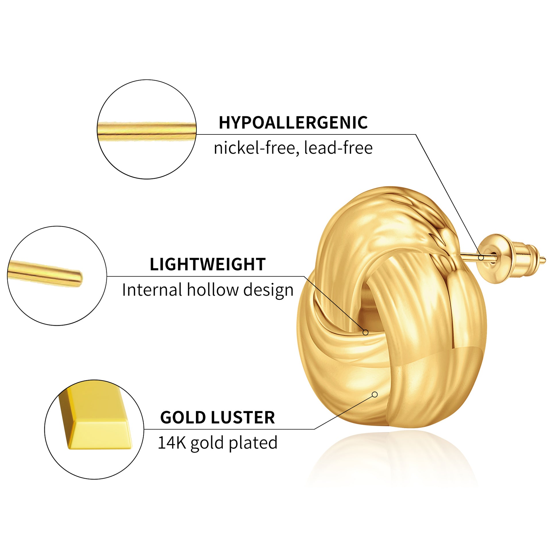 Golden, three-strand loop earrings