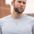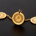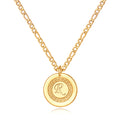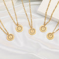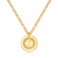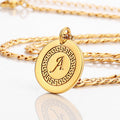 Golden, three to one chain single-layer chain necklace, gold flower shaped letter circular hanging tag, letter necklace