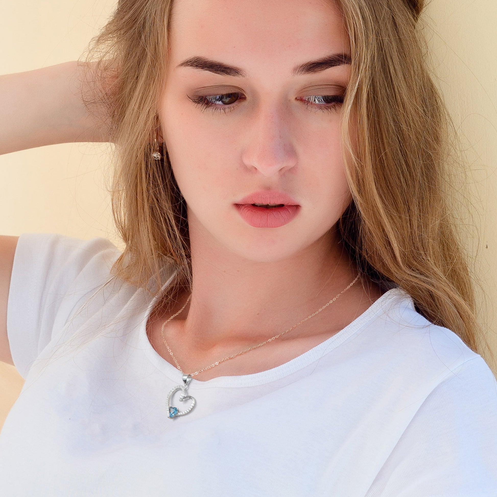 ❤HEART NECKLACE MATERIAL: Delicate aesthetic heart necklace is S925 sterling silver, classic and precious, lightweight, hypoallergenic, these safe materials will not turn your skin green, durable and comfortable to wear it. Sparkling cubic zirconia complement the center birthstone is perfect jewelry gifts for women.