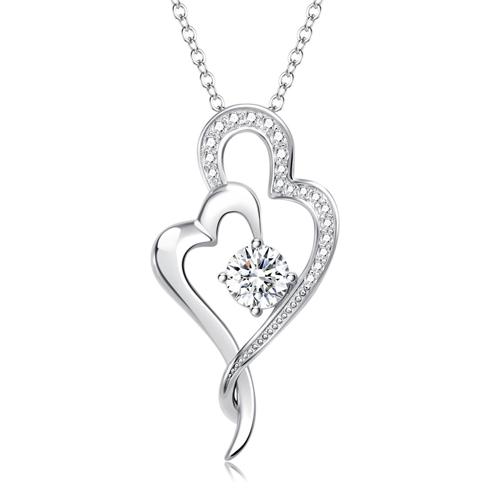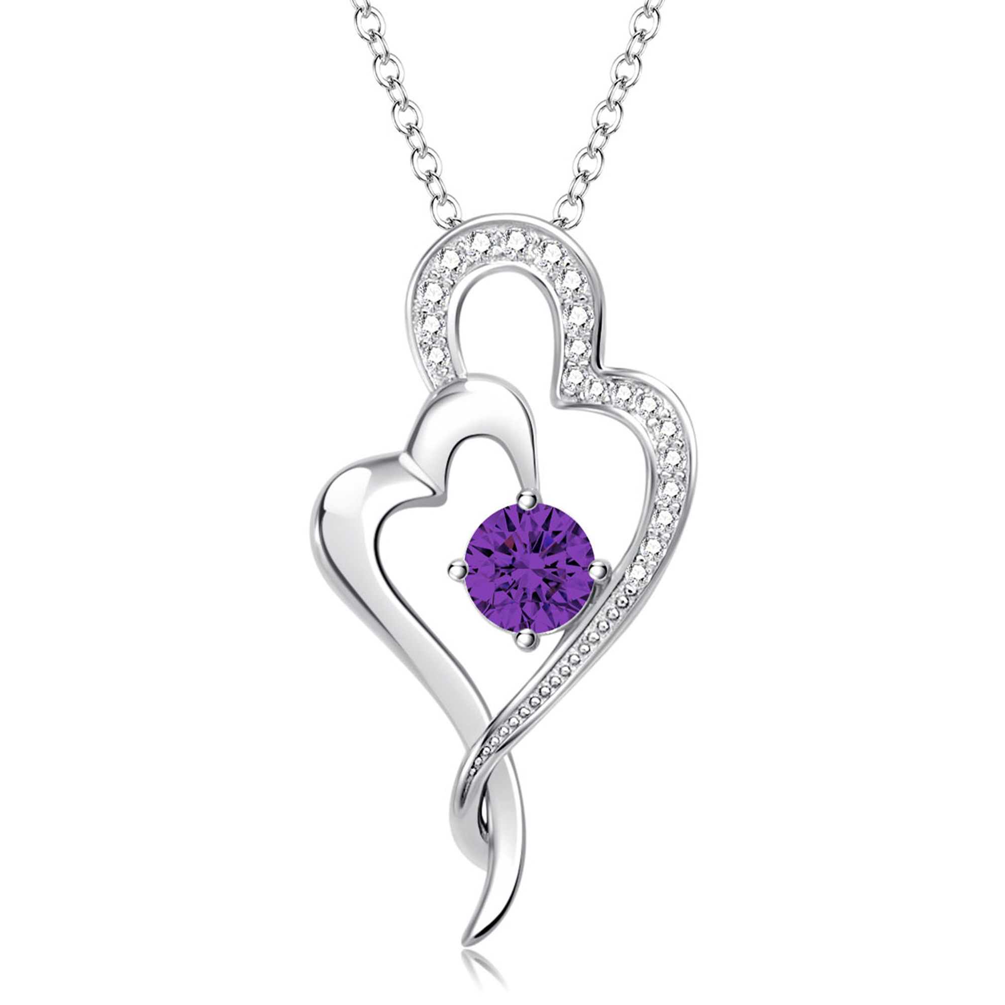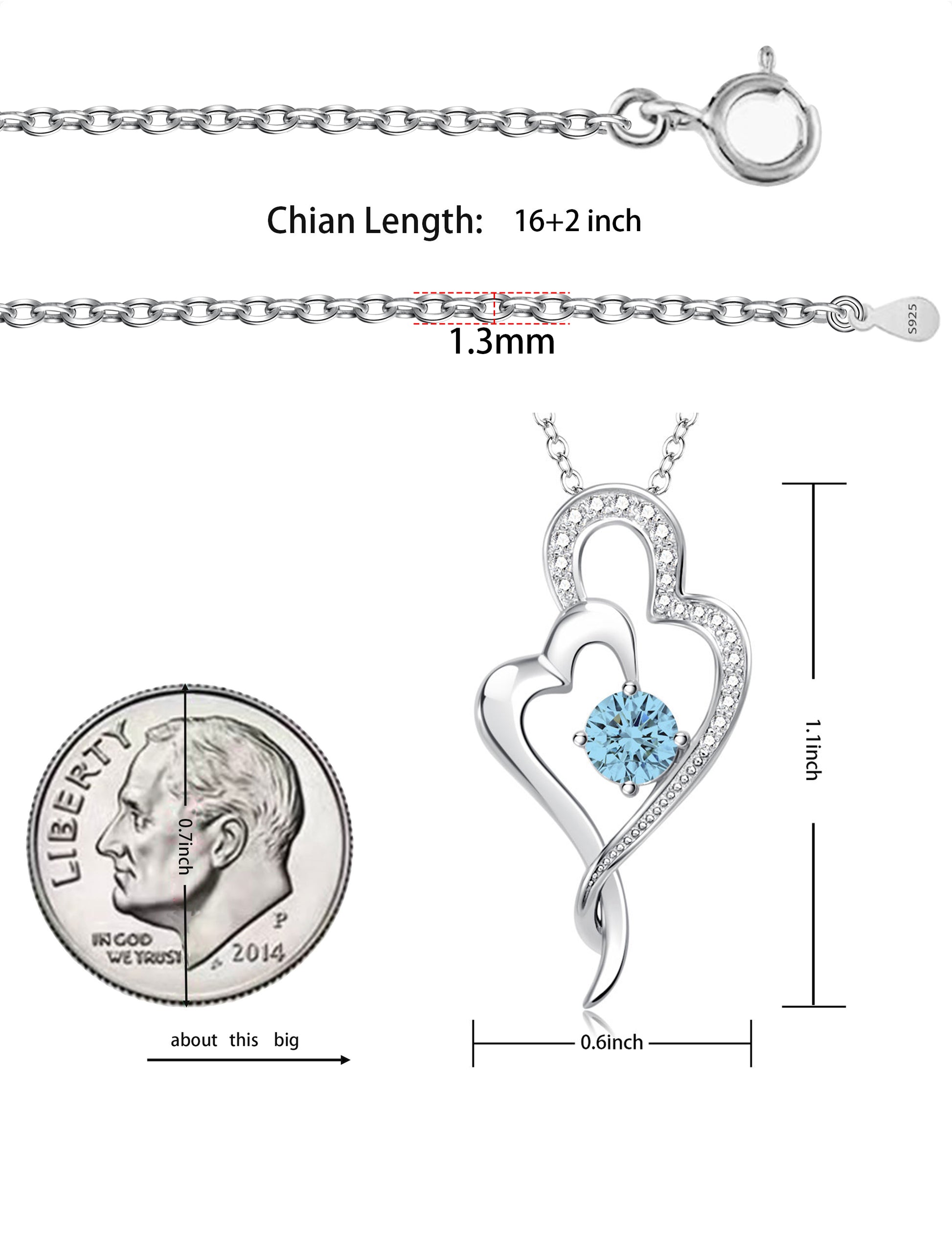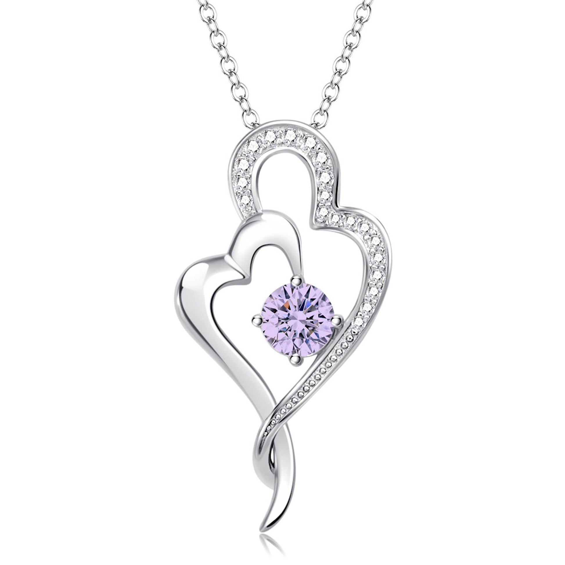 Silver necklace, heart-shaped birthstone necklace, 925 silver plated zircon pendant necklace, women's jewelry gift, Valentine's Day gift for women's wives and girls
