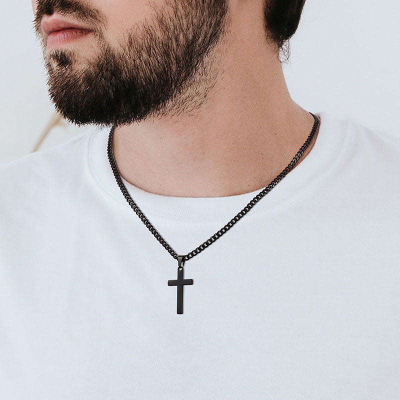 HIGH QUALITY MATERIAL CROSS NECKLACE: Made of 316L Stainless steel, this black cross chain necklace is with high polish surface and smooth touch. Lead free and nickel free, perfect classic cross necklace for men women with sensitive skin.