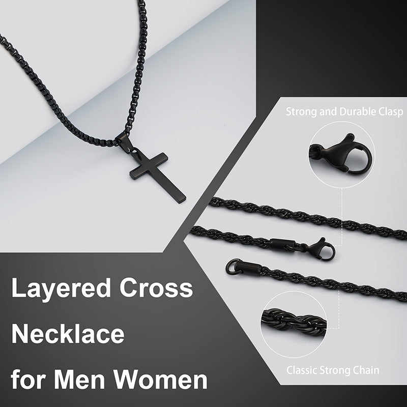 UNIQUE LAYERED CROSS NECKLACE: Unique Black chain cross necklace with rope chain and box, can wear with the simple cross necklace or layered. Will be get a different style, or you can also wear with the rope chain simply or layering with other pendant, will get a classic feeling.