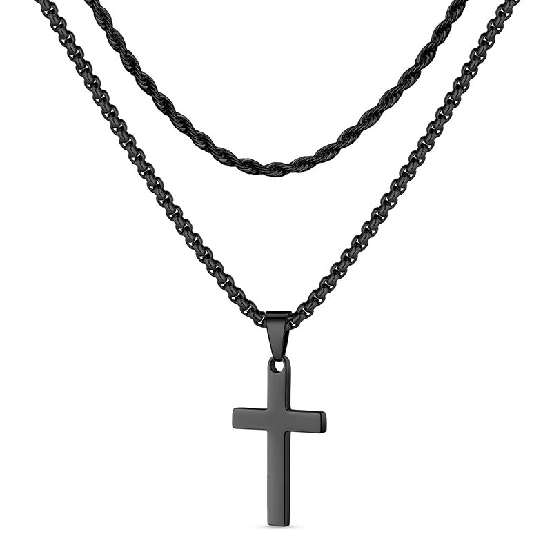 HIGH QUALITY MATERIAL CROSS CHAIN NECKLACE: Made of 316L Stainless steel, this Black cross chain necklace is with high polish surface and smooth touch. Lead free and nickel free, perfect classic cross necklace for men women with sensitive skin.