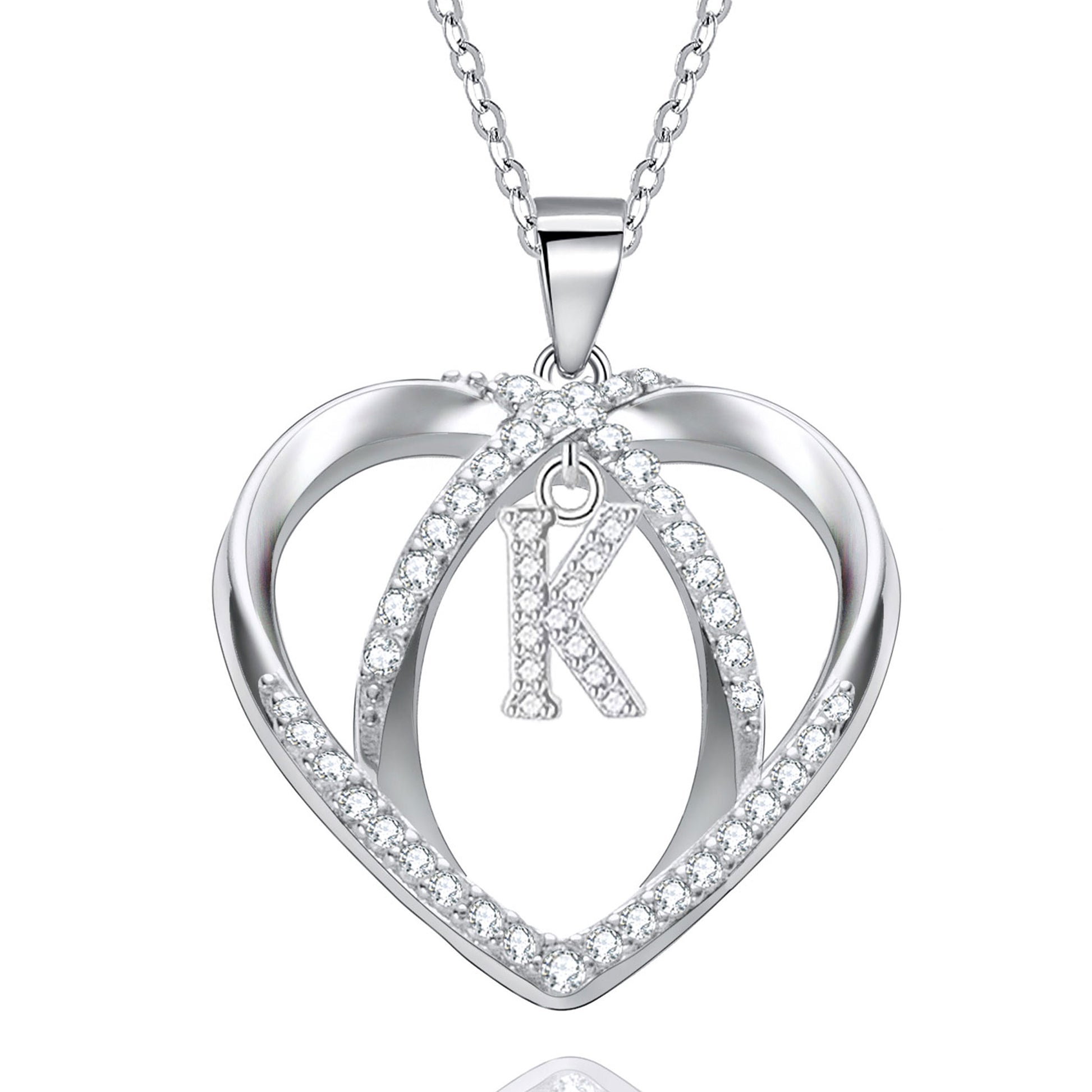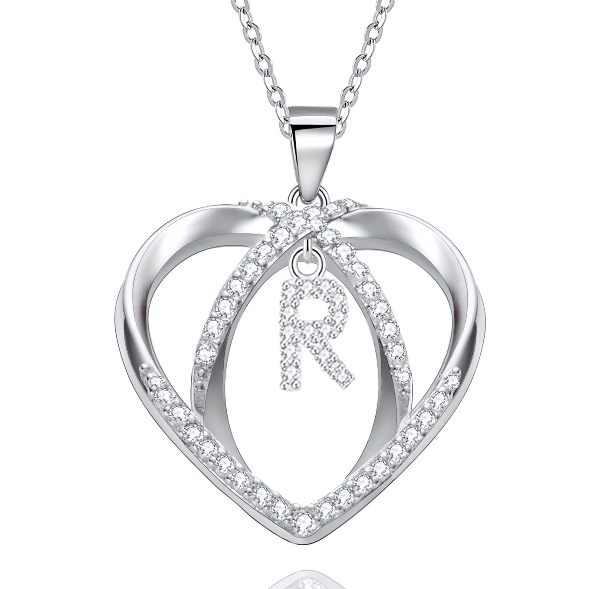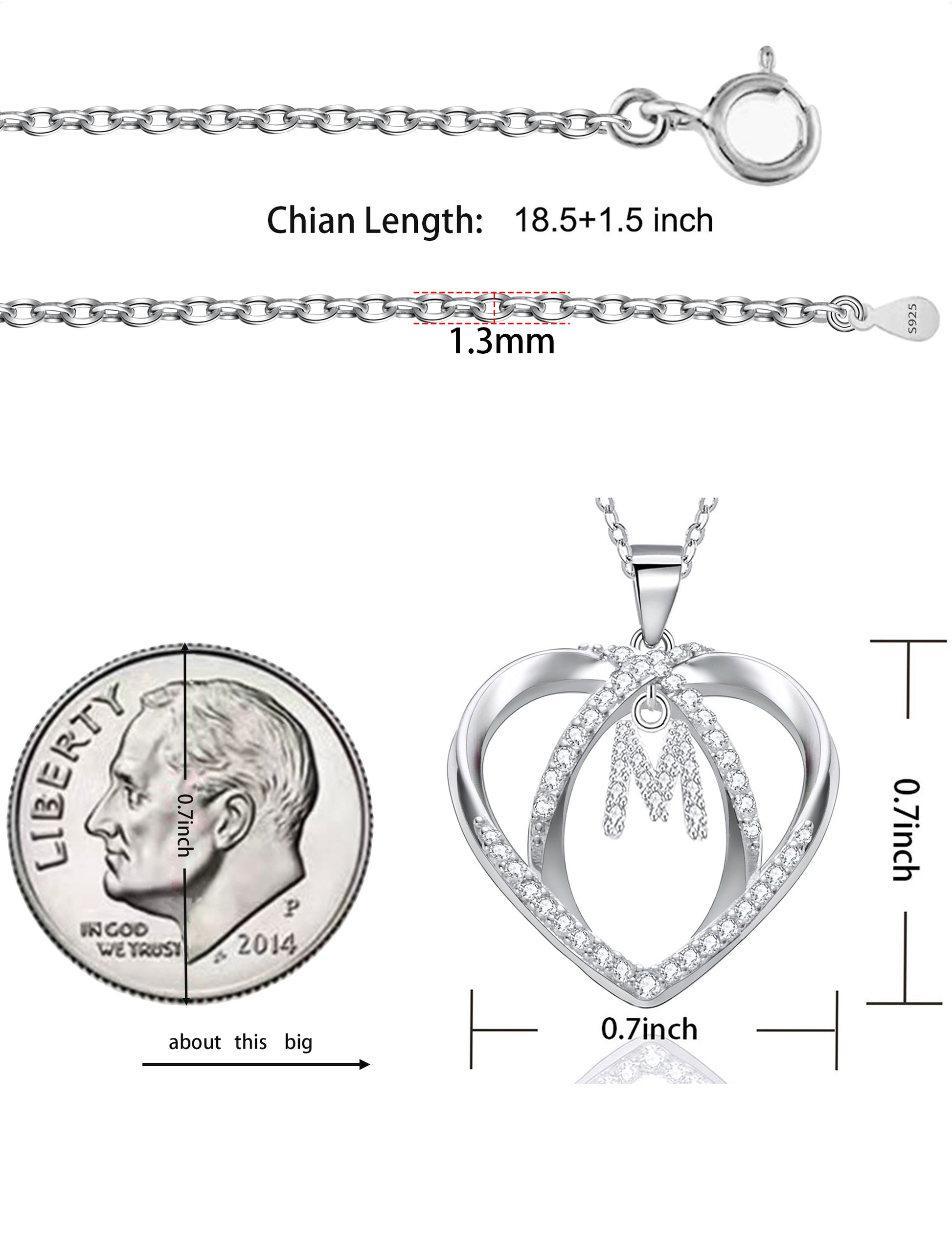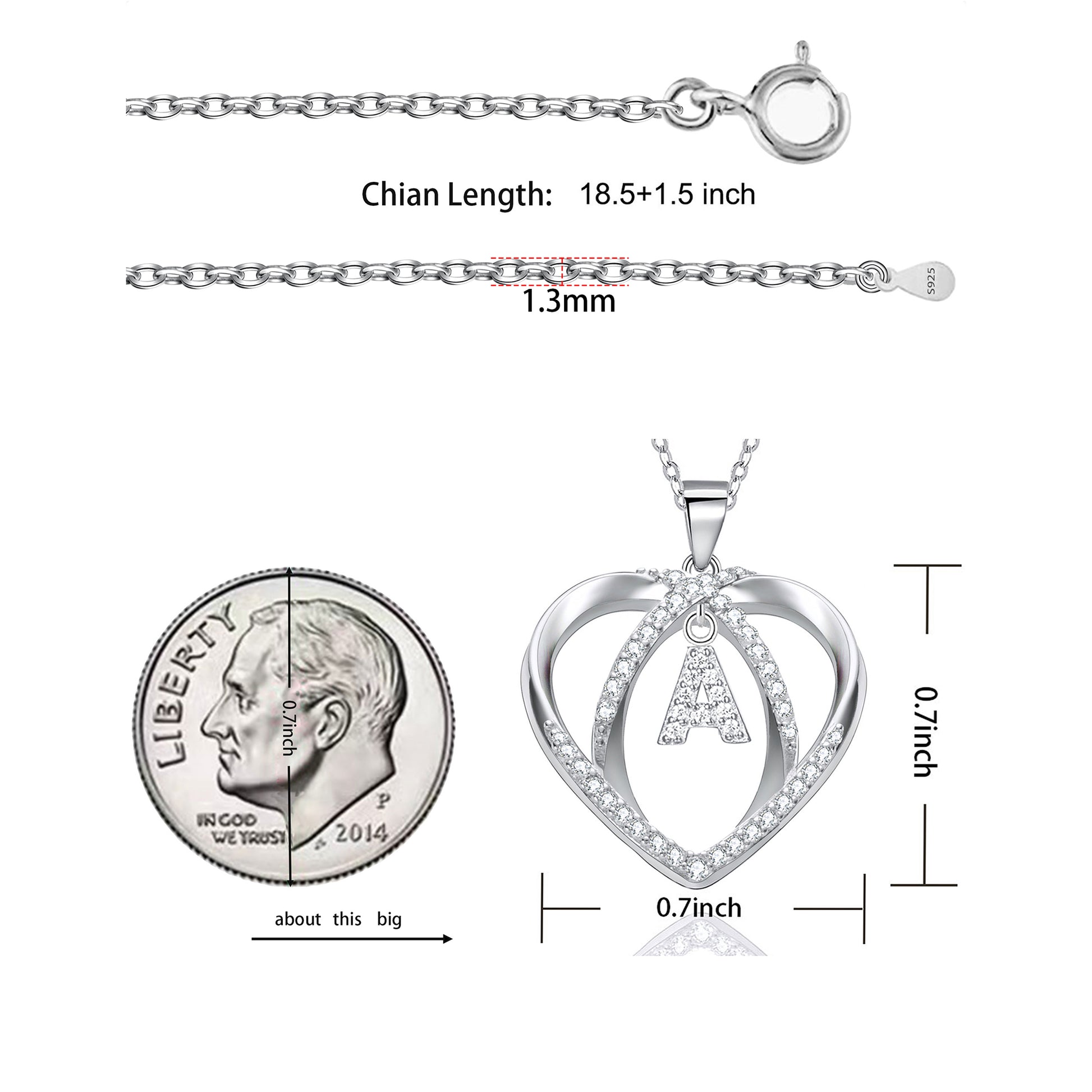 High quality material: The heart-shaped first letter necklace is made of high-quality 925 silver plated material, embedded with AAA+cubic zirconia, sparkling and charming. The chain length is 45.5+3.5 centimeters, suitable for most women. The acronym of the person you love.