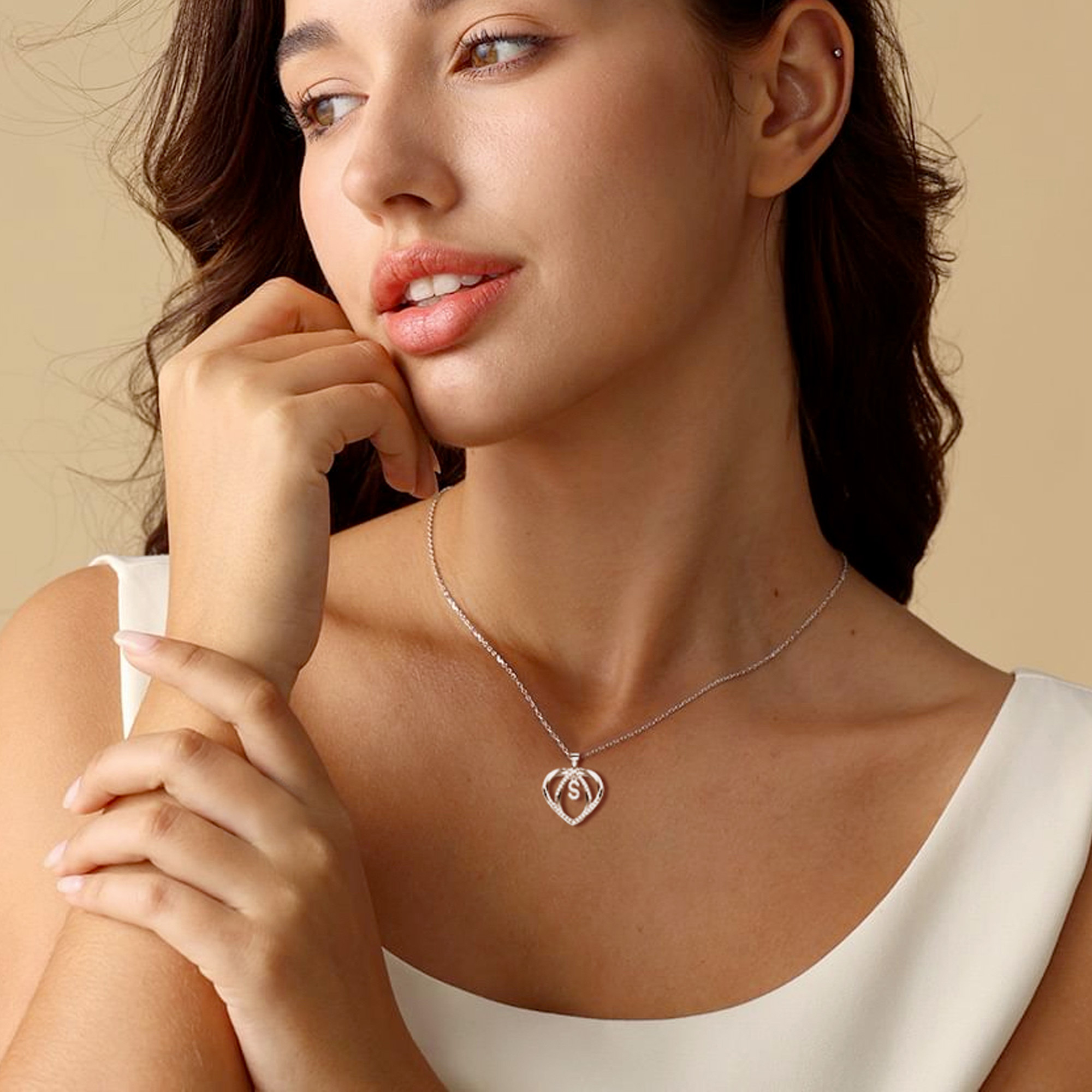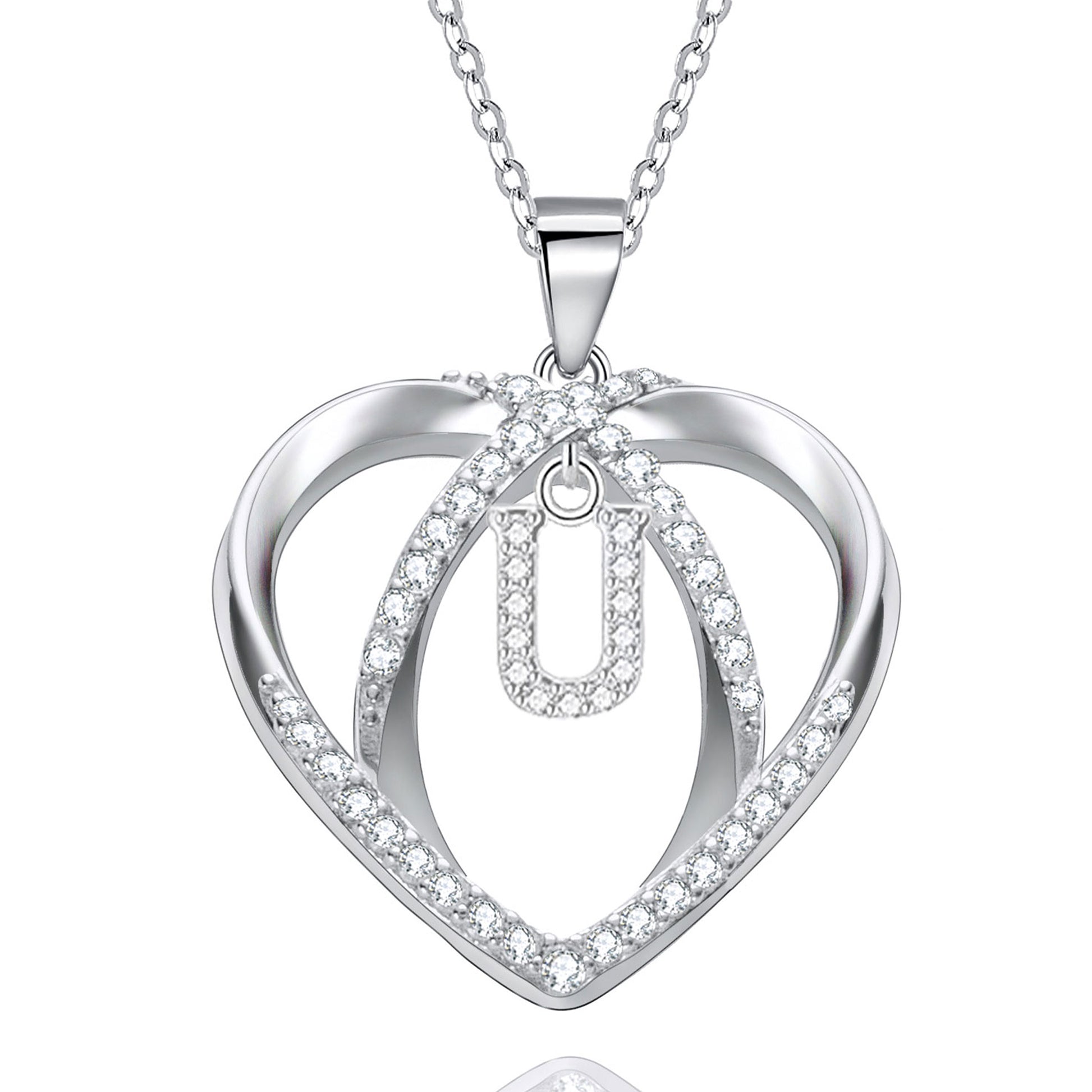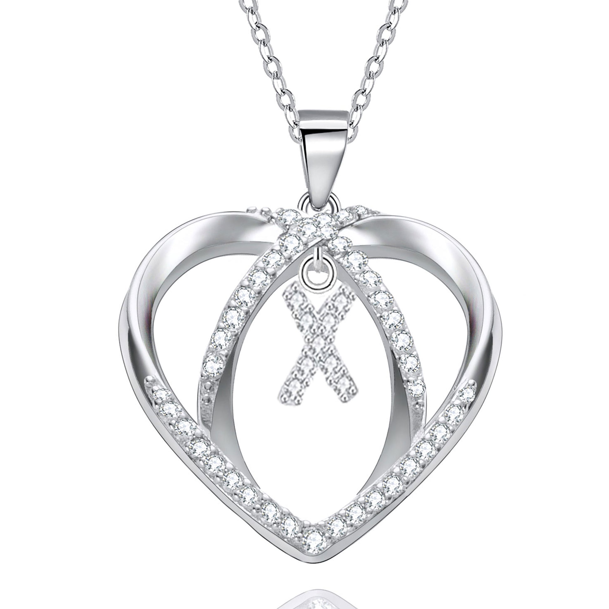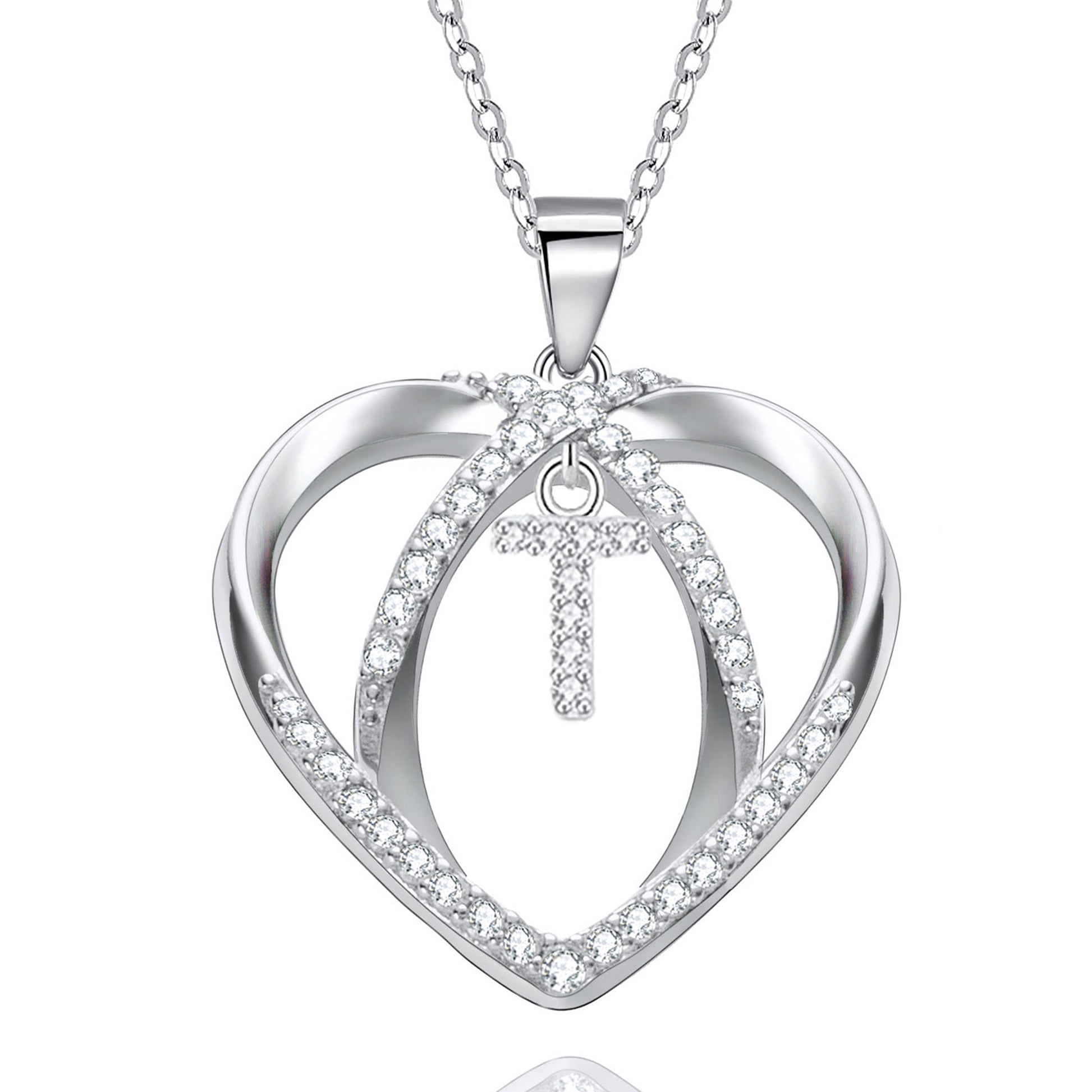 High quality material: The heart-shaped first letter necklace is made of high-quality 925 silver plated material, embedded with AAA+cubic zirconia, sparkling and charming. The chain length is 45.5+3.5 centimeters, suitable for most women. The acronym of the person you love.