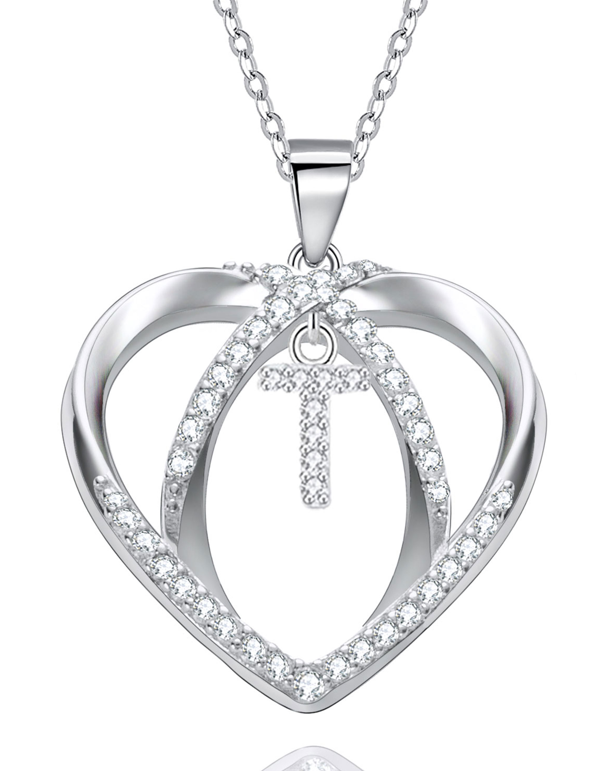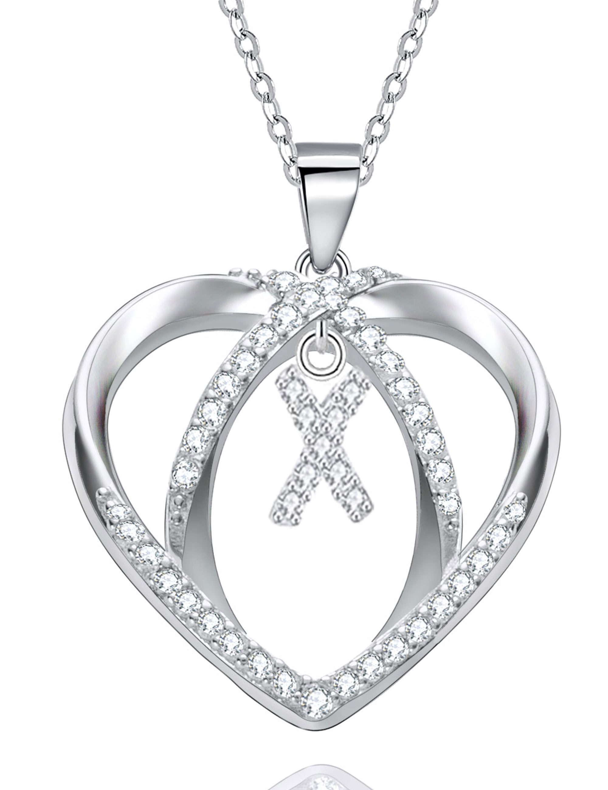 Silvery,cross heart-shaped initial letter necklace, S925 silver plated necklace, zircon pendant necklace, suitable jewelry gift for girls;