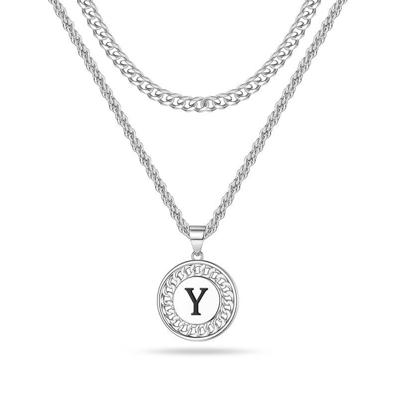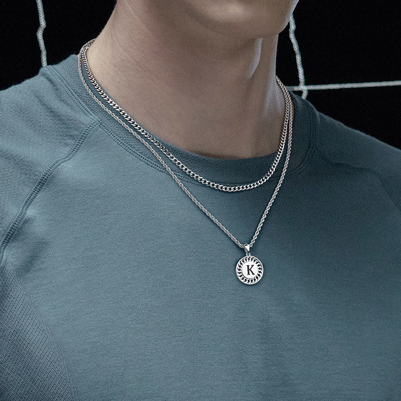 SIZE: 2Pcs Layered necklace, 3mm 20"+2" cuban chain and 2.5mm 22"+2" rope chain initial pendant necklace, perfect length and size to fit any occasions. Lobster clasp design, easy to open and close. A unique women mens accessories add to jewelry collection.