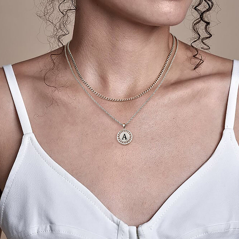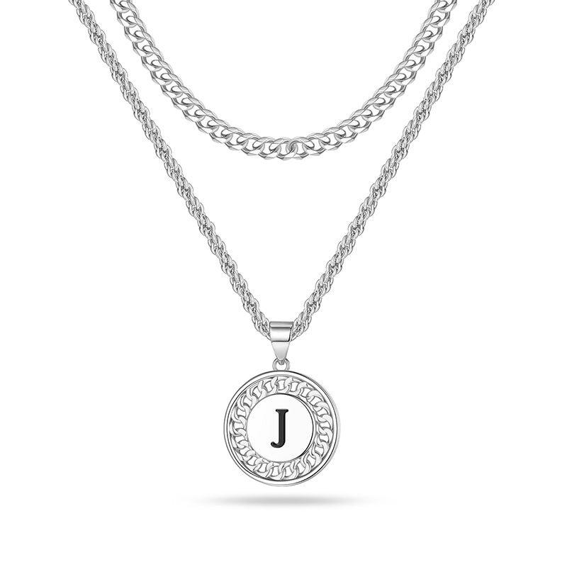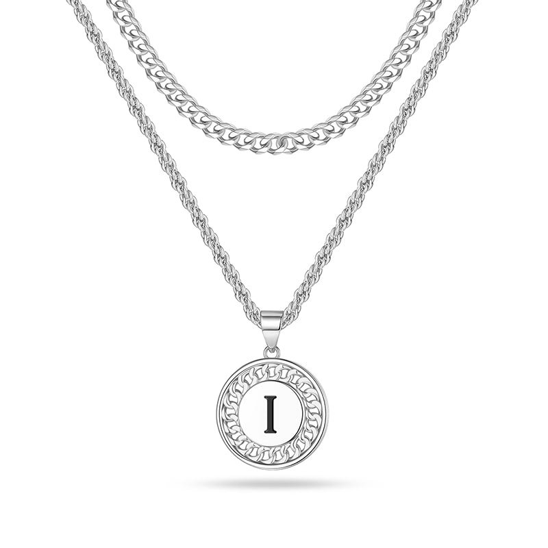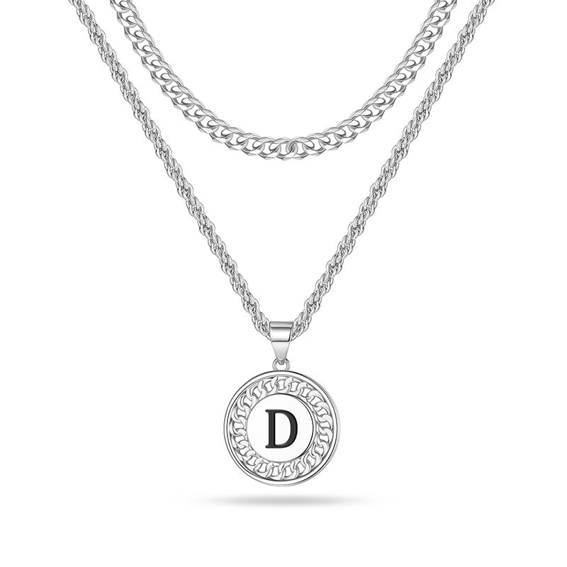 LAYERED INITIAL NECKLACE: The letter necklace has letters and patterns on both sides, don't worry about turning over to the back. Initial necklaces for men let him know he is the most important one and you are with him all the time. Fashion originates from classics, minimalism design, great for wearing alone or layering with other dainty necklaces.