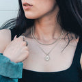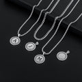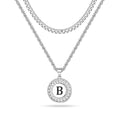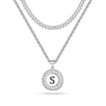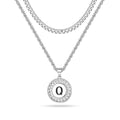 Silvery, Cuban chain and rope chain double layered chain necklace, black letter circular hanging tag necklace, style 1- silver hollow out