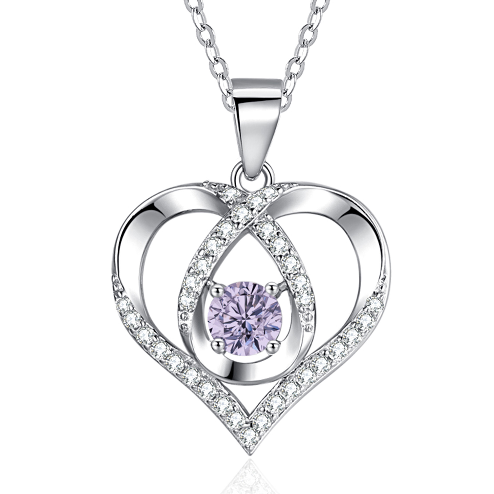 Ladies' Birthstone Necklace: Unique heart-shaped design with smooth heart-shaped lines and cubic gemstones of gemstone quality embellished in the middle of the Birthstone heart-shaped necklace pendant, high-precision cutting, reflecting extraordinary brilliance.