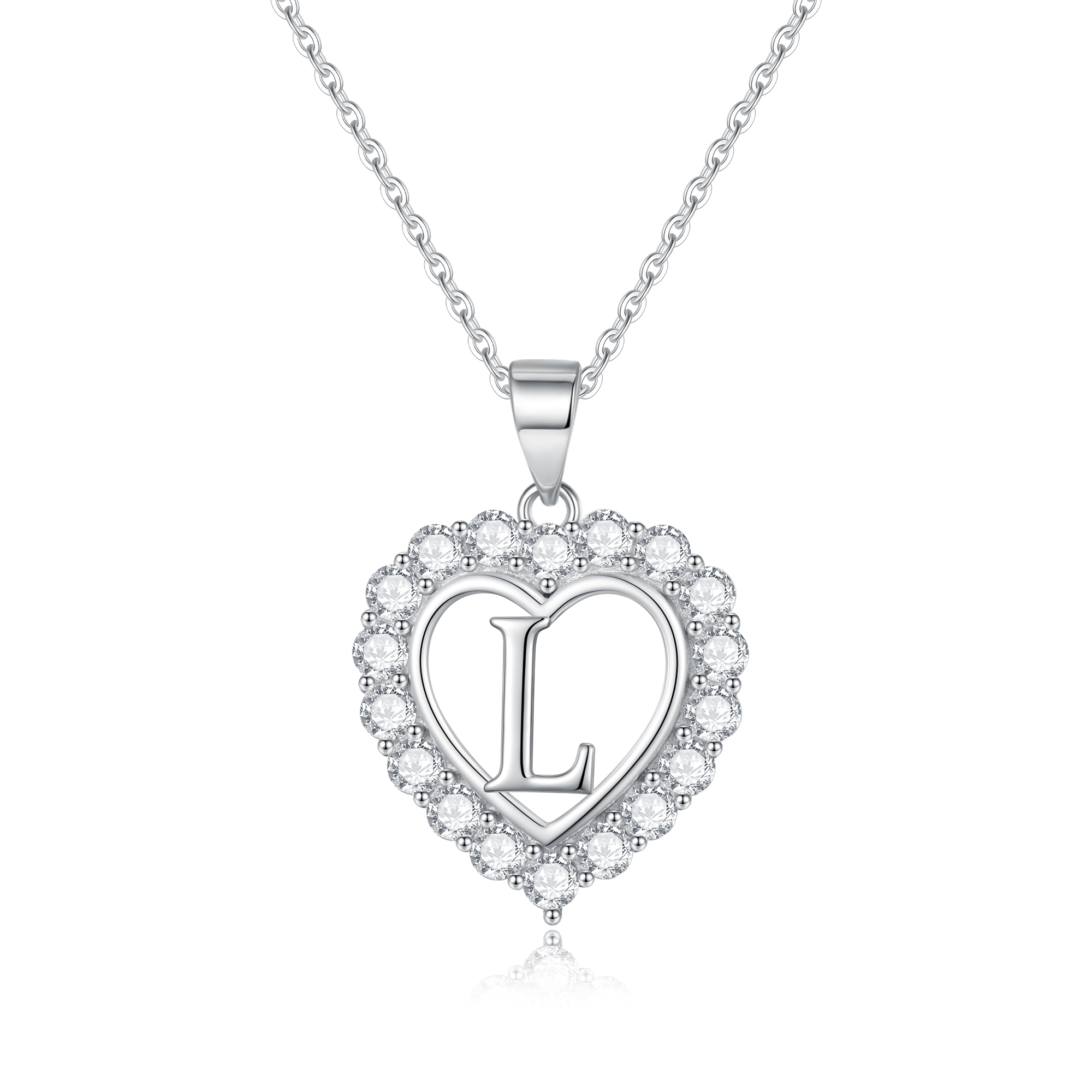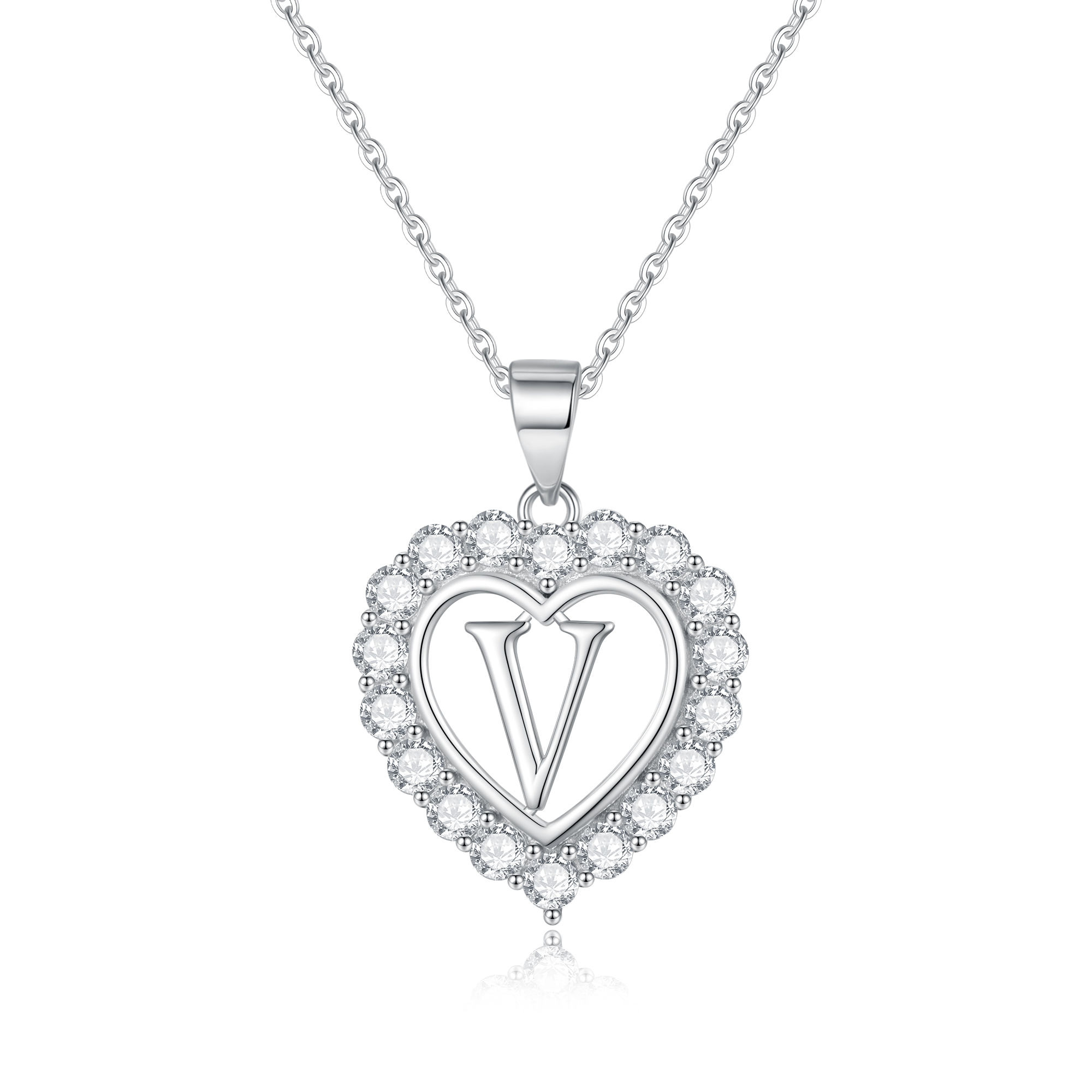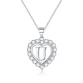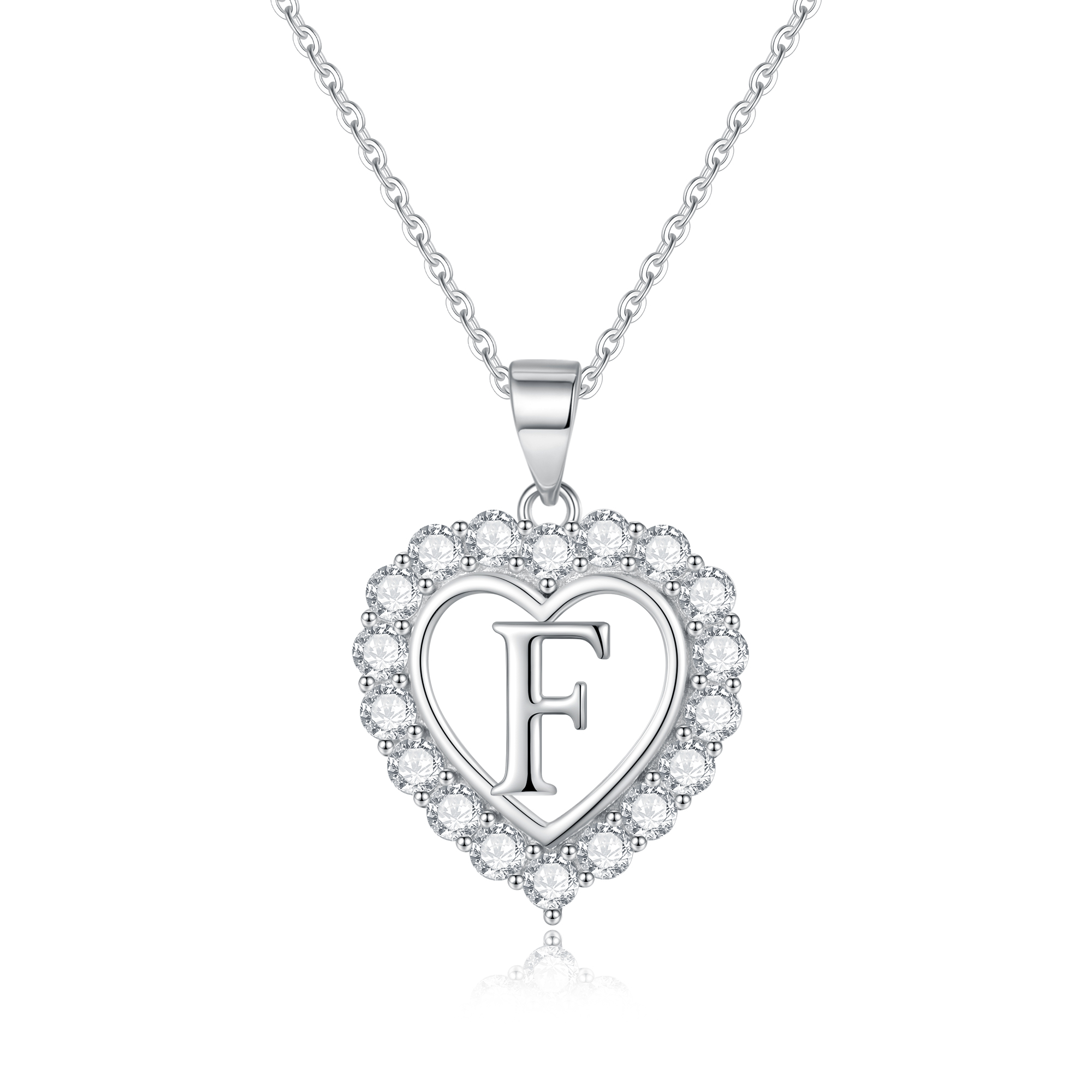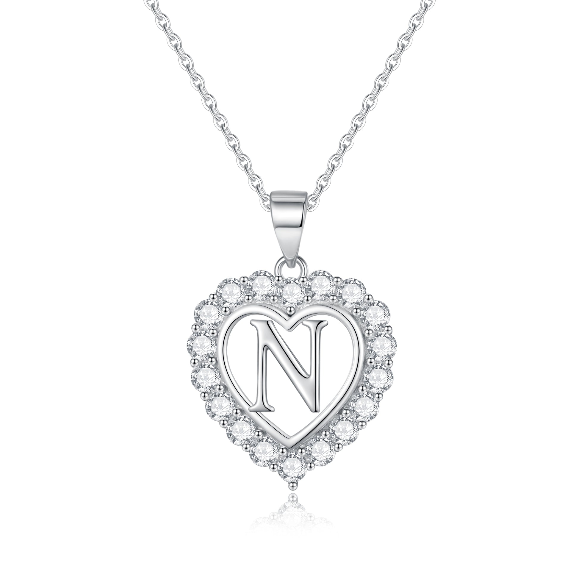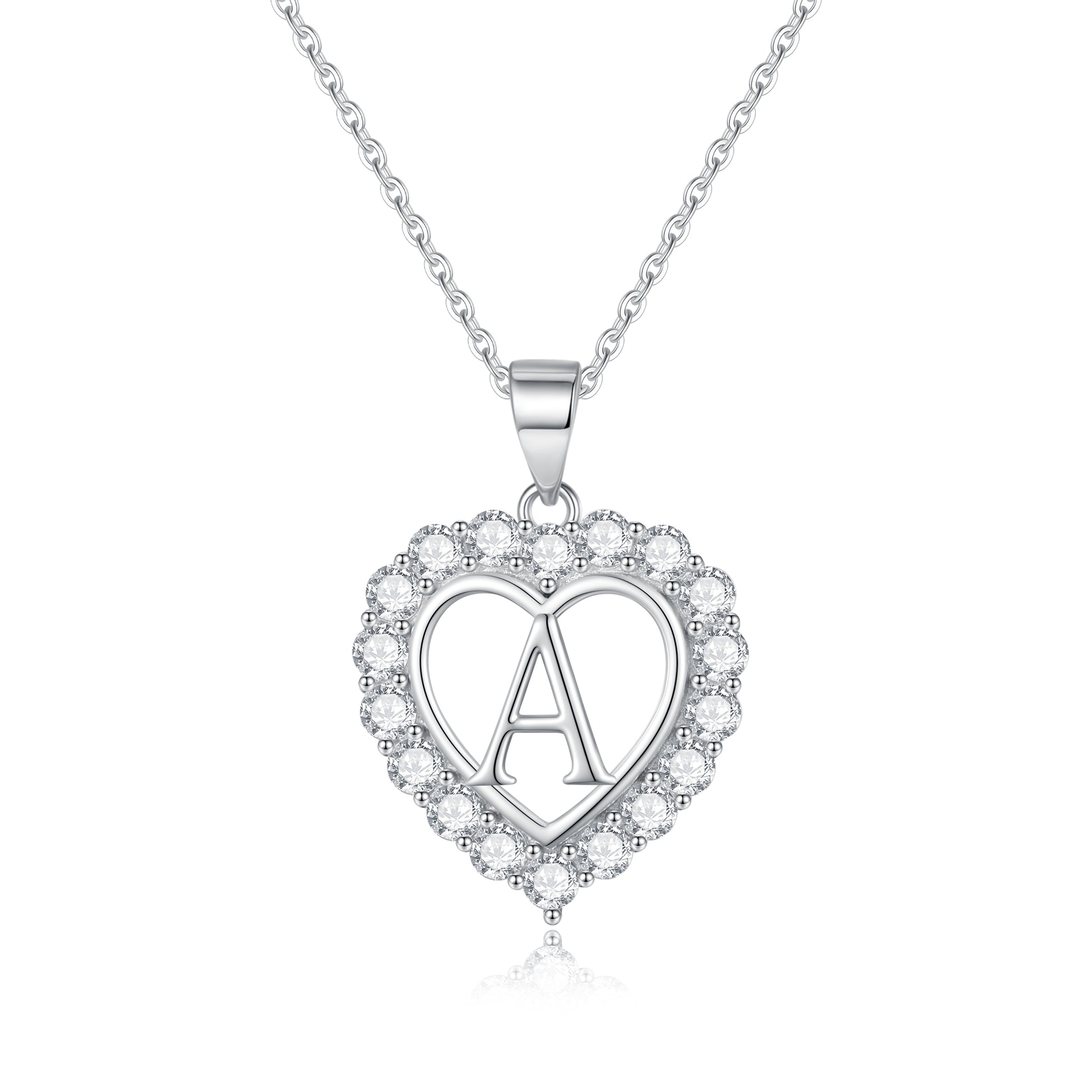 Silvery, heart-shaped zircon initial letter pendant necklace, women's jewelry, a gift for girls;