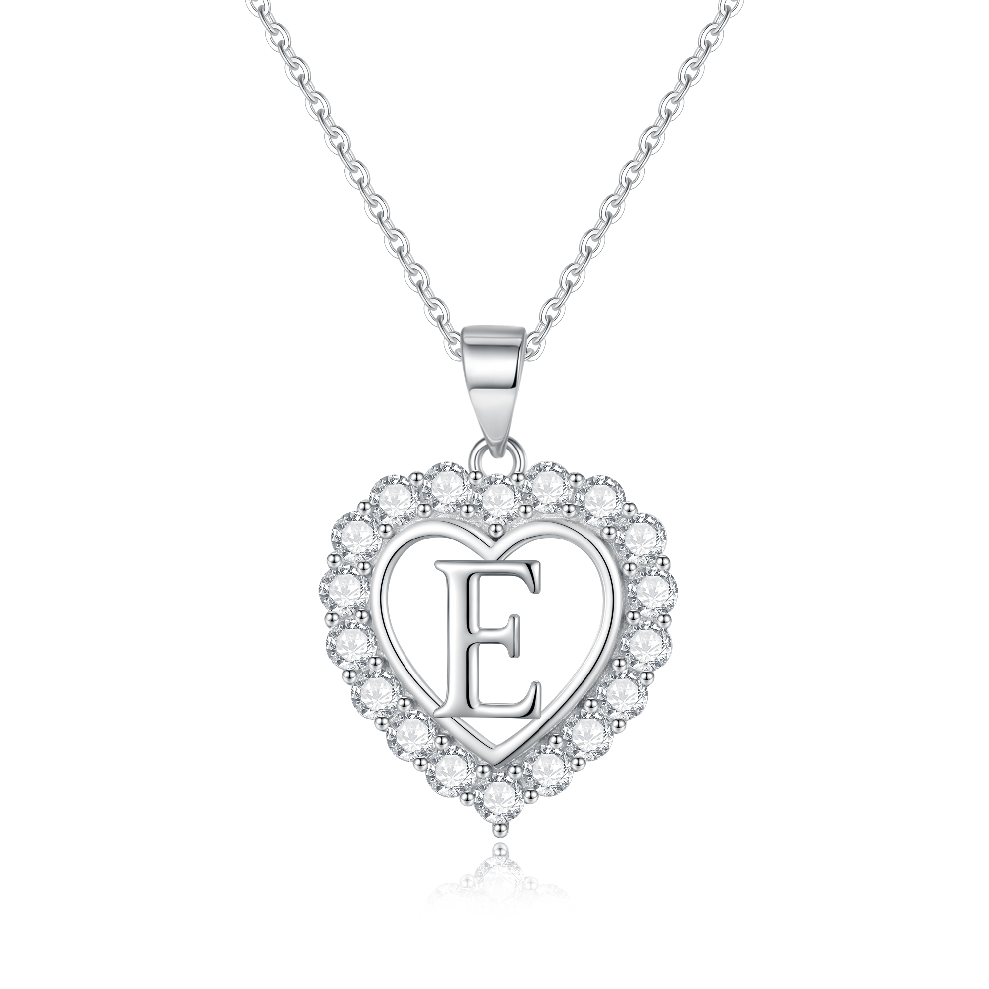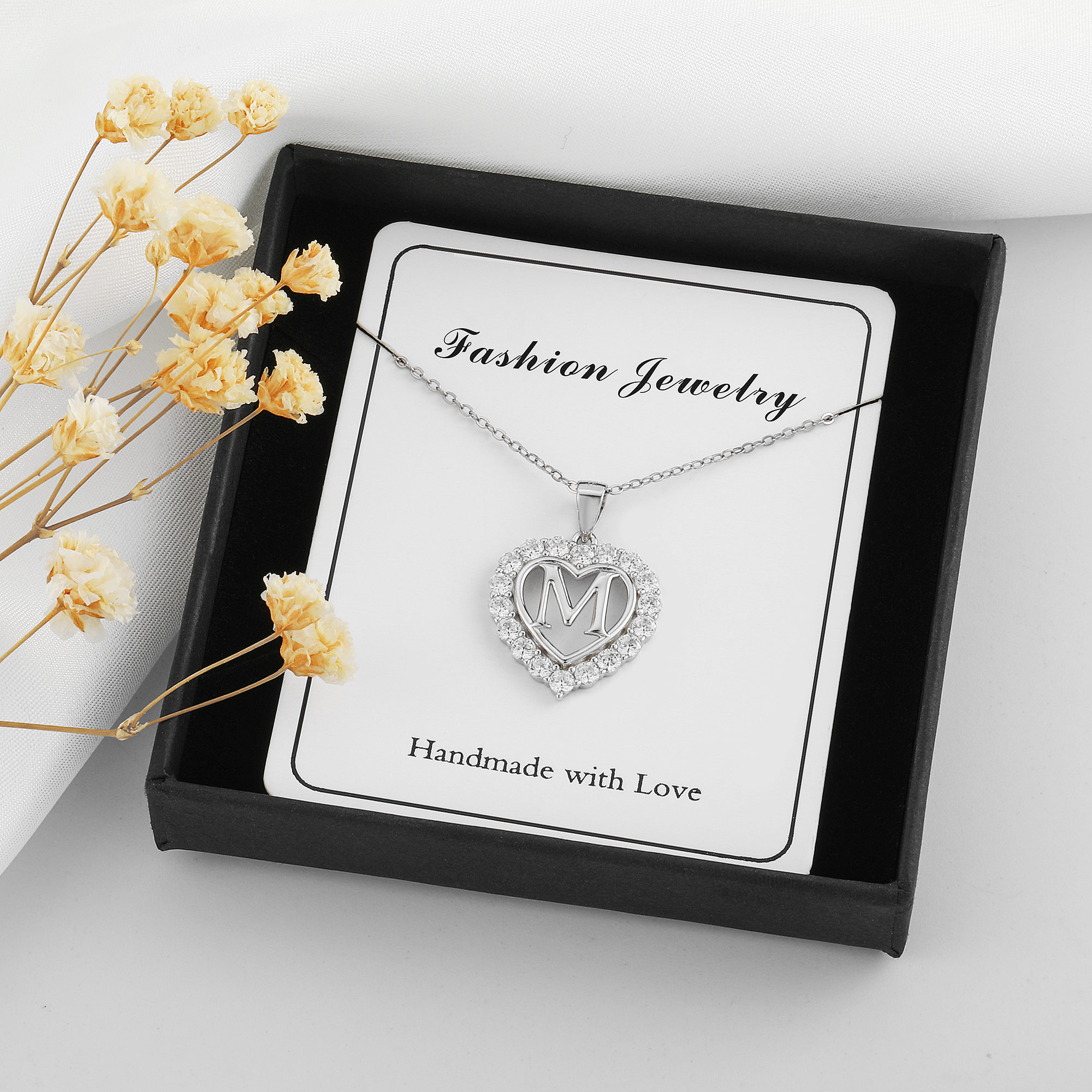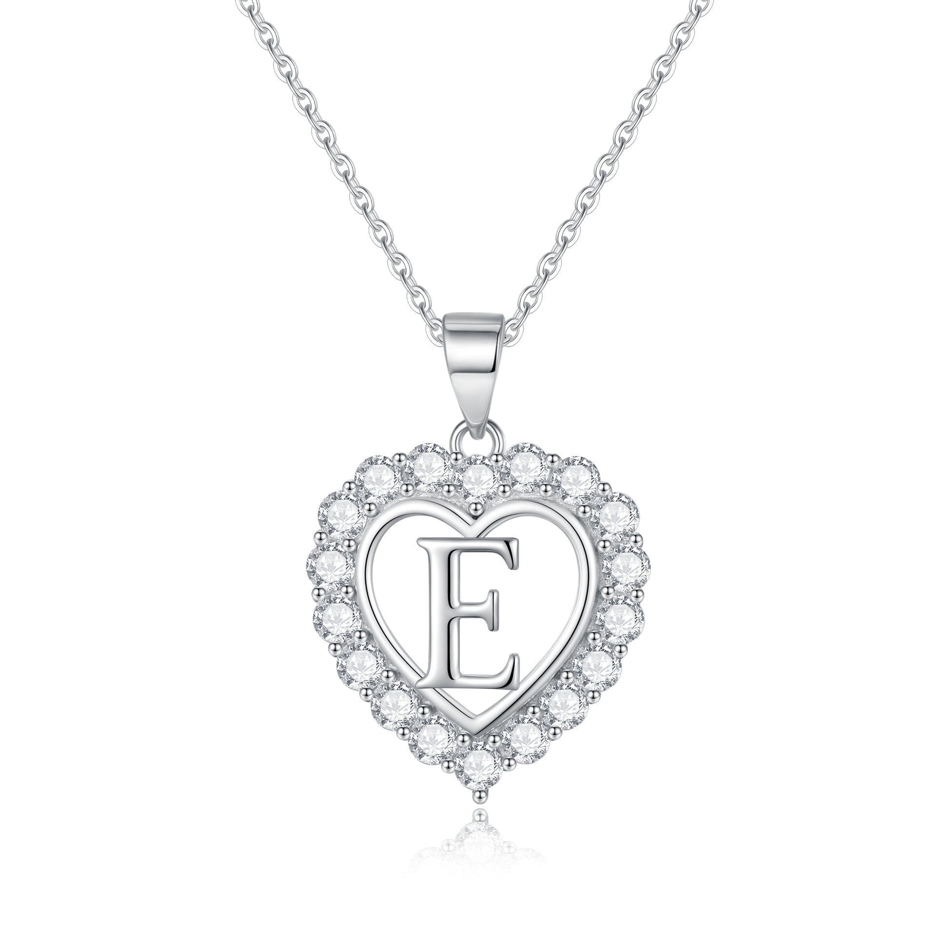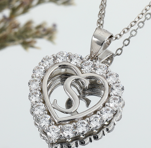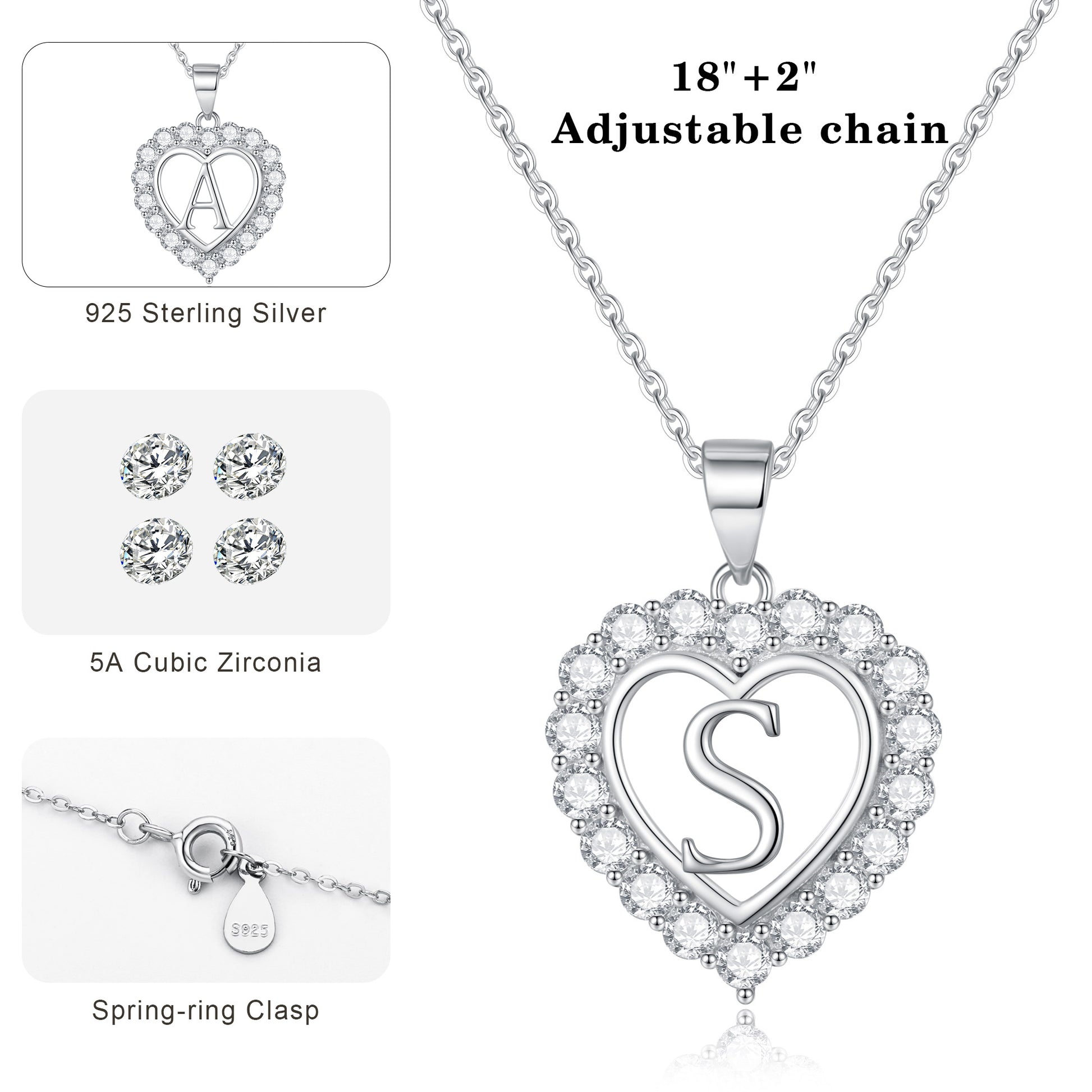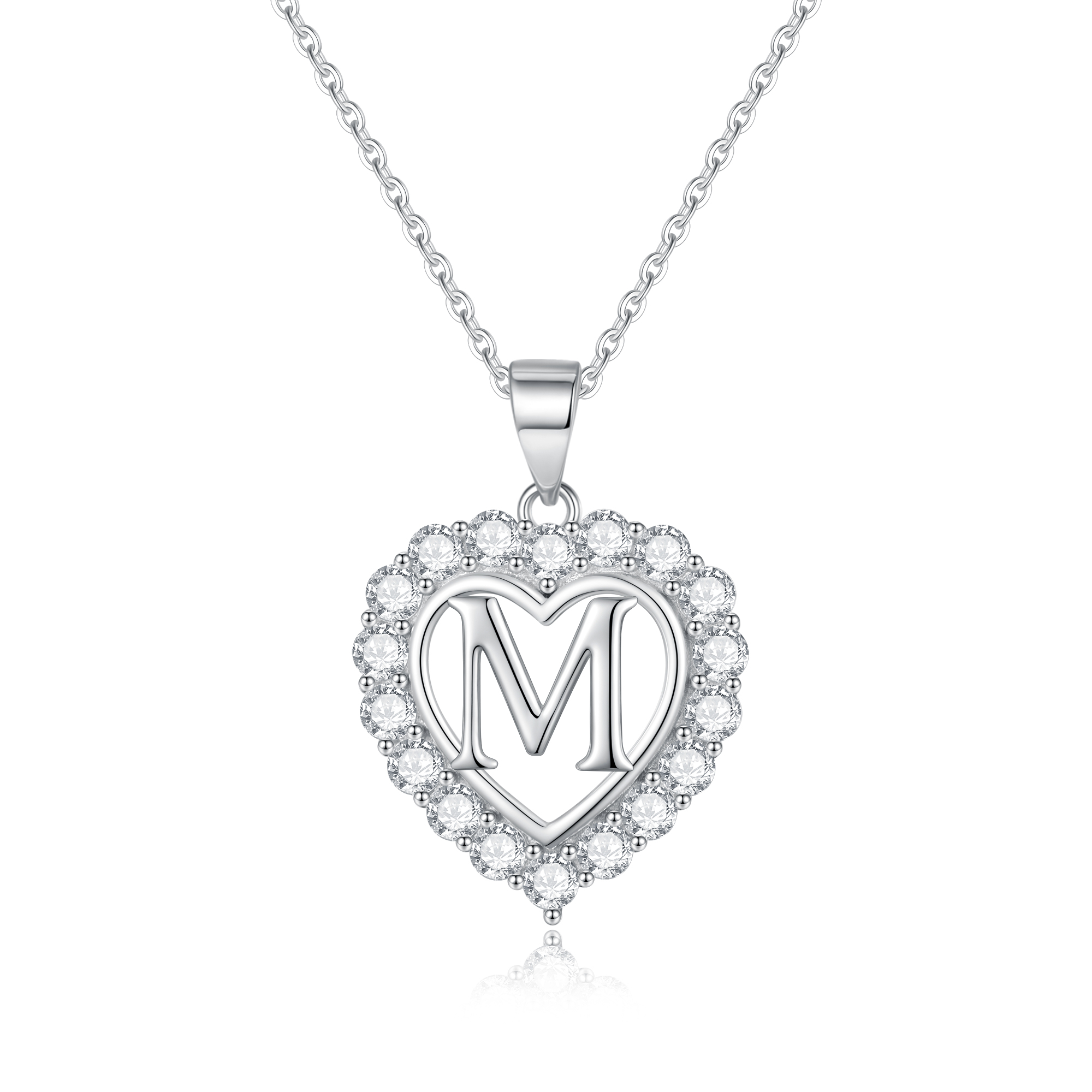 Silvery, heart-shaped zircon initial letter pendant necklace, women's jewelry, a gift for girls;