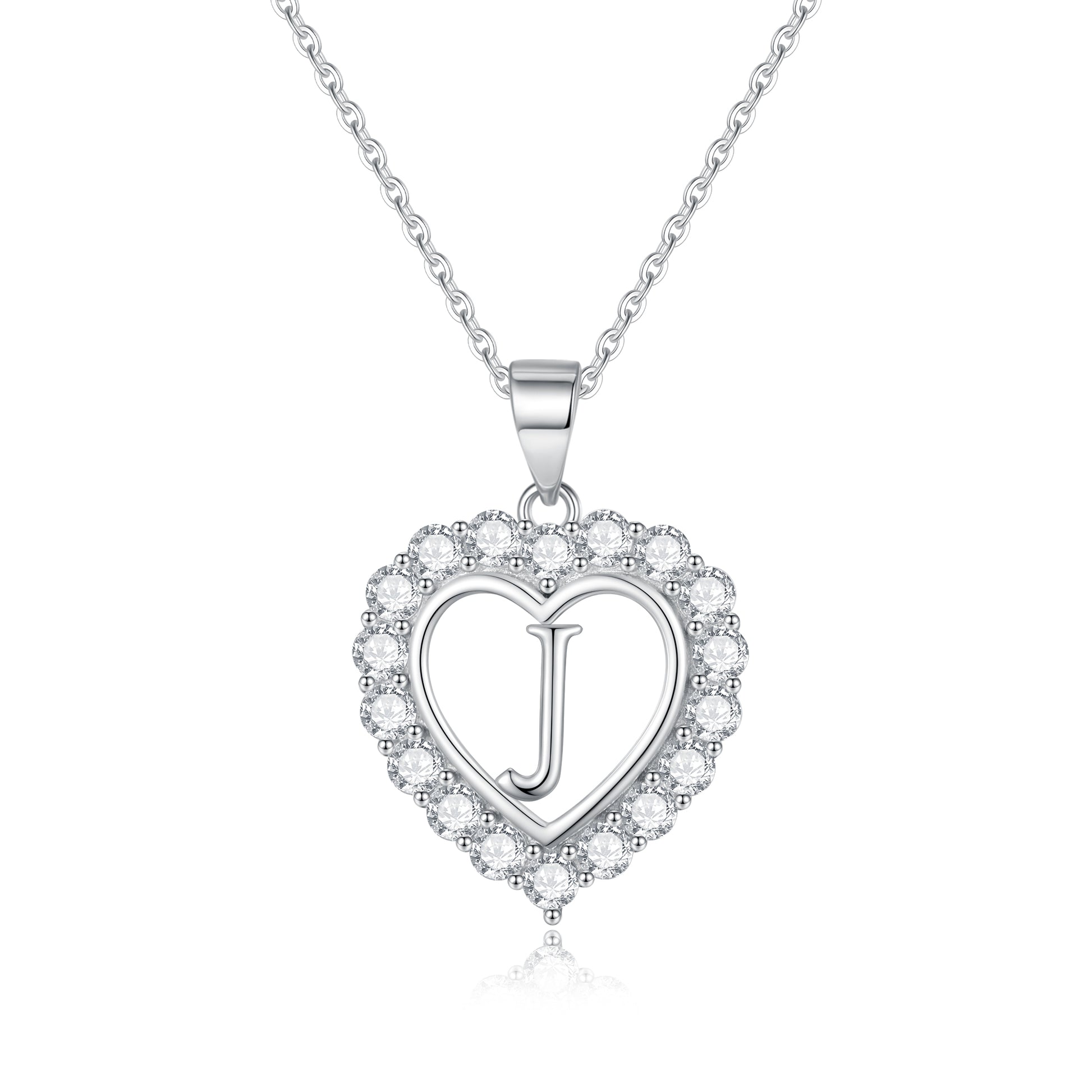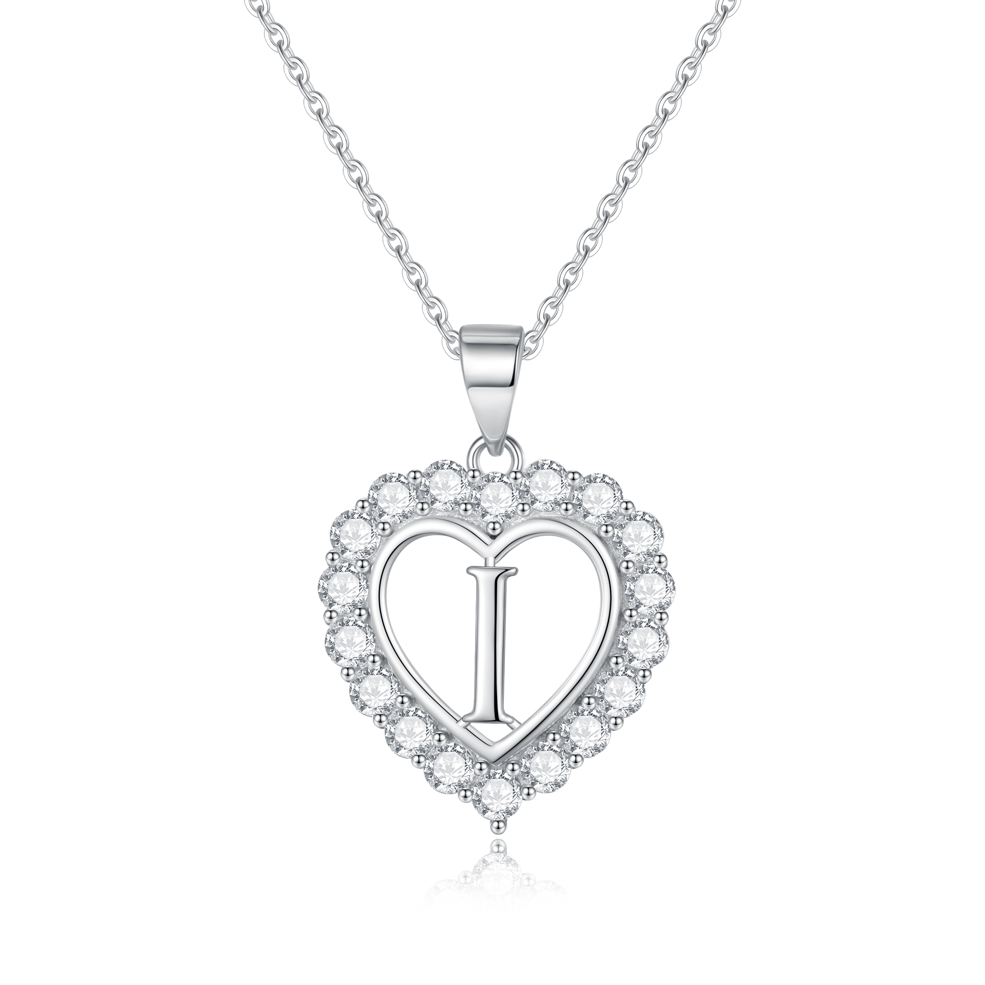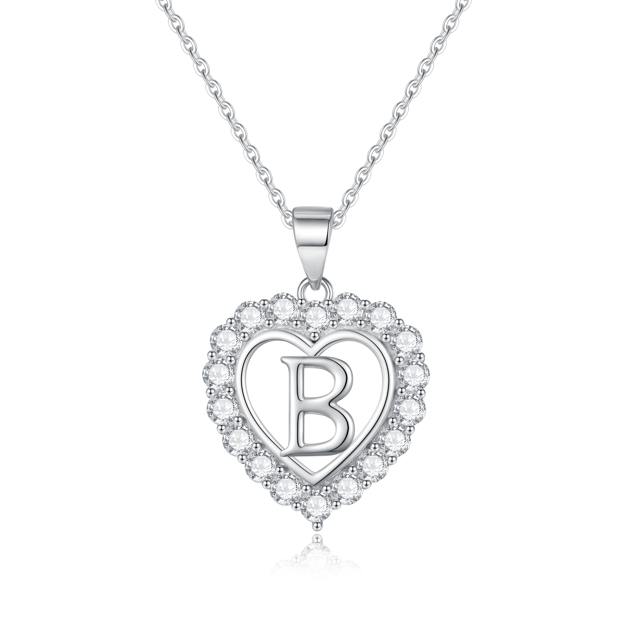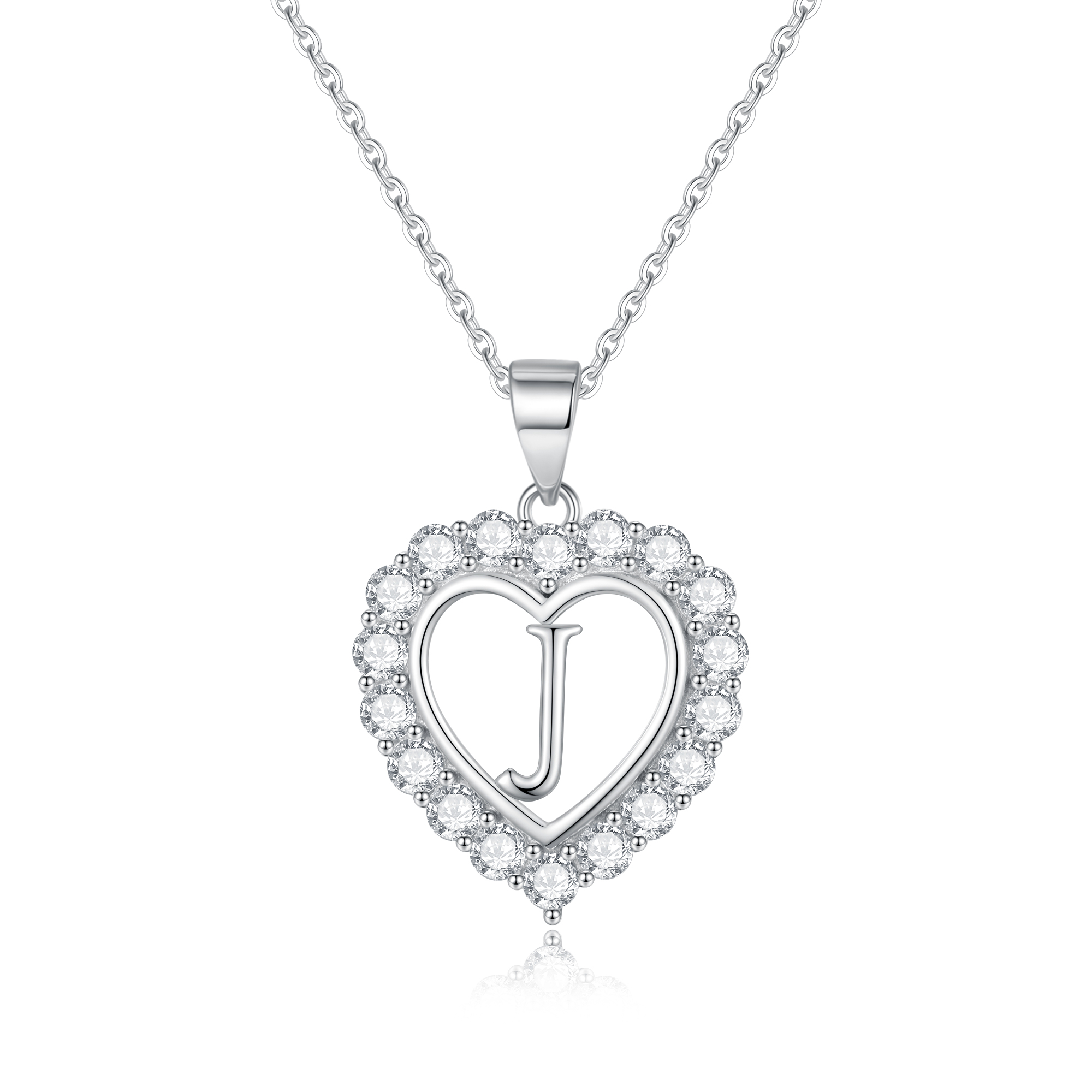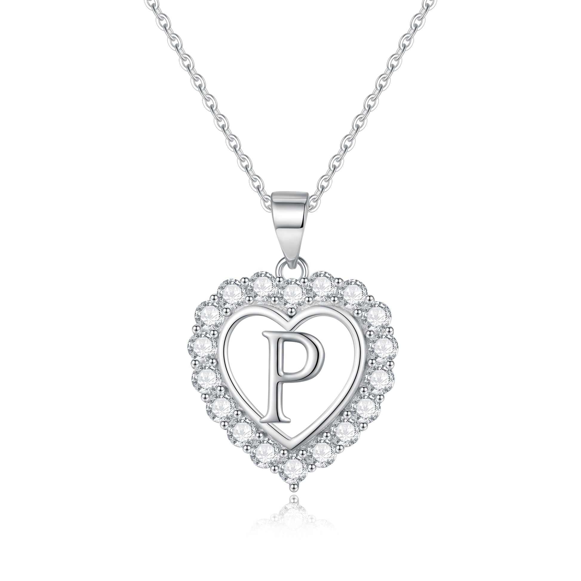 Silvery, heart-shaped zircon initial letter pendant necklace, women's jewelry, a gift for girls;