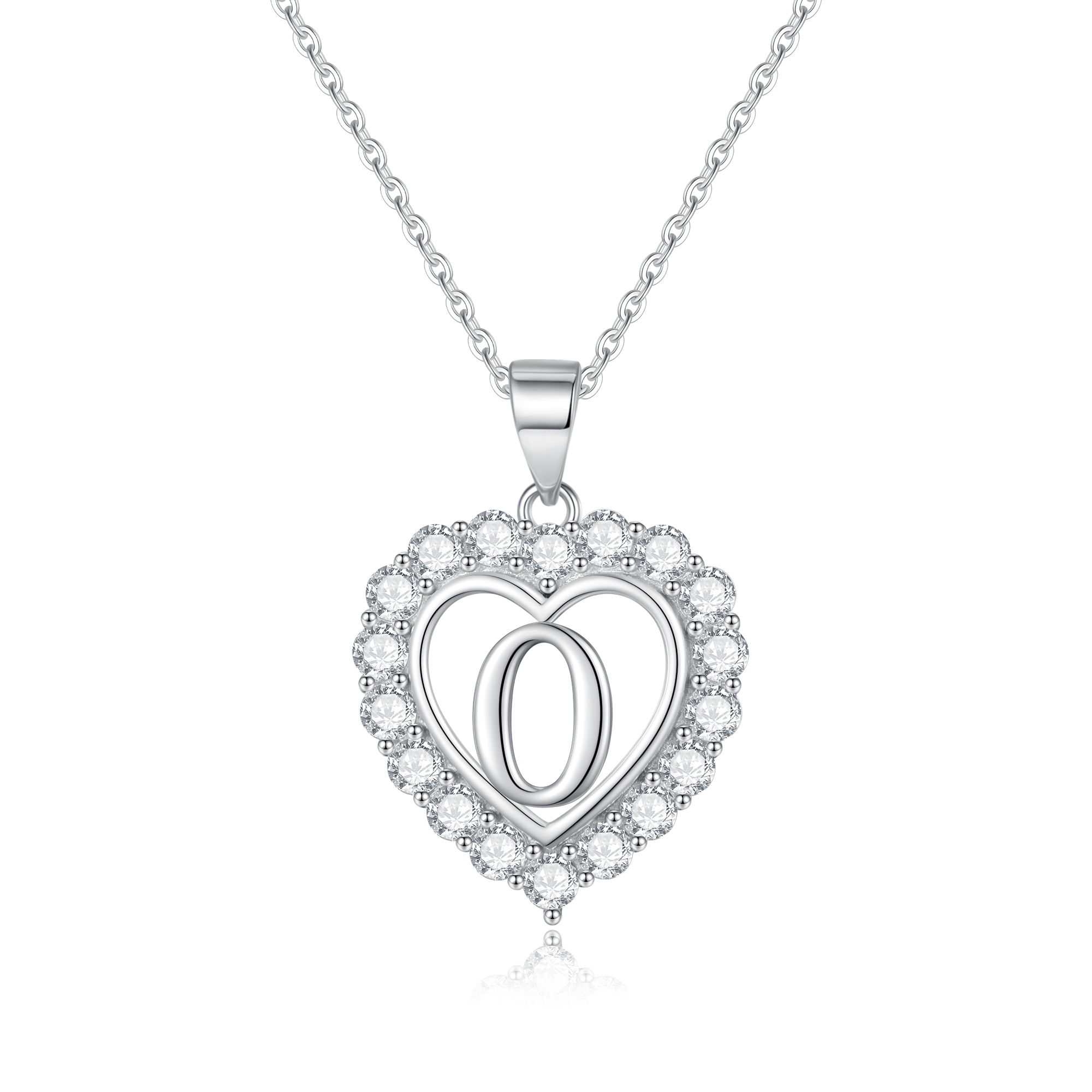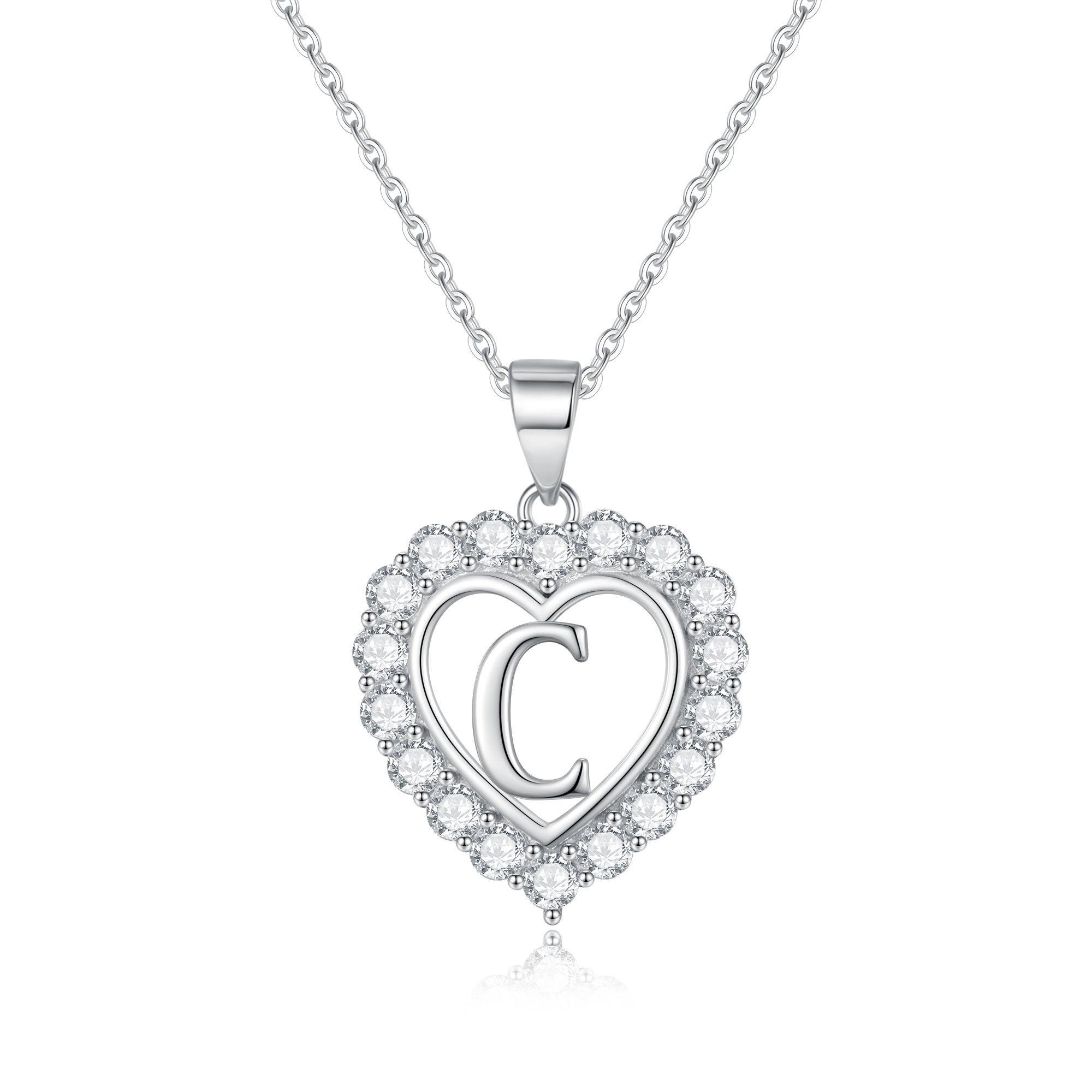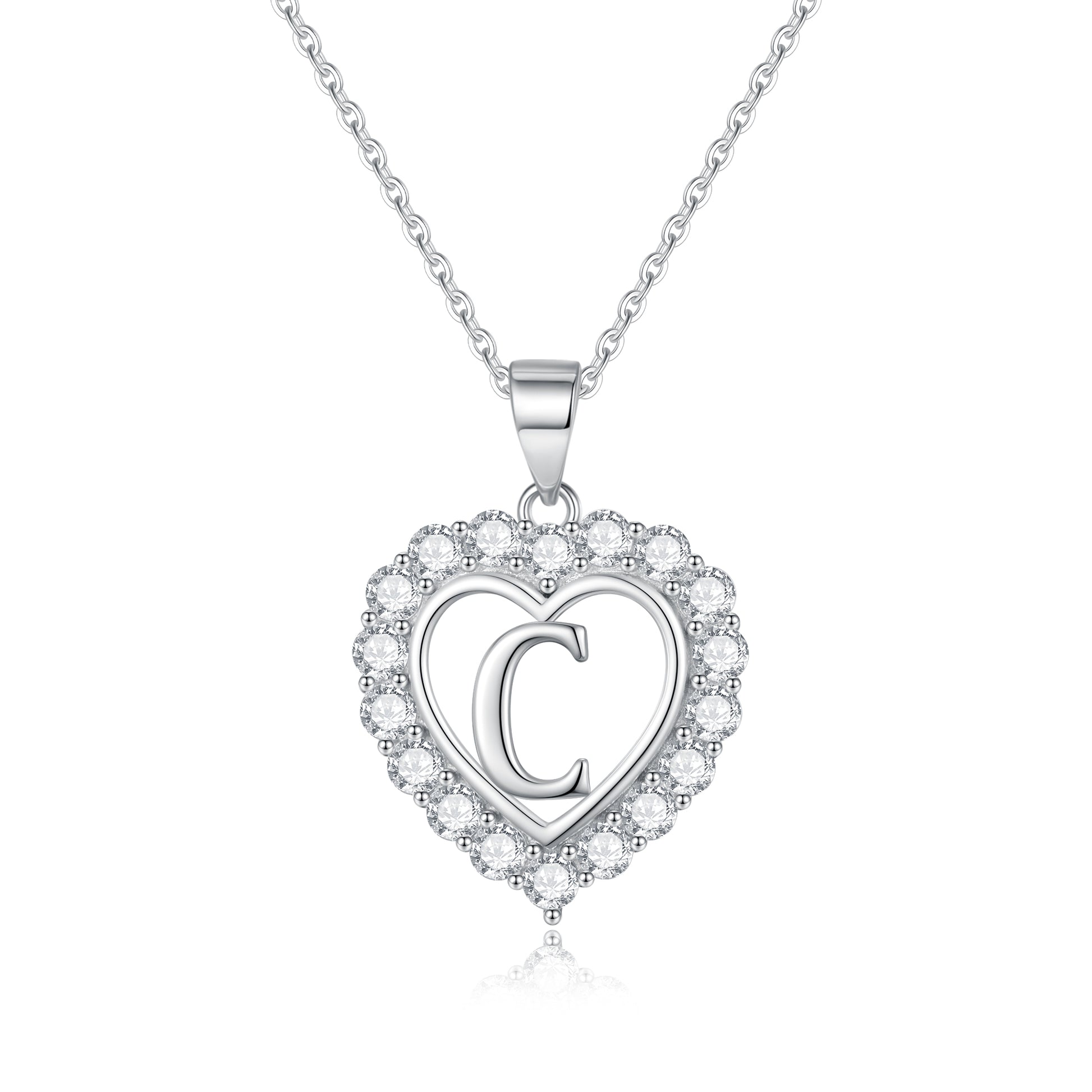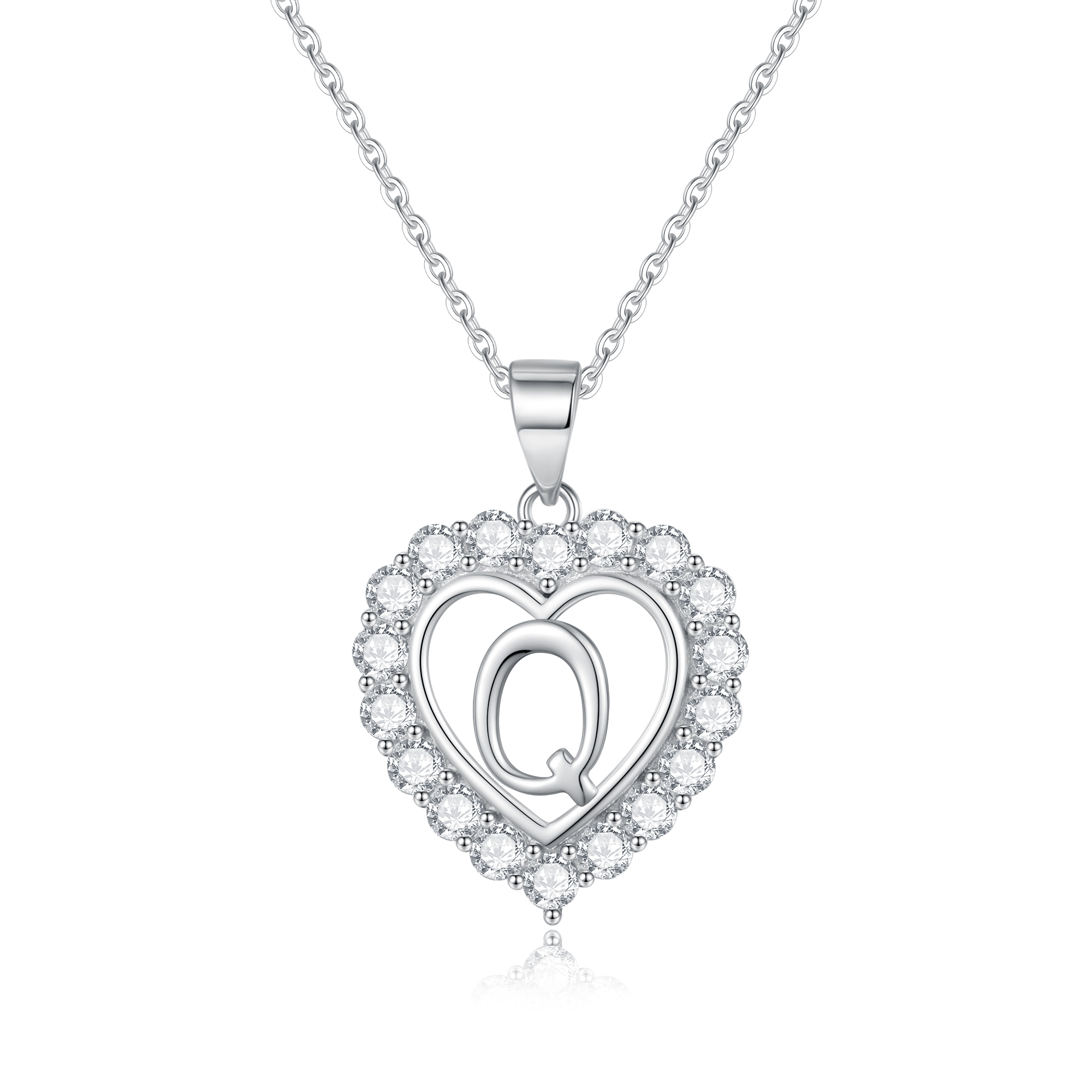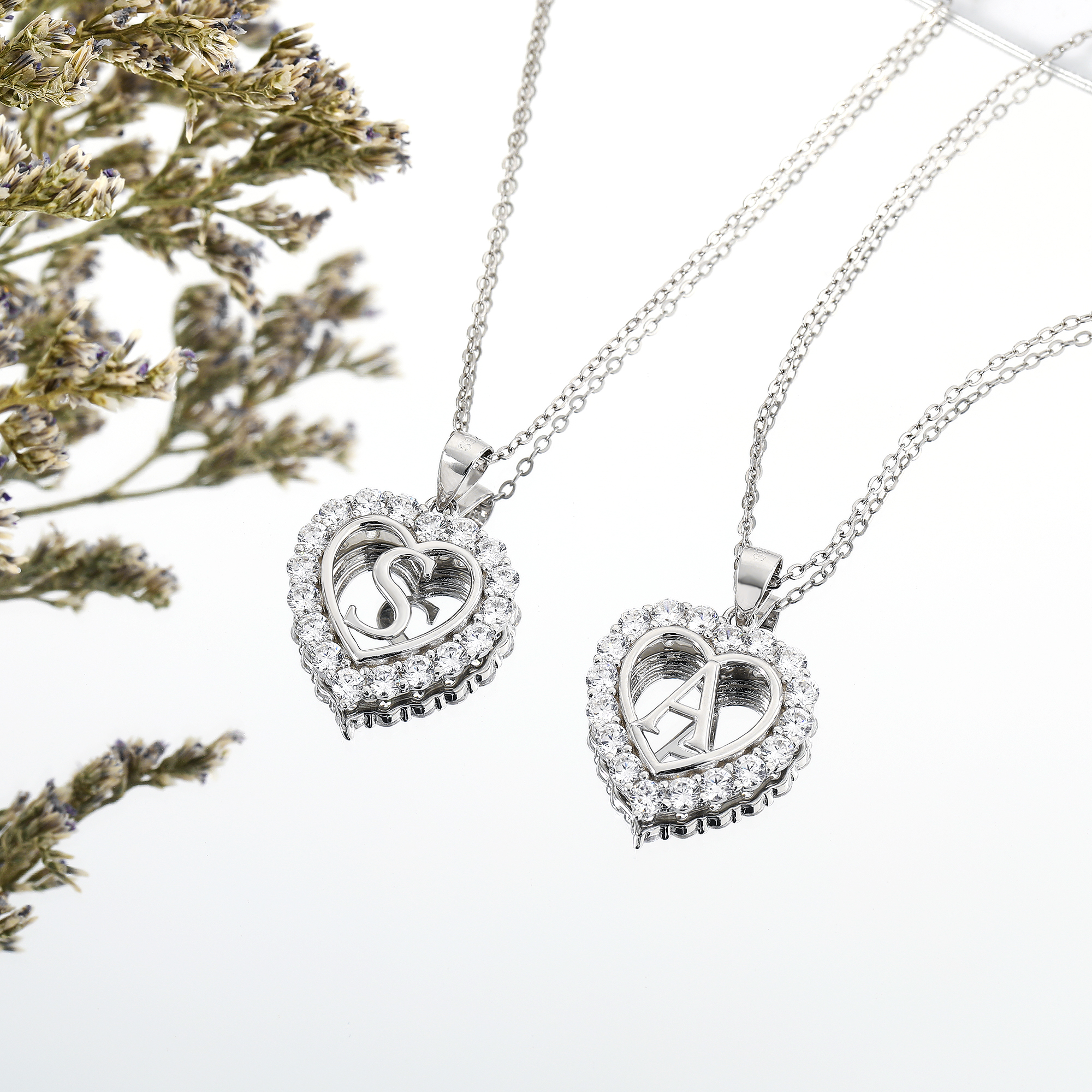 Silvery, heart-shaped zircon initial letter pendant necklace, women's jewelry, a gift for girls;