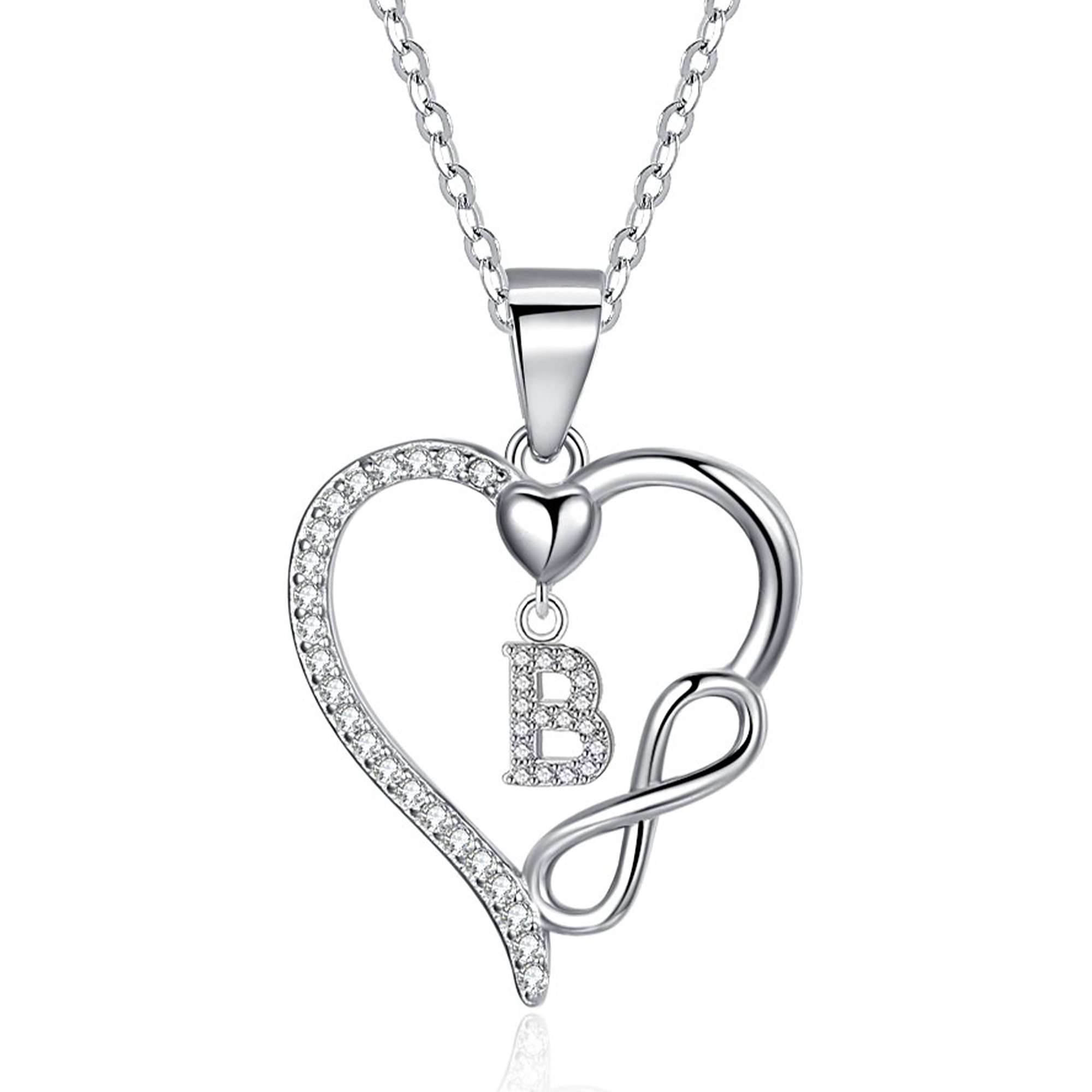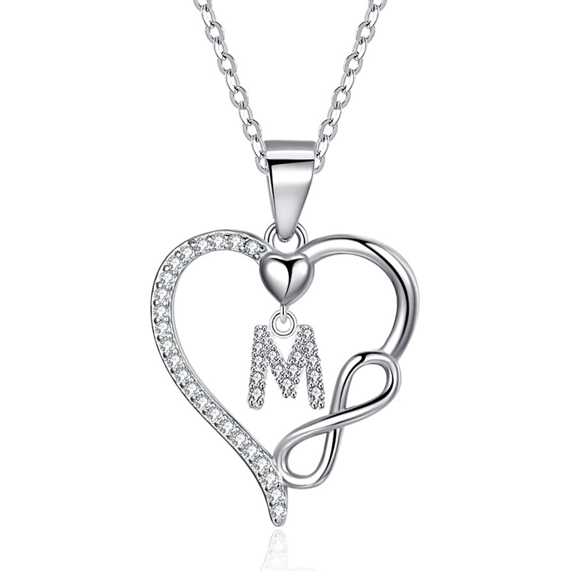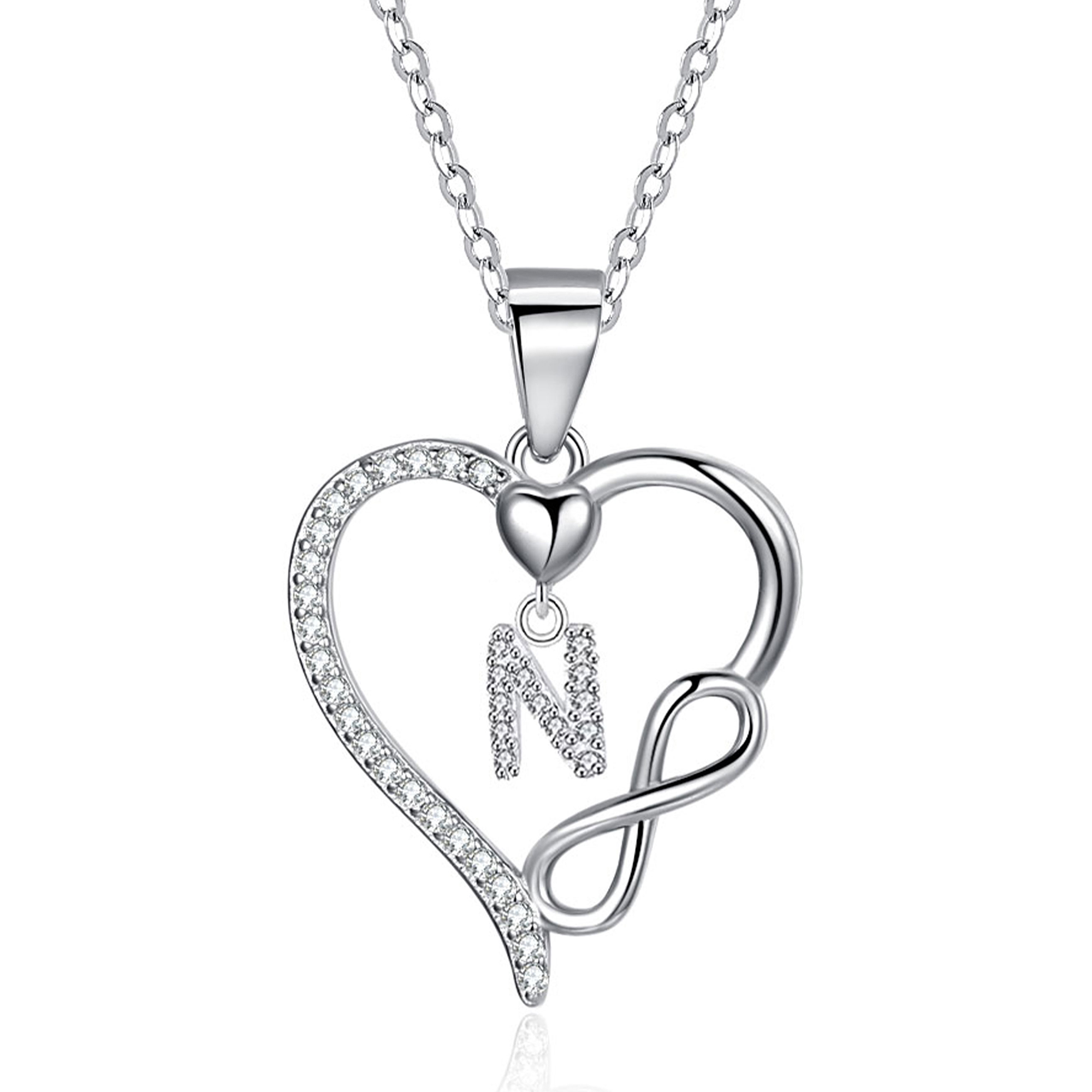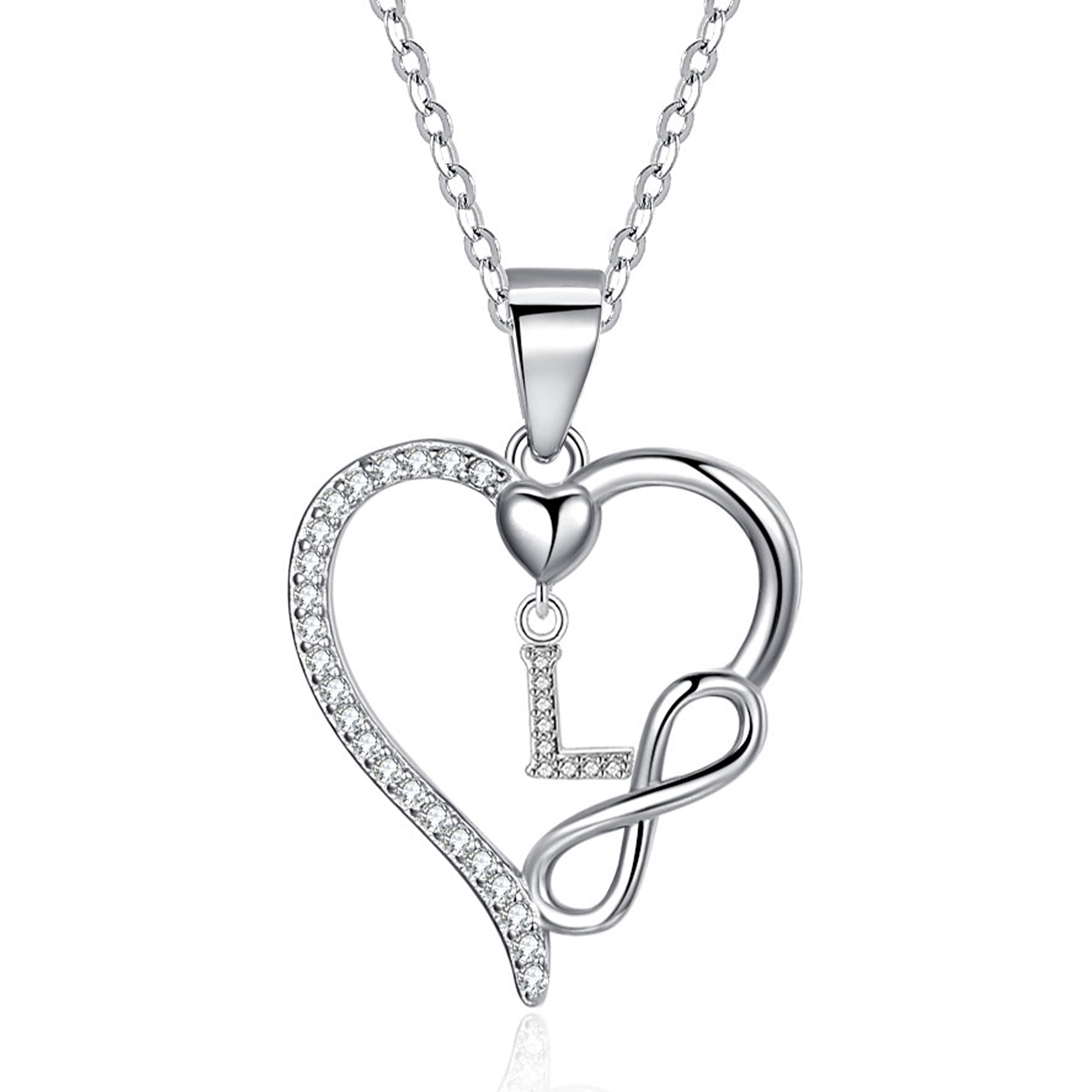 Silvery necklace, heart-shaped pendant with first letter necklace, 925 silver plated zircon pendant necklace, women's jewelry gift, Valentine's Day gift for women's wives and girls