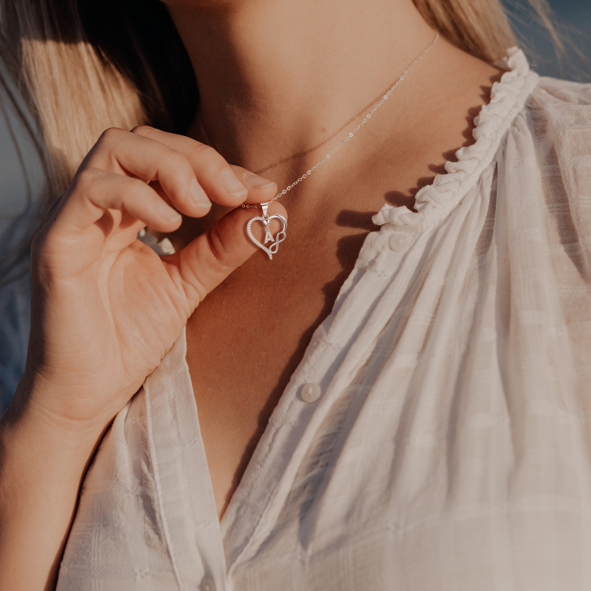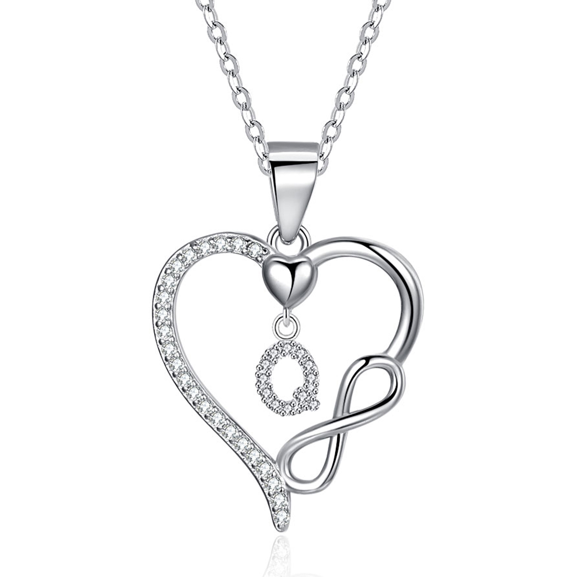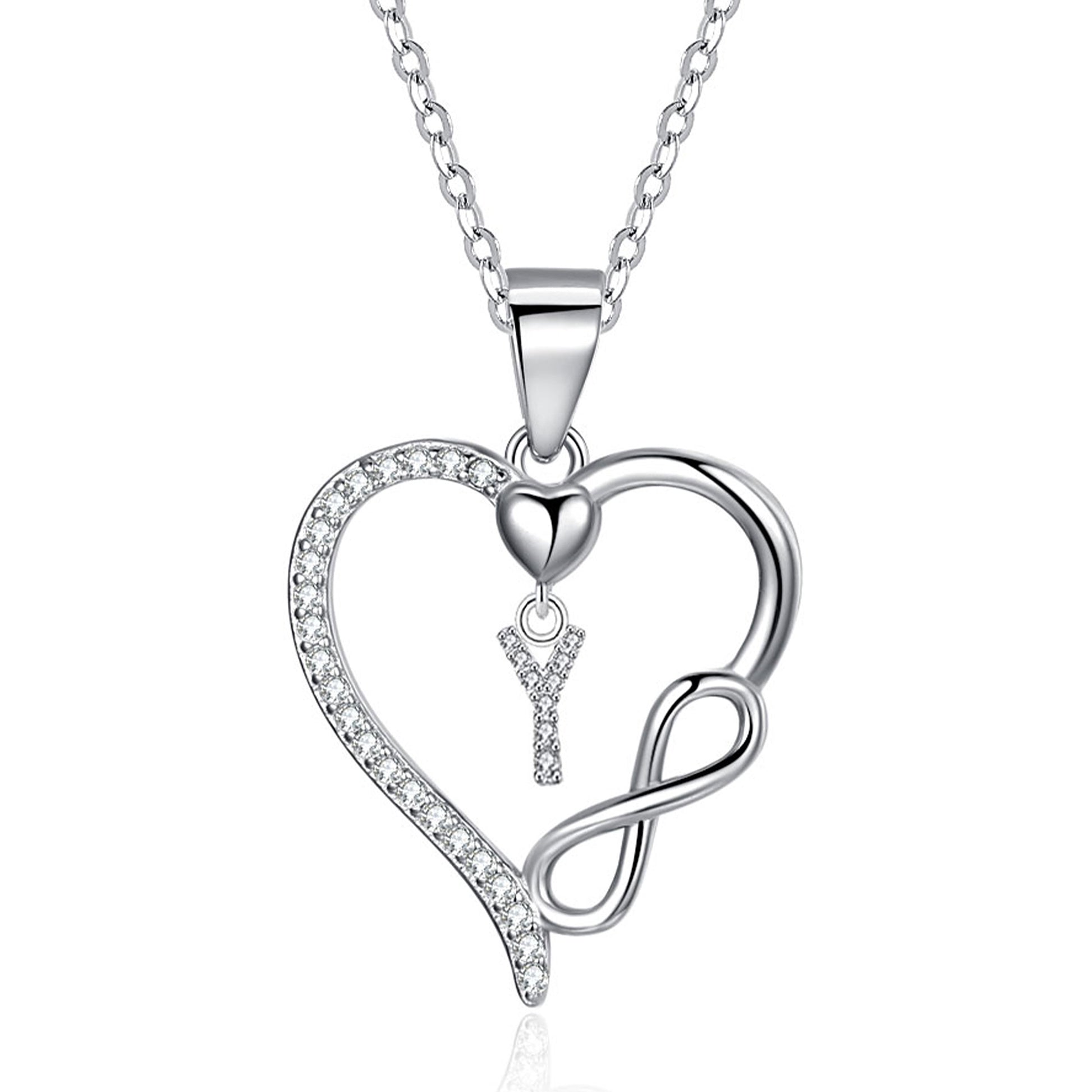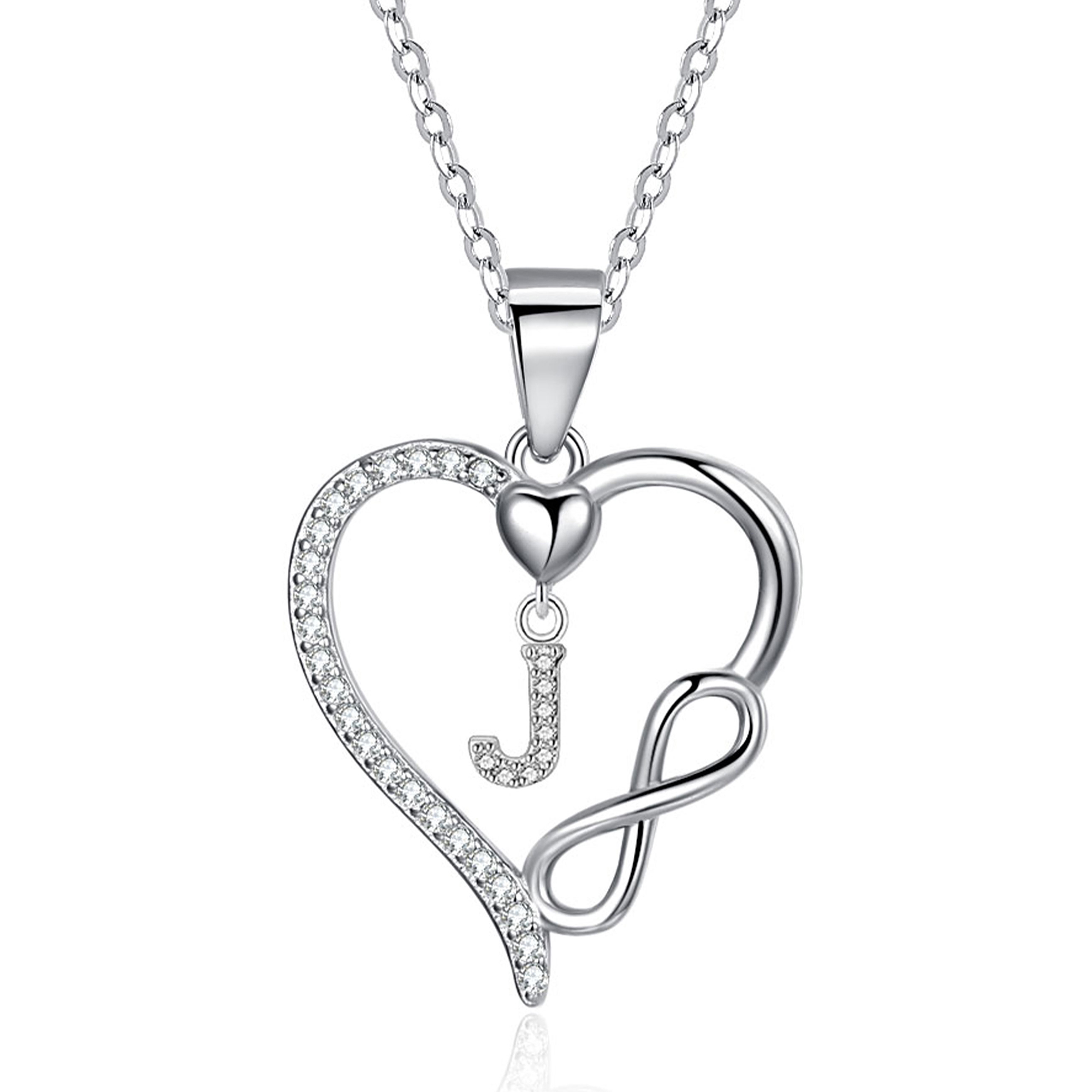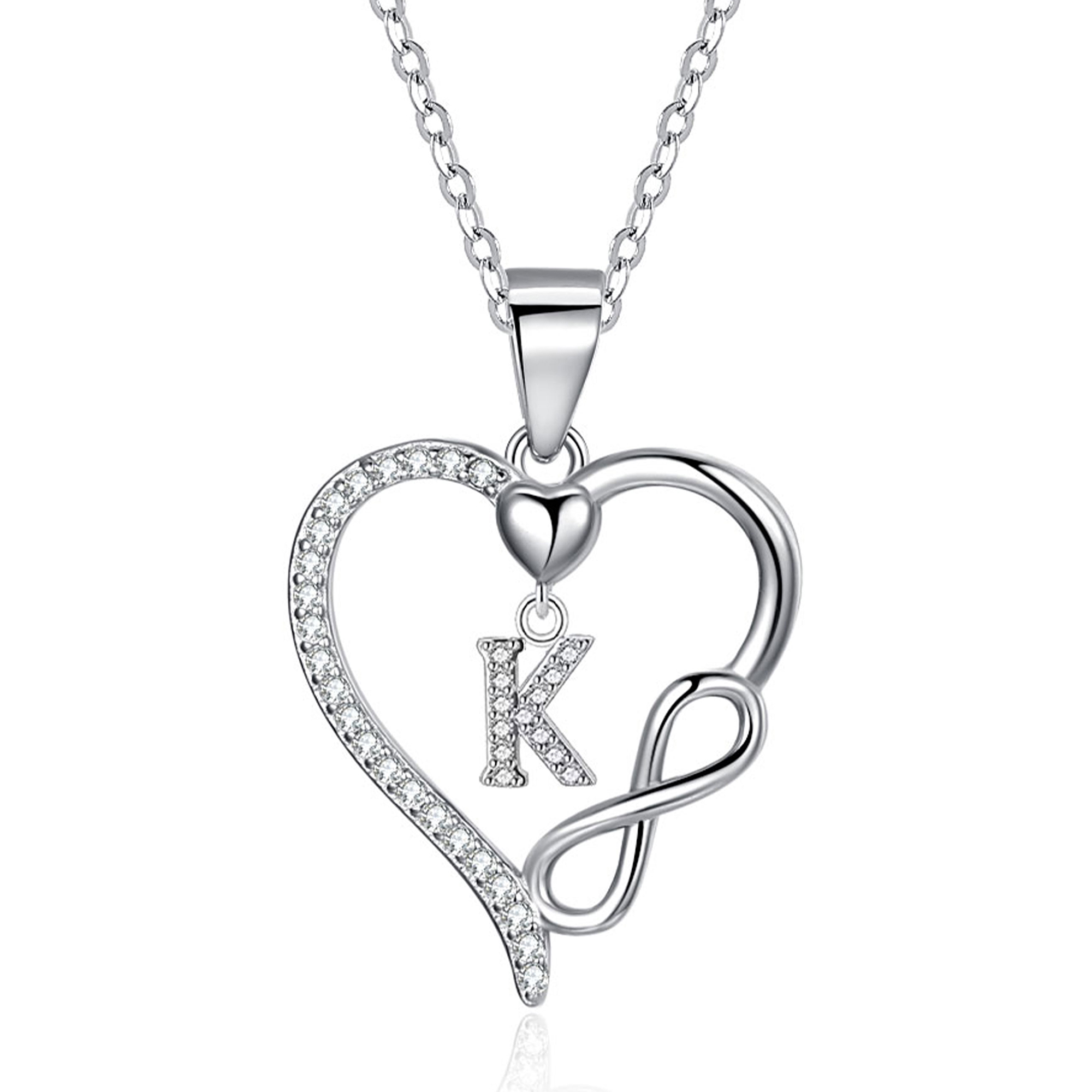 Silvery necklace, heart-shaped pendant with first letter necklace, 925 silver plated zircon pendant necklace, women's jewelry gift, Valentine's Day gift for women's wives and girls