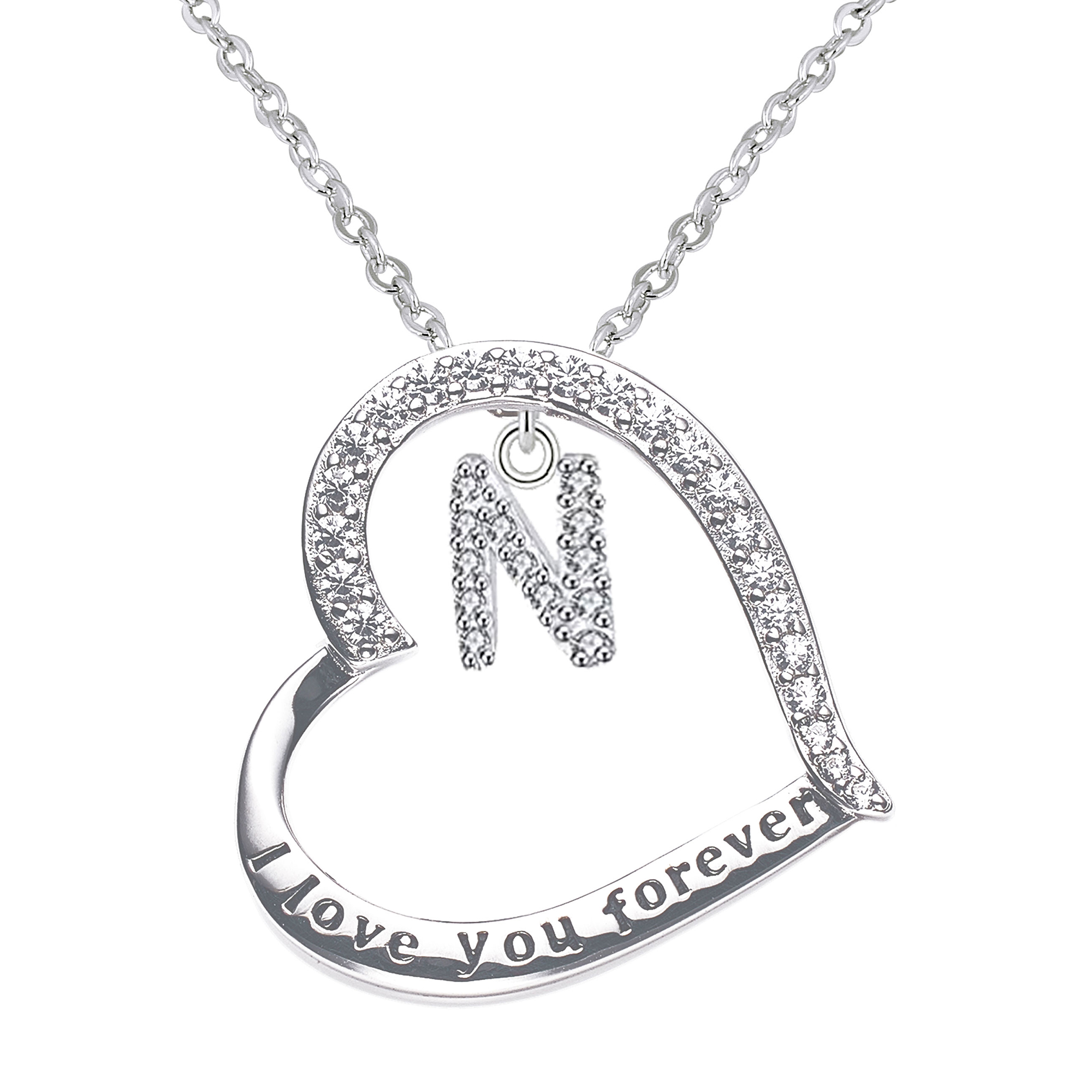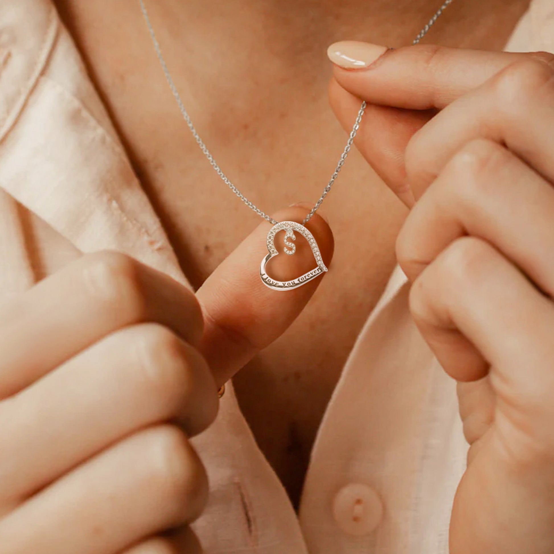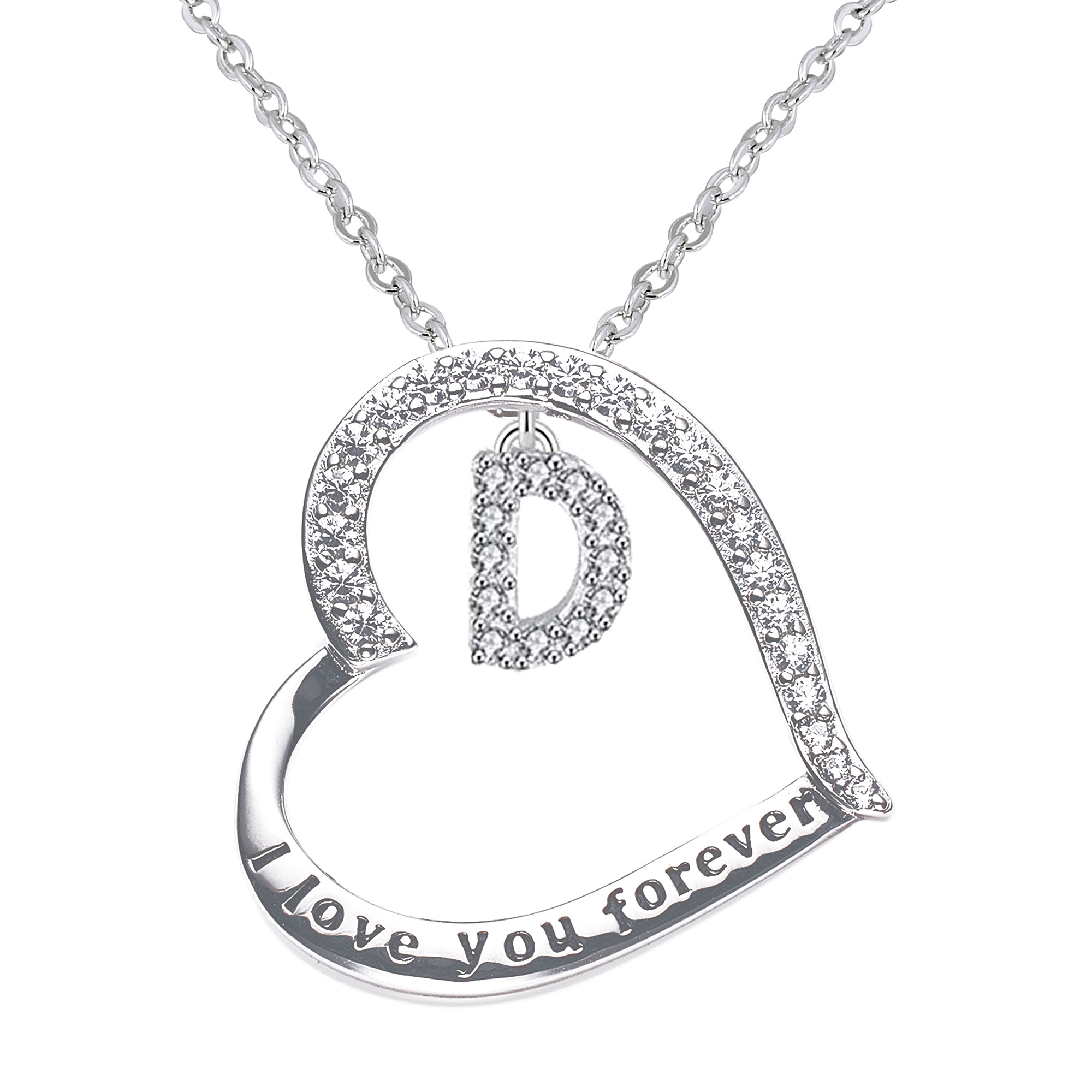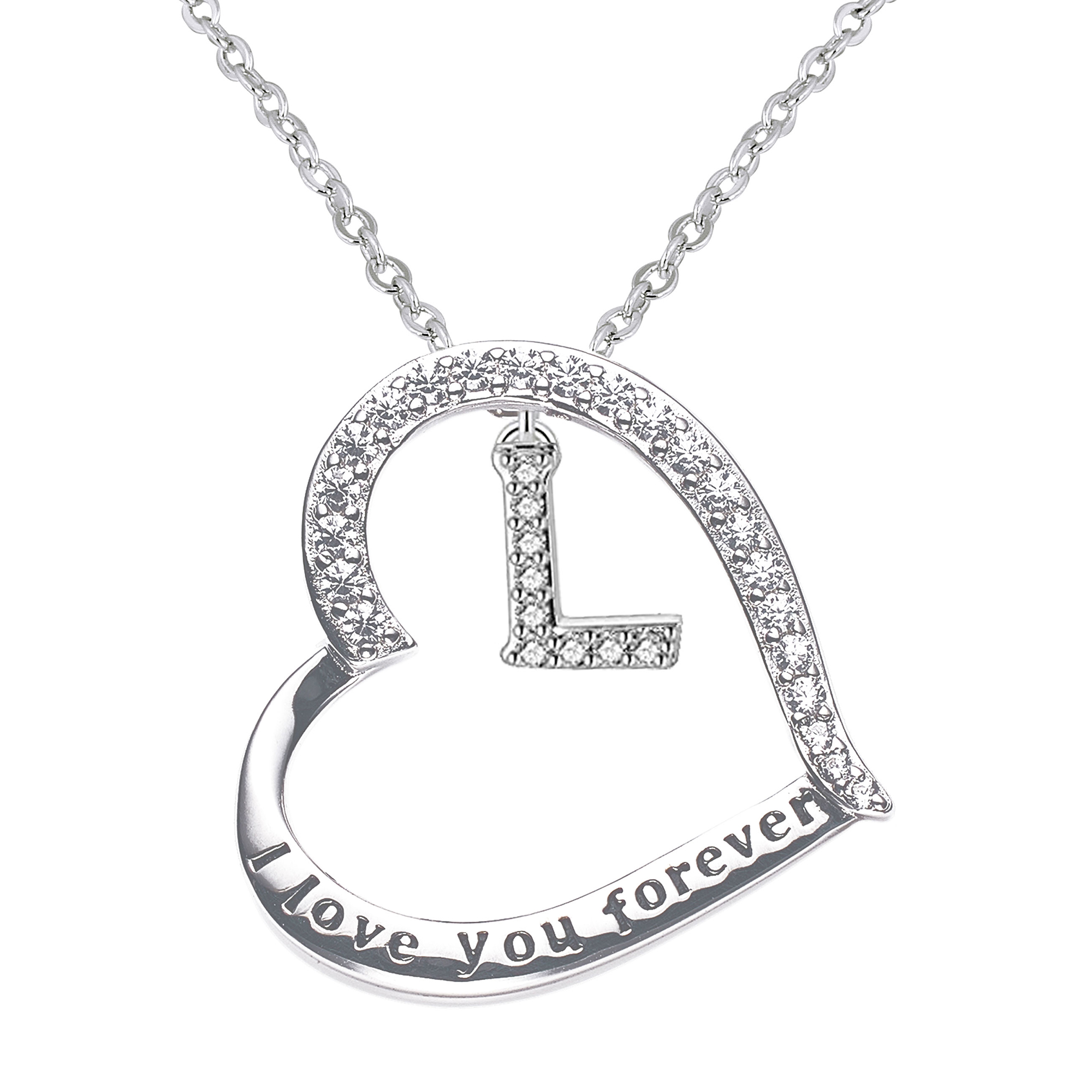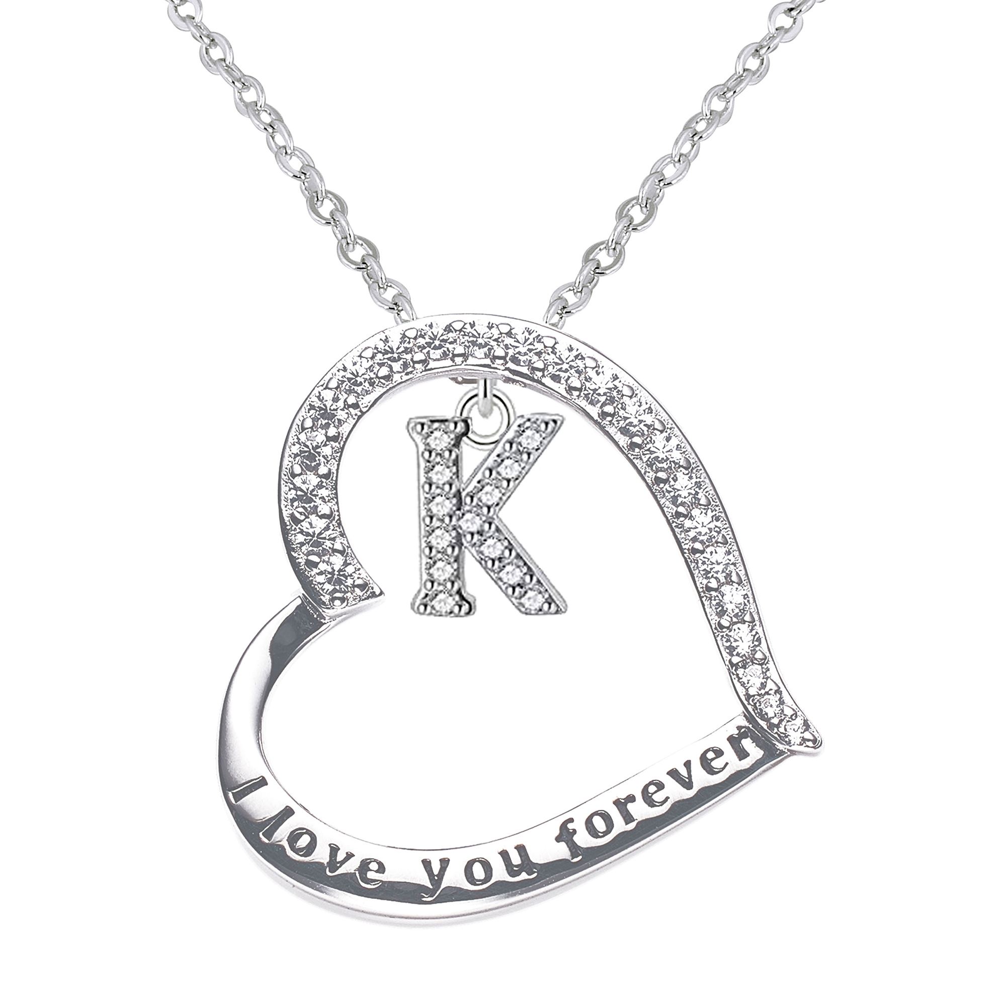 Design concept: Unique heart-shaped design with "I love you forever" engraved on it, suitable for everyone's gift. The heart-shaped first letter necklace can be used as a birthday gift, anniversary, graduation ceremony, etc., to symbolize your or your family's first letter.