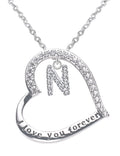 Silvery necklace, heart-shaped pendant with first letter necklace, 925 silver plated zircon pendant necklace, women's jewelry gift, Valentine's Day gift for women's wives and girls