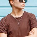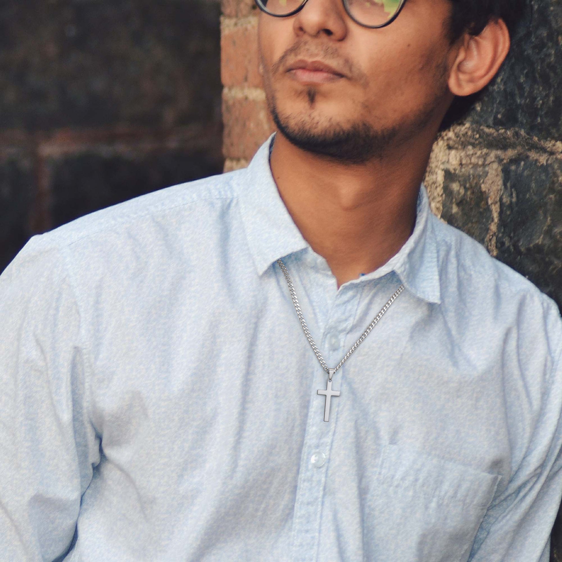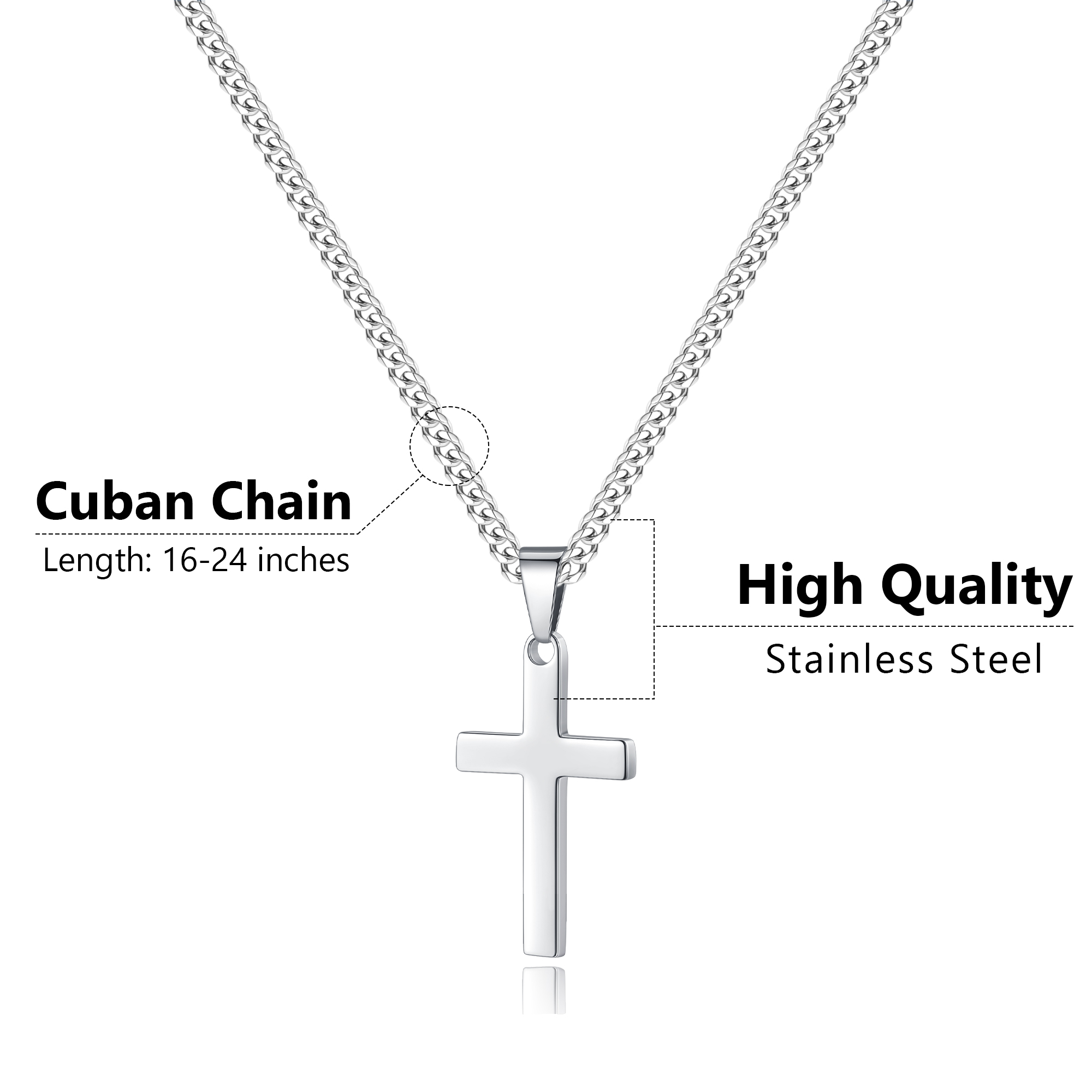 Silvery, stainless steel men's Cuban chain cross necklace, 2.5mm, cross pendant necklace, 16-24 inches
