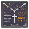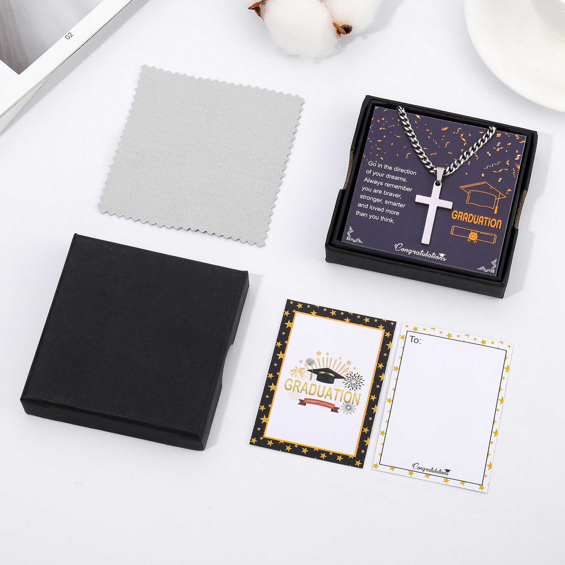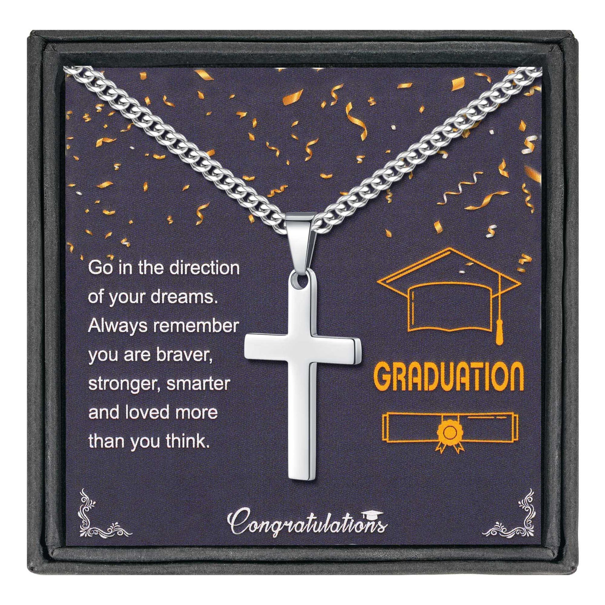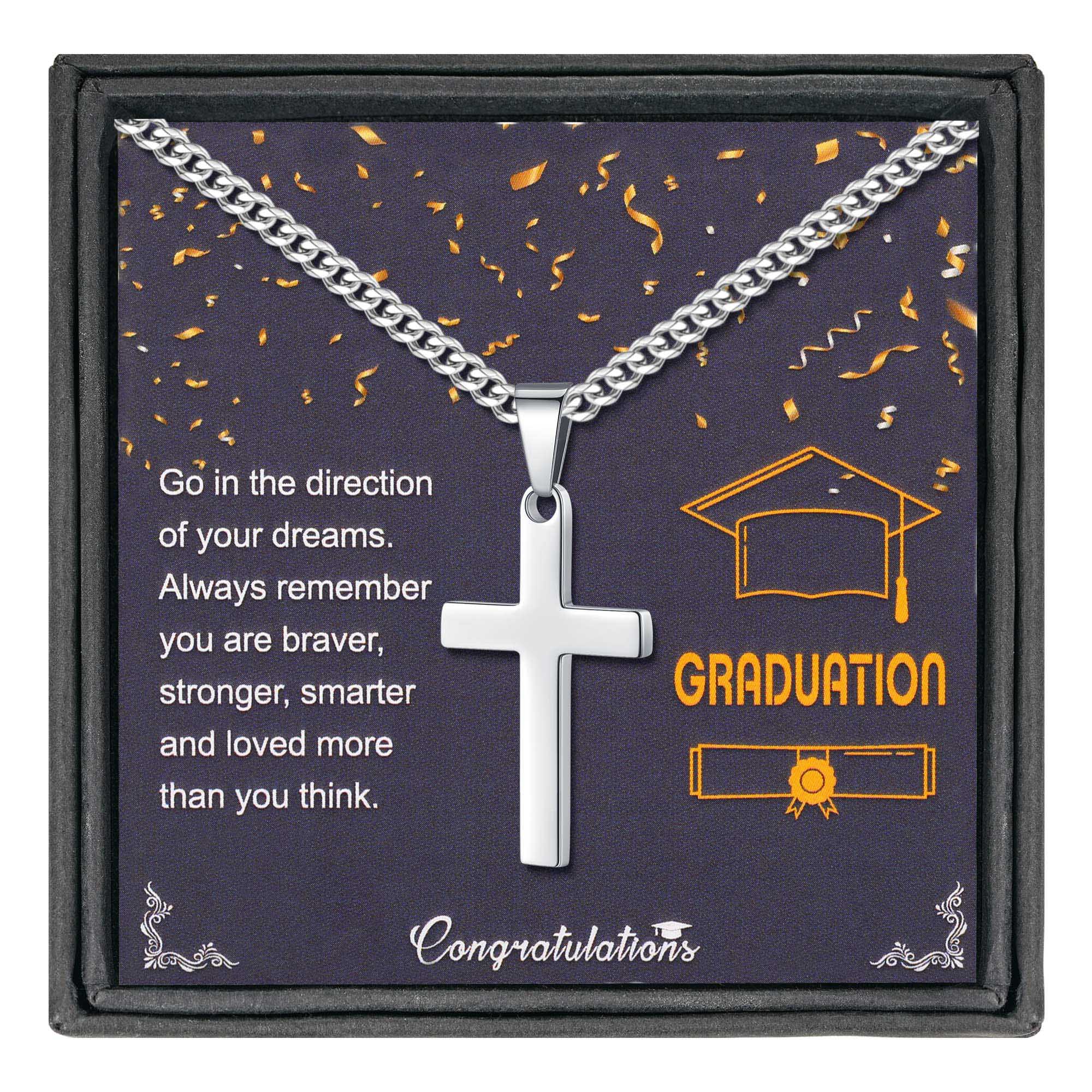 The perfect graduation gift: a graduation cross necklace paired with an exquisite gift box, the perfect graduation gift, a college graduation gift, a high school graduation gift, a gift for him, his son, brother, grandson, and friends on graduation occasions.